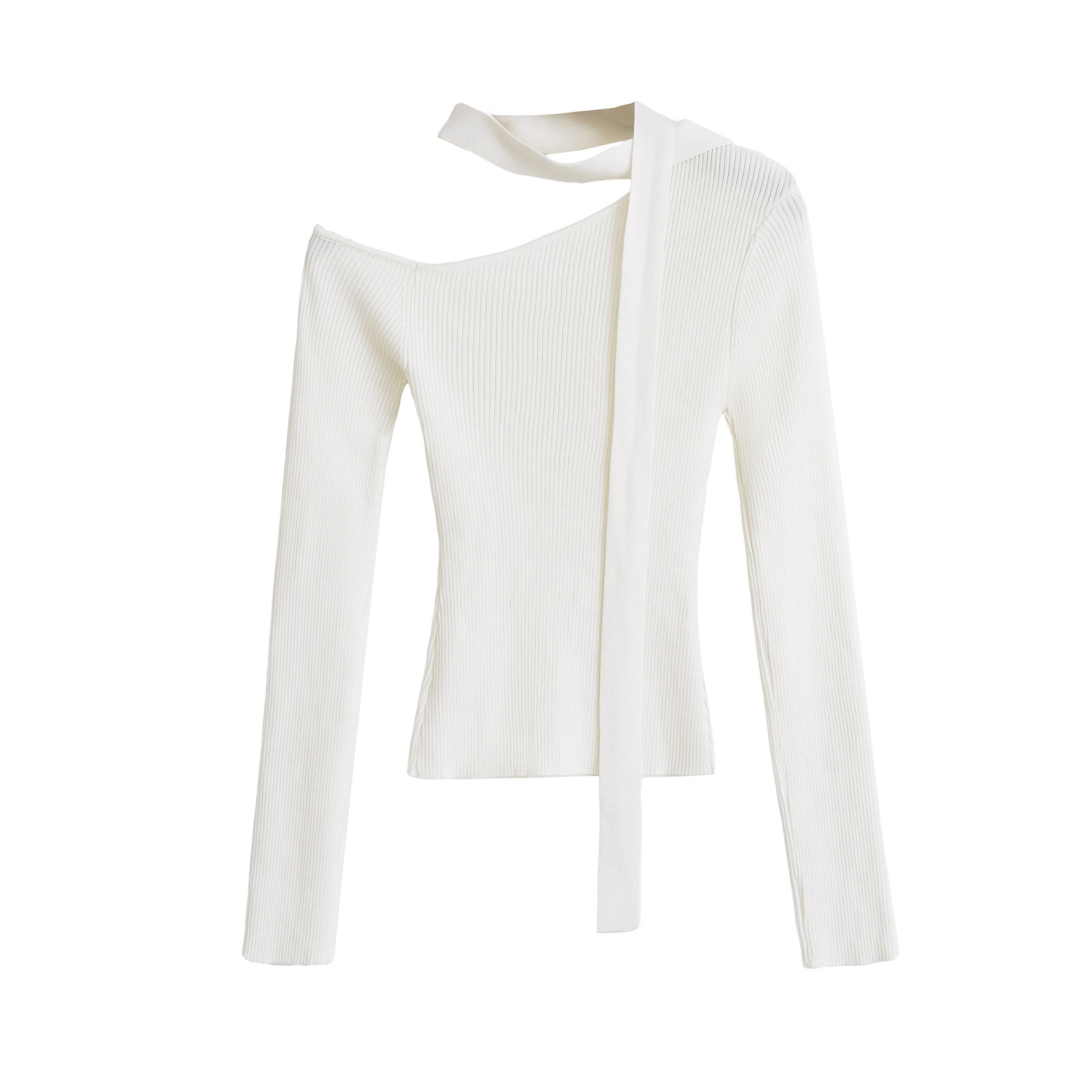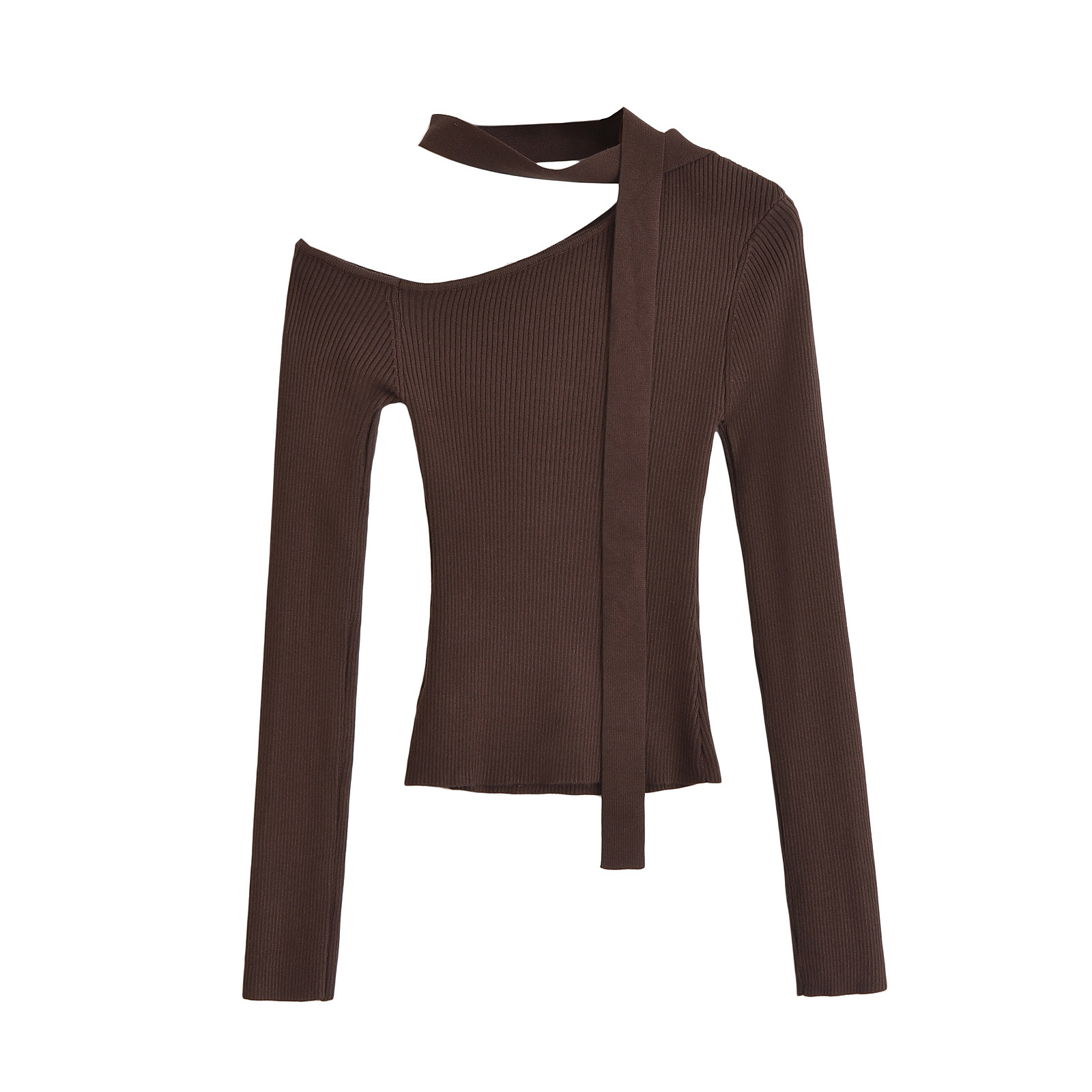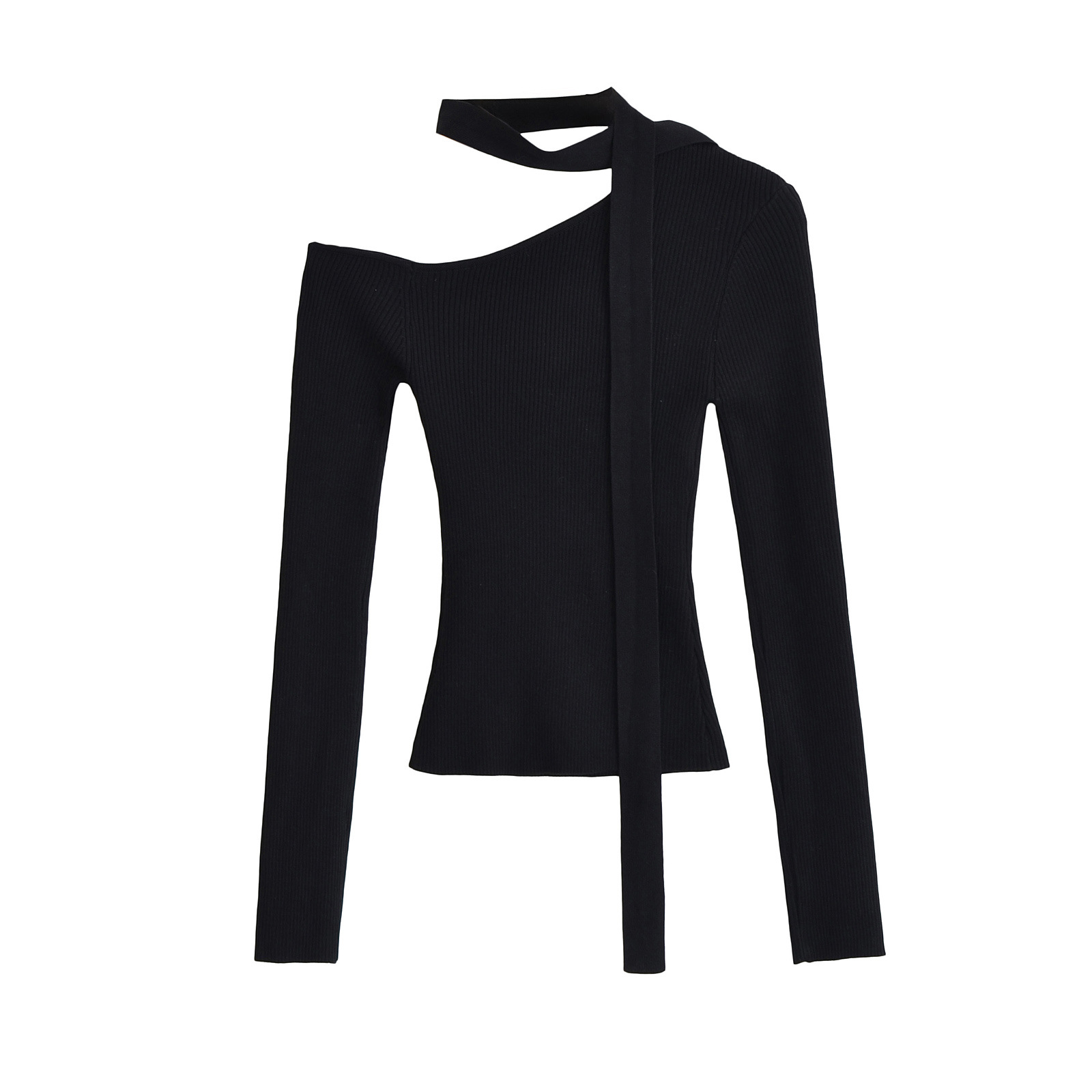 015-유럽과 미국 스타일 2024 가을 새로운 스파이스 소녀 섹시한 어깨 스웨터 탑 슬림 핏 긴 소매 니트 셔츠 여성스토어 가기