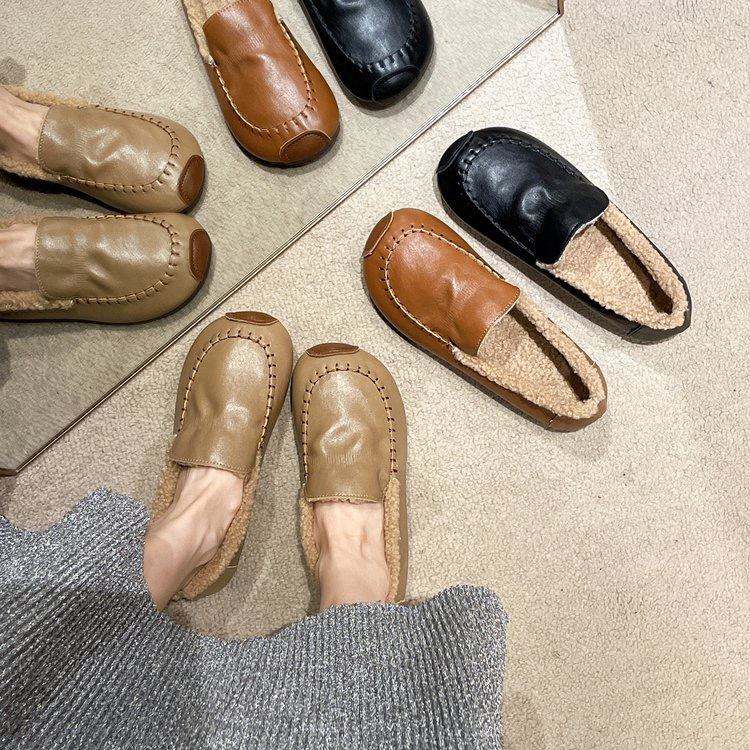 넓은 뚱뚱한 발 슬립 온 기모 두꺼운 스노우 부츠 여성의 방수 가죽 두꺼운 비 슬립 따뜻한 완두콩 코튼 신발 임산부스토어 가기