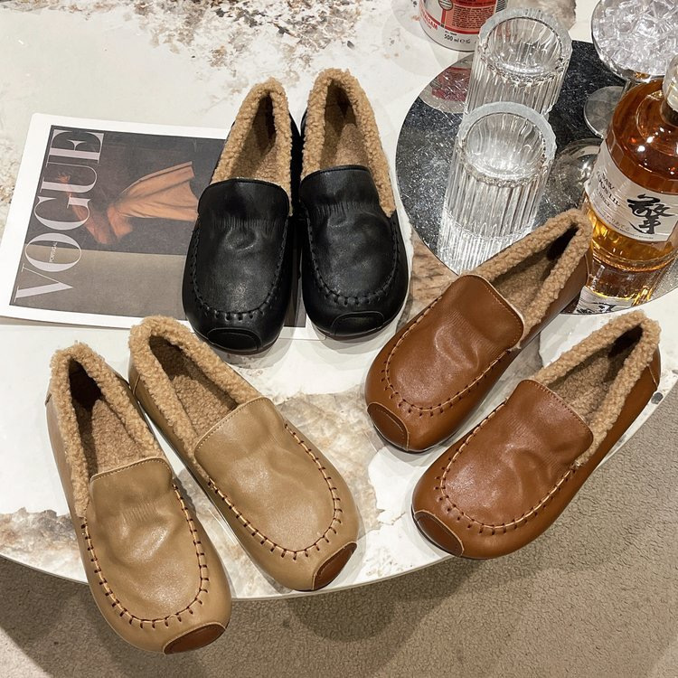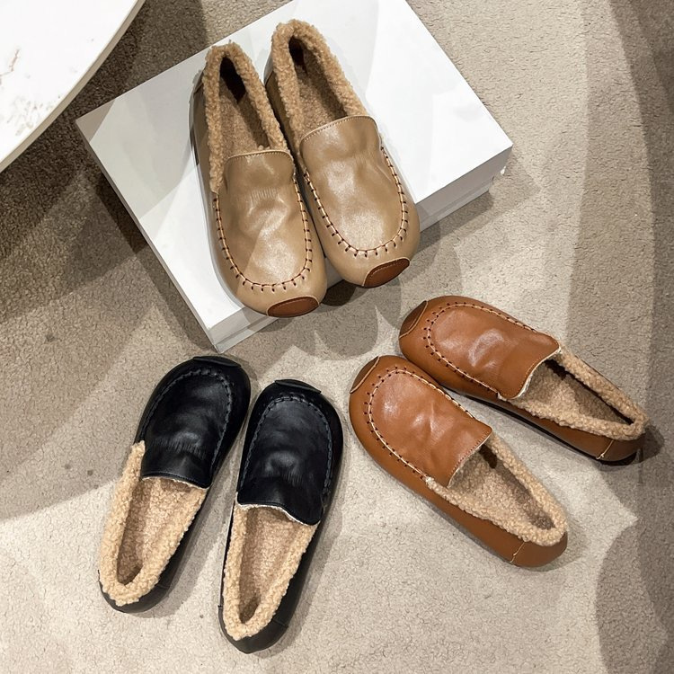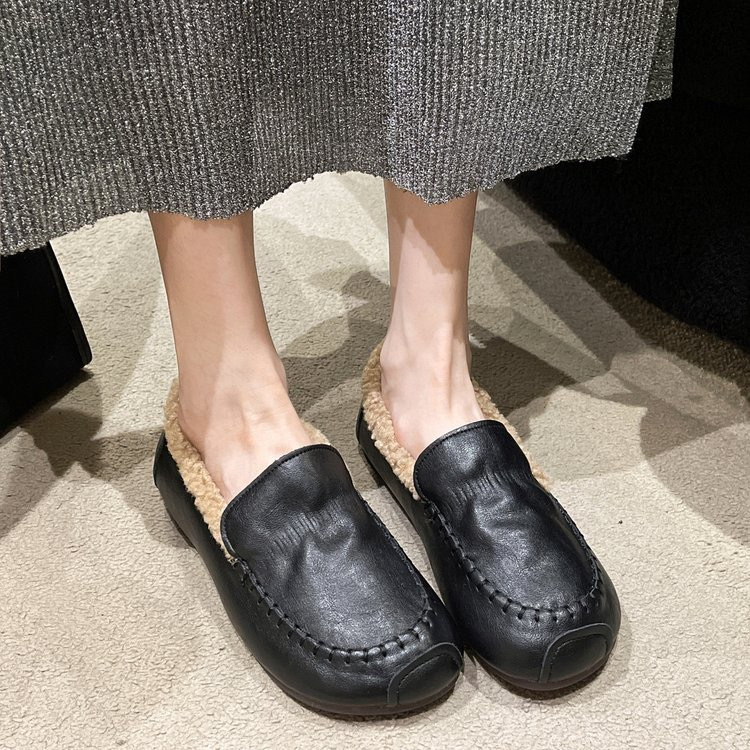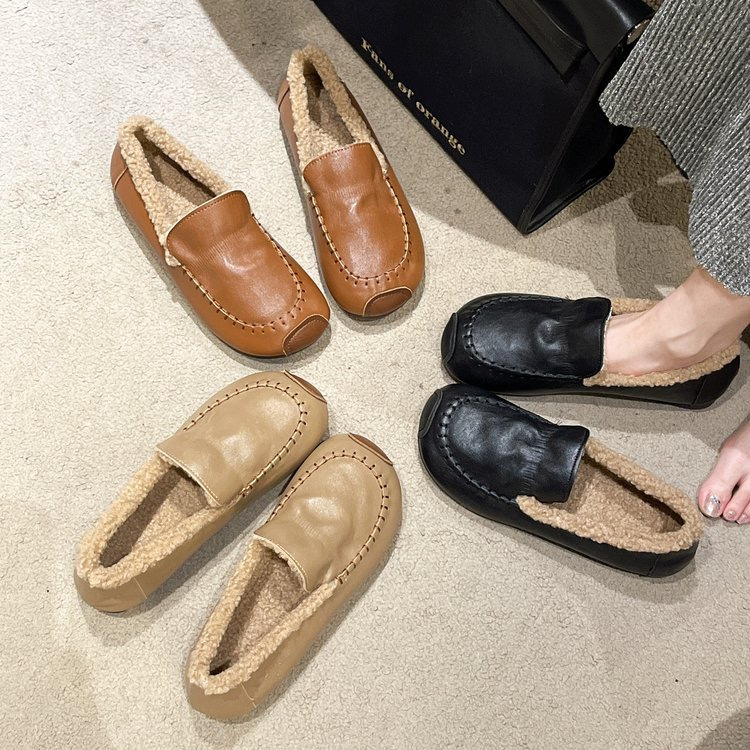 넓은 뚱뚱한 발 슬립 온 기모 두꺼운 스노우 부츠 여성의 방수 가죽 두꺼운 비 슬립 따뜻한 완두콩 코튼 신발 임산부