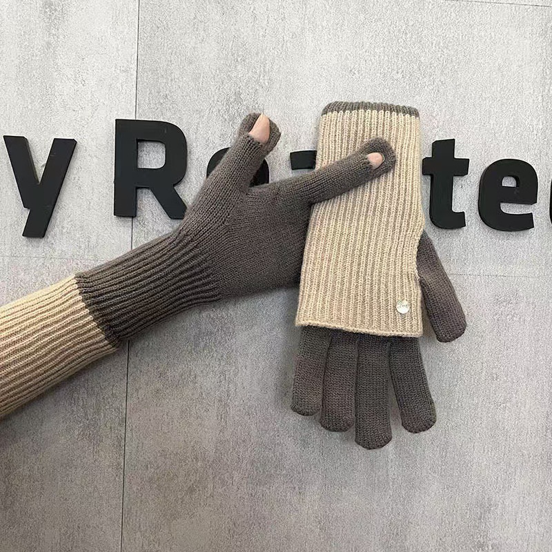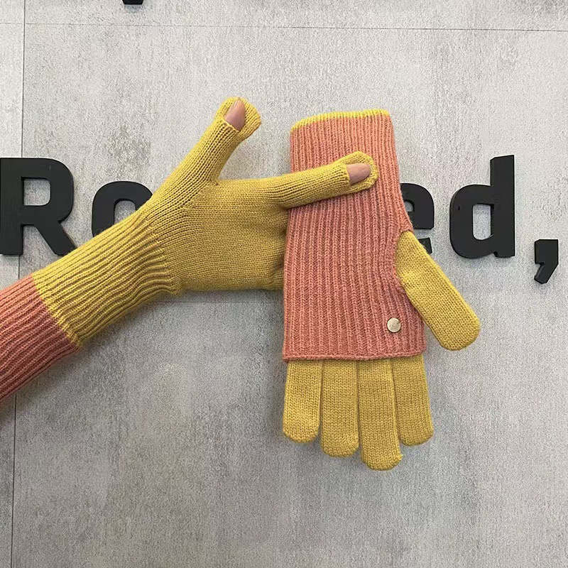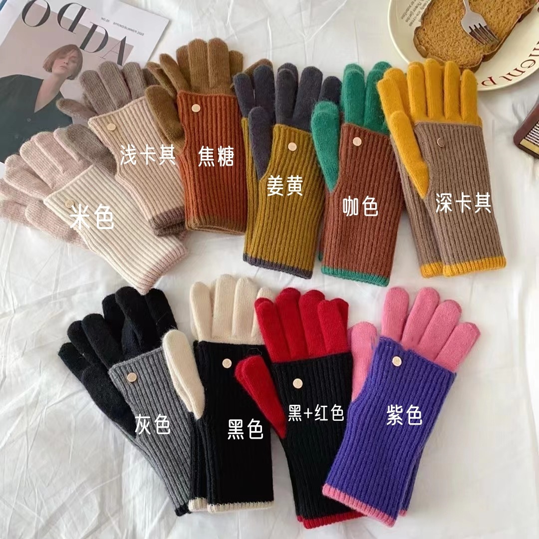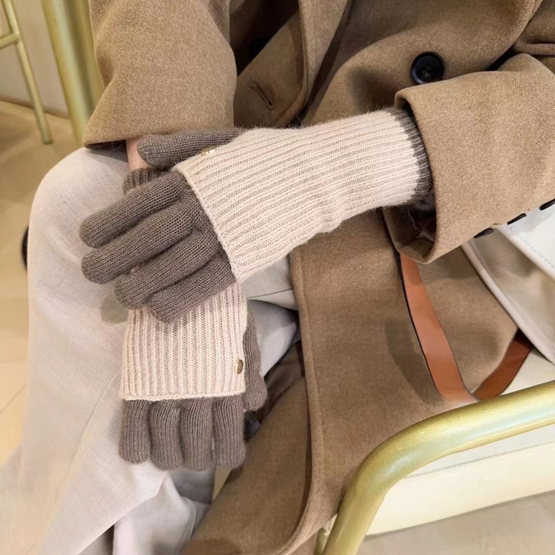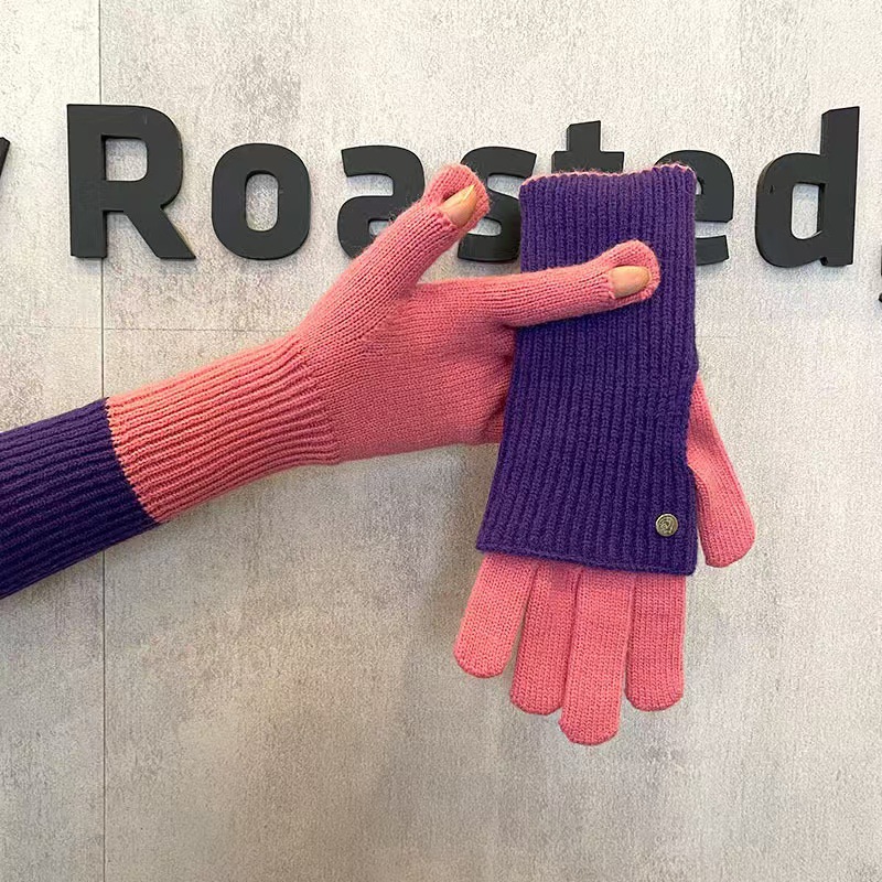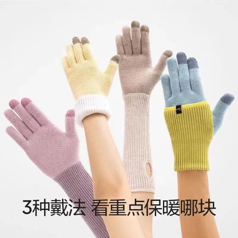 2024 새로운 겨울 니트 장갑 따뜻한 터치 스크린 길이 이중 목적 한국 승마 컬러 매칭 학생 커플스토어 가기
