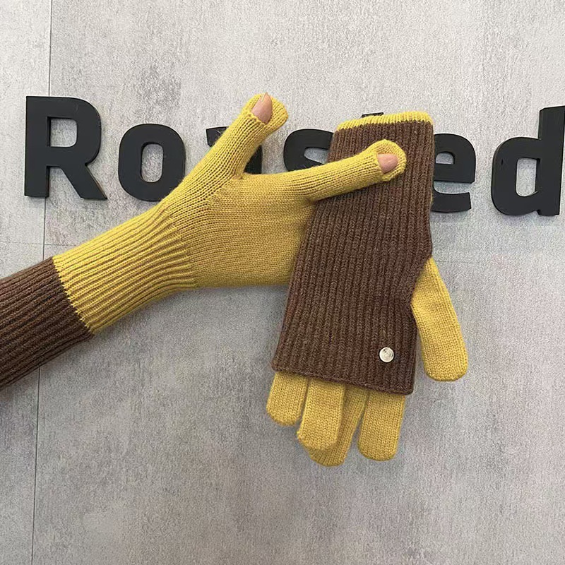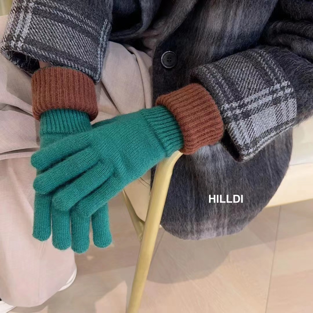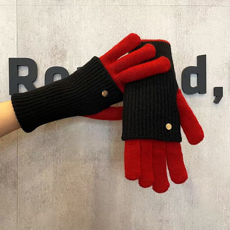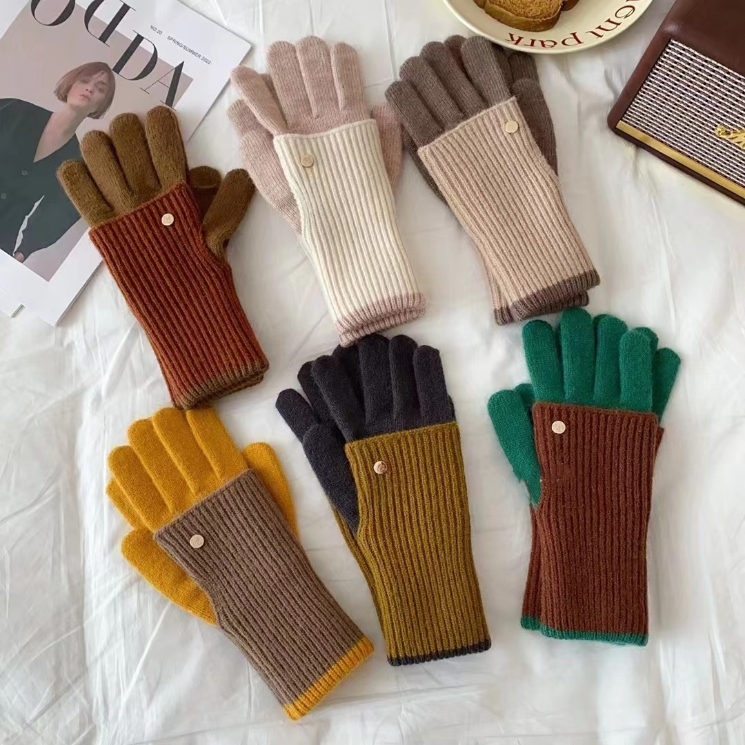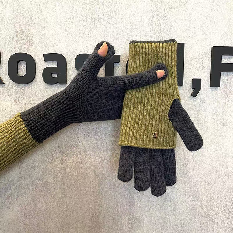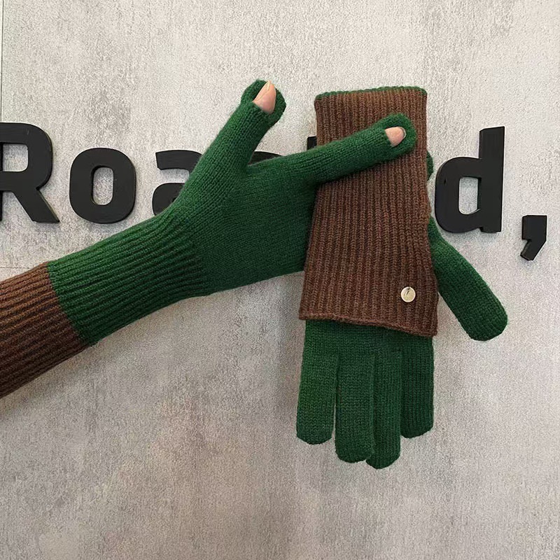 2024 새로운 겨울 니트 장갑 따뜻한 터치 스크린 길이 이중 목적 한국 승마 컬러 매칭 학생 커플스토어 가기