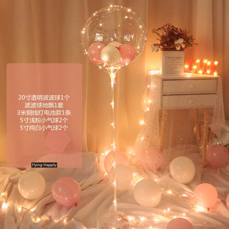 • 분홍색과 흰색 작은 풍선 - 땅에 떠 있는 웨이브 볼(조명 + 배터리 포함) - 4세트