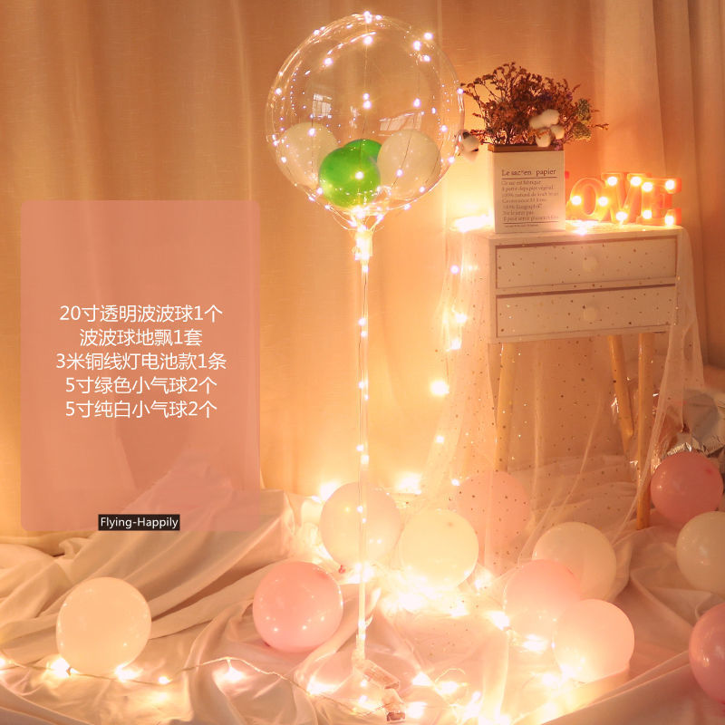 • 녹색과 흰색의 작은 풍선 - 땅에 떠 있는 웨이브 볼(조명 + 배터리 포함) - 20세트