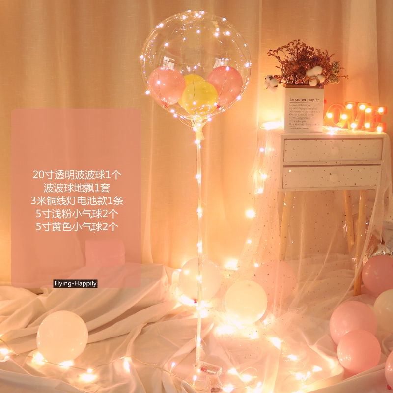 • 노란색과 분홍색 작은 풍선 - 땅에 떠 있는 웨이브 볼(조명 + 배터리 포함) - 20세트