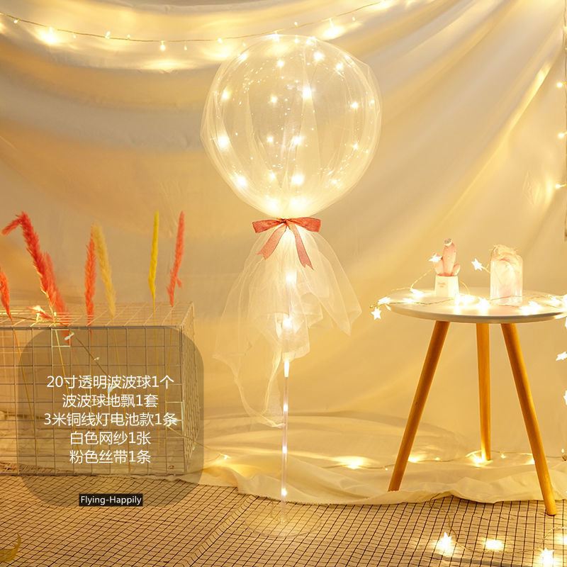• 분홍색과 흰색의 작은 풍선 - 땅에 떠 있는 웨이브 볼(조명 + 배터리 포함) - 20세트