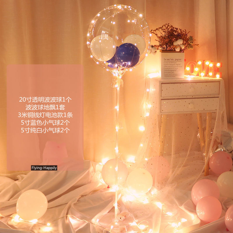 • 파란색과 흰색 작은 풍선 - 땅에 떠 있는 웨이브 볼(조명 + 배터리 보내기) - 10세트