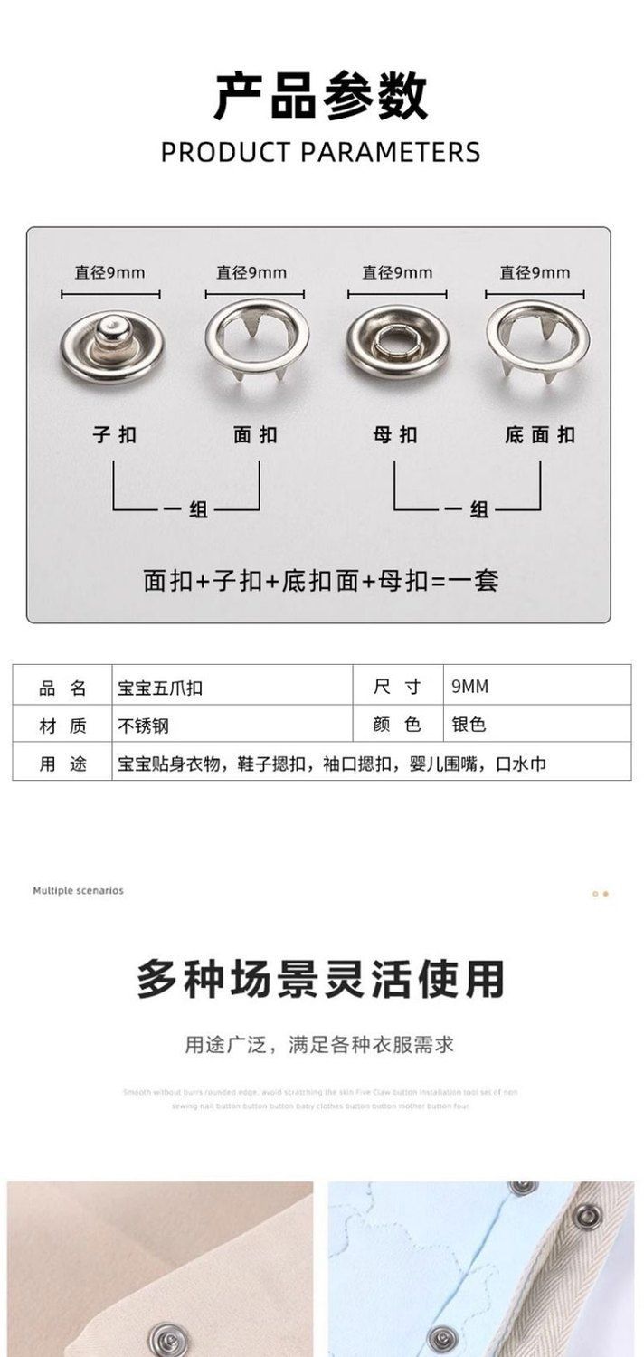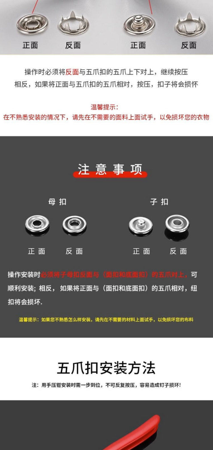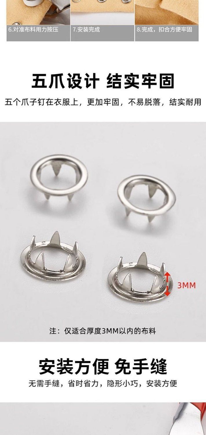 다섯 발톱 버클 설치 세트 버튼 솔기없는 네일 버클 핸드 프레스 펜치 스냅 버튼 도구 여성 버클 새로운 다기능 녹 바늘