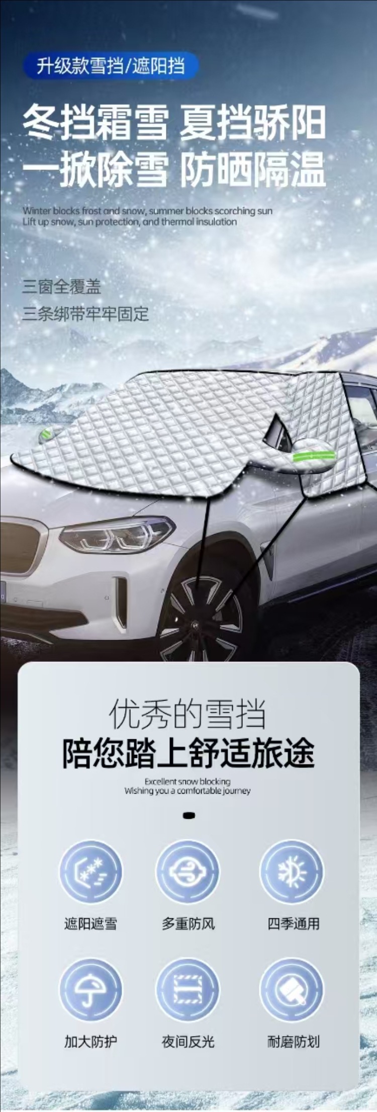 자동차 스노우 커버 3 창 자동차 커버 자외선 차단제 방비 단열 앞 유리 겨울 눈 커버 부동액 하프 커버