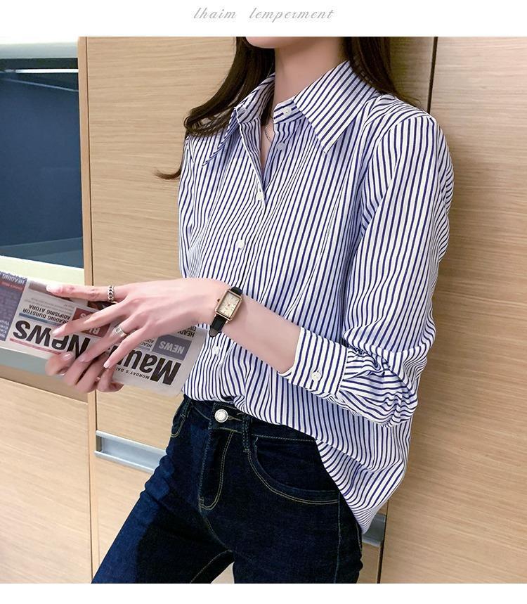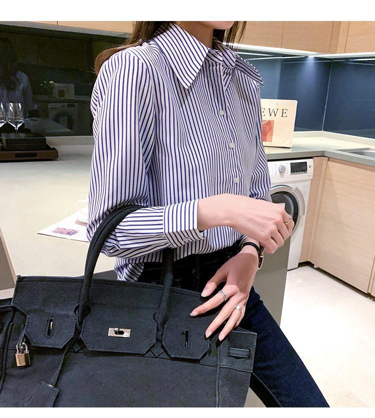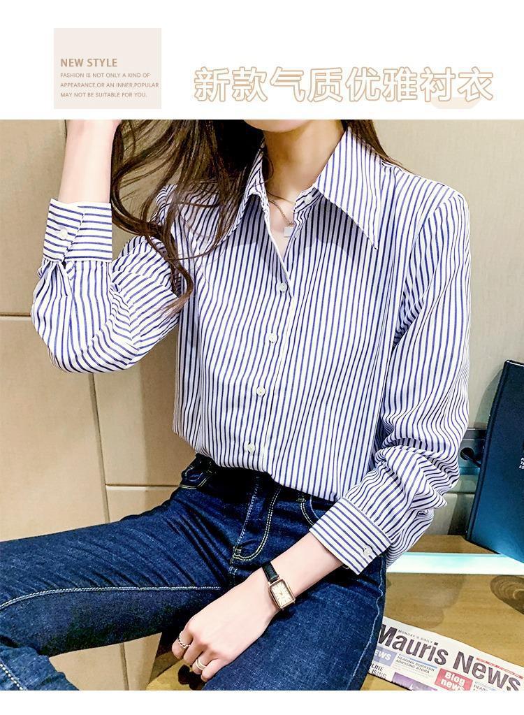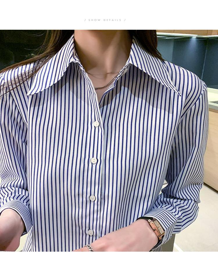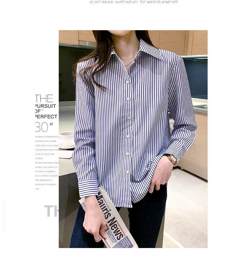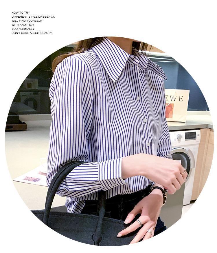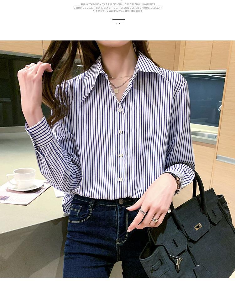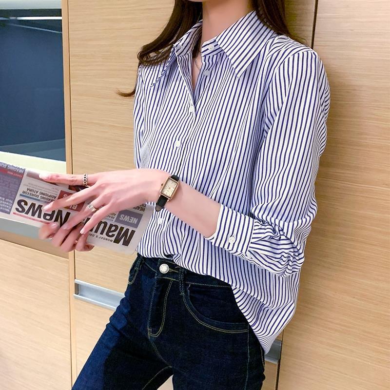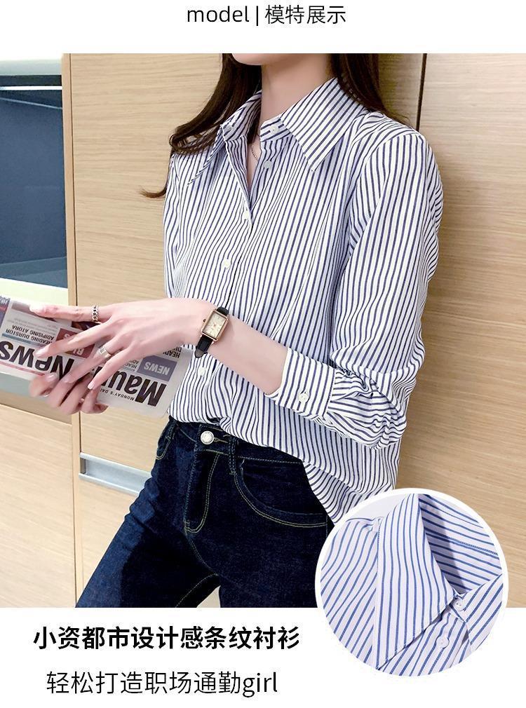 줄무늬 셔츠 여성 디자인 센스 틈새 2024 봄과 가을 새로운 느슨한 비즈니스 셔츠 올 매치 긴 소매 탑스토어 가기