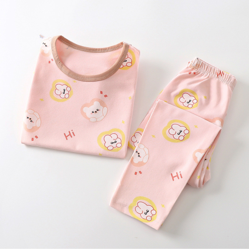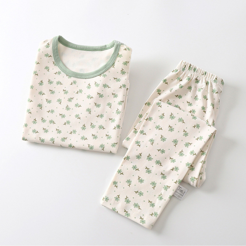 어린이 새 가을 옷과 바지 세트 순면 뼈없는 속옷 라이크라 홈 옷 아기 소녀 따뜻한 잠옷