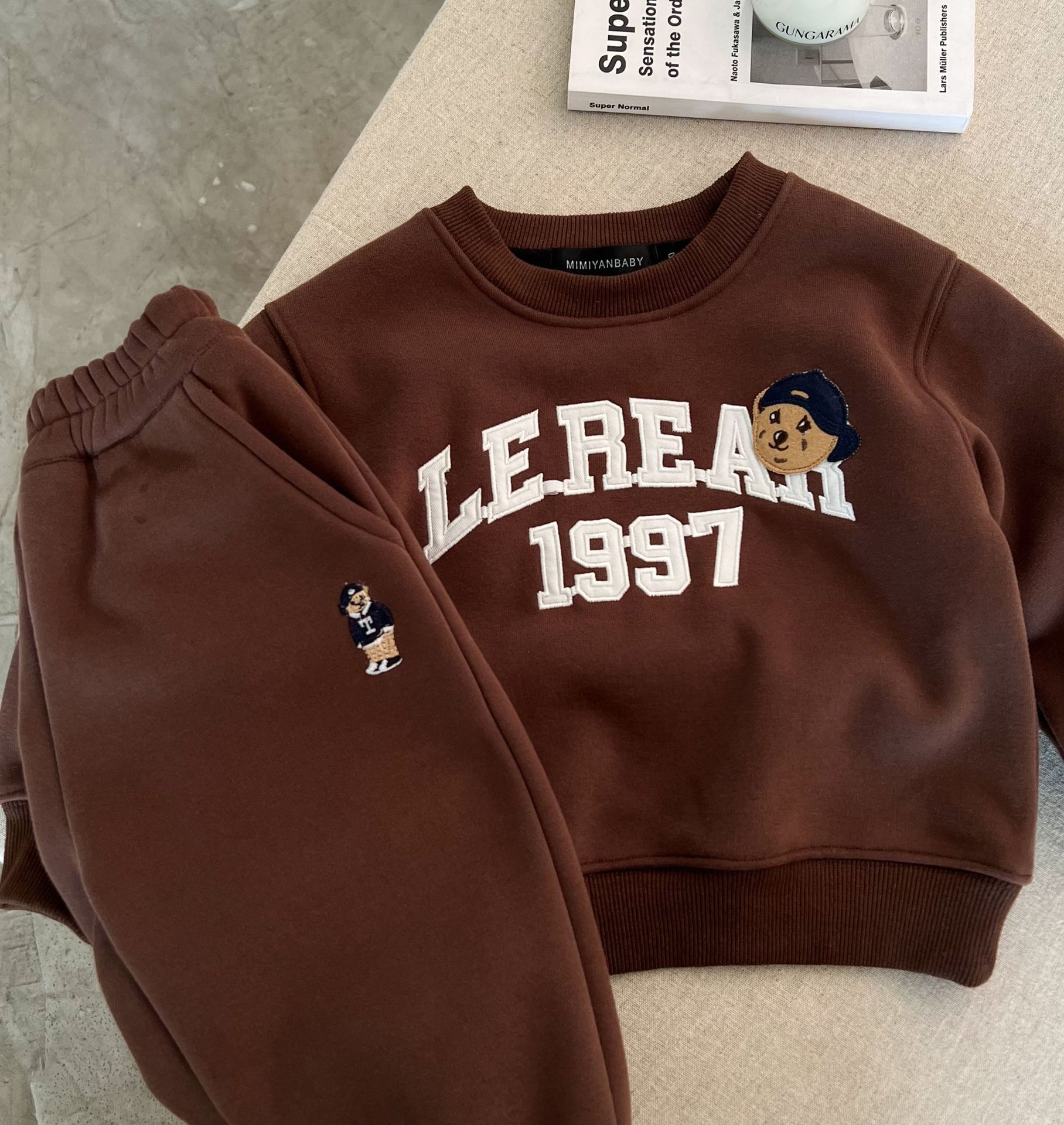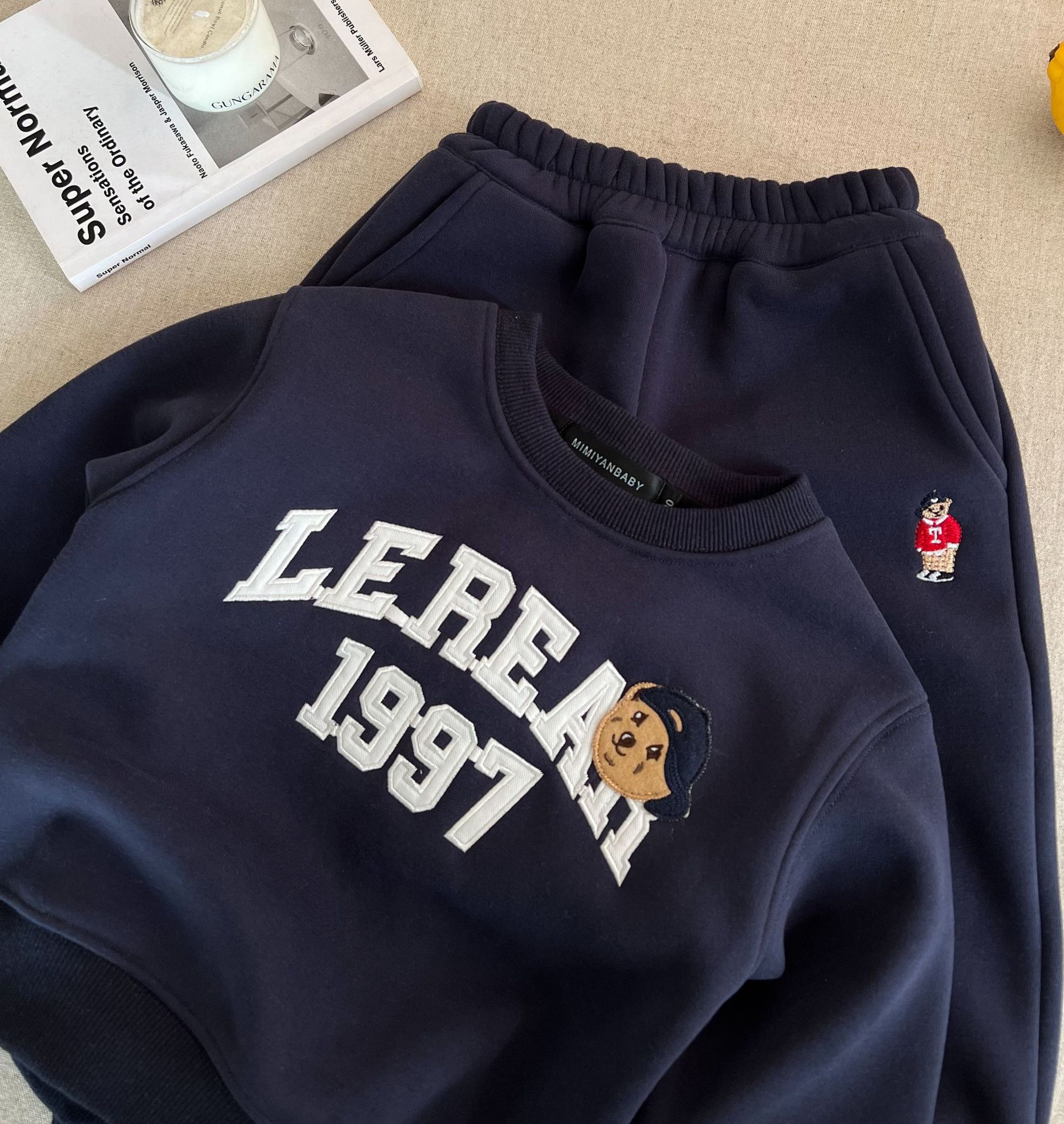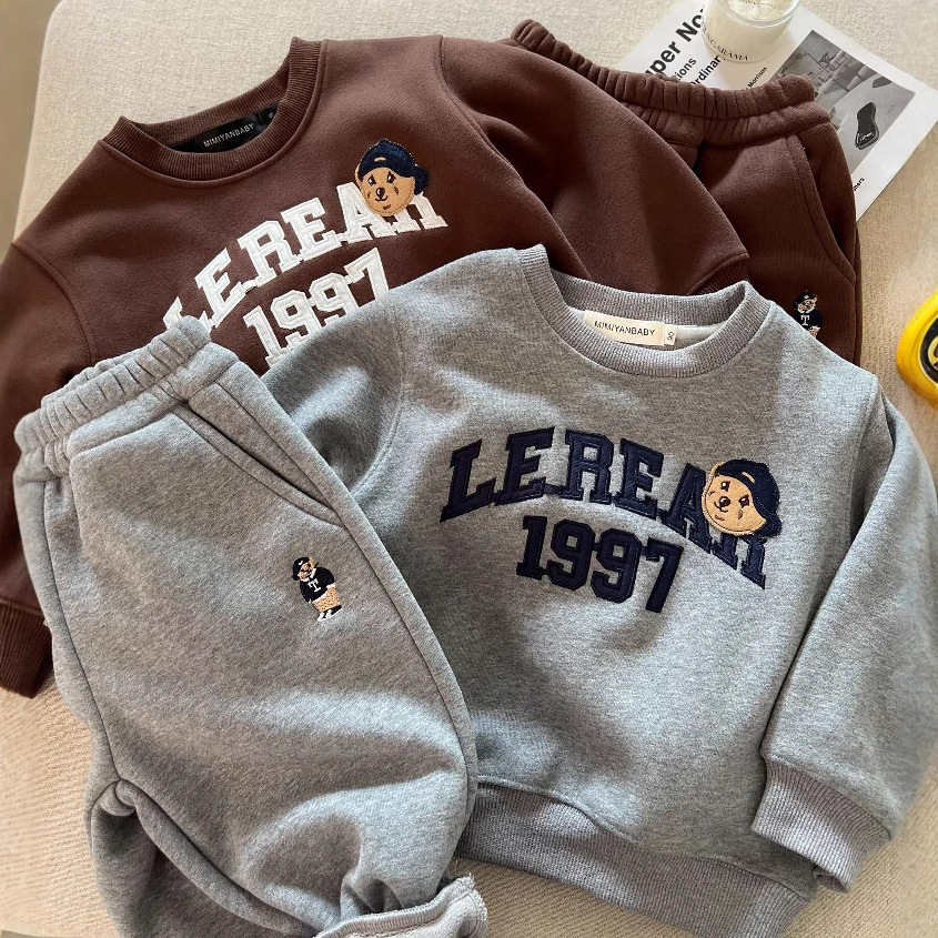 어린이 기모 땀 바지 한국 스타일 소년 가을 겨울 두 조각 두꺼운 유행 어린이 최고 바지 세트 따뜻한스토어 가기