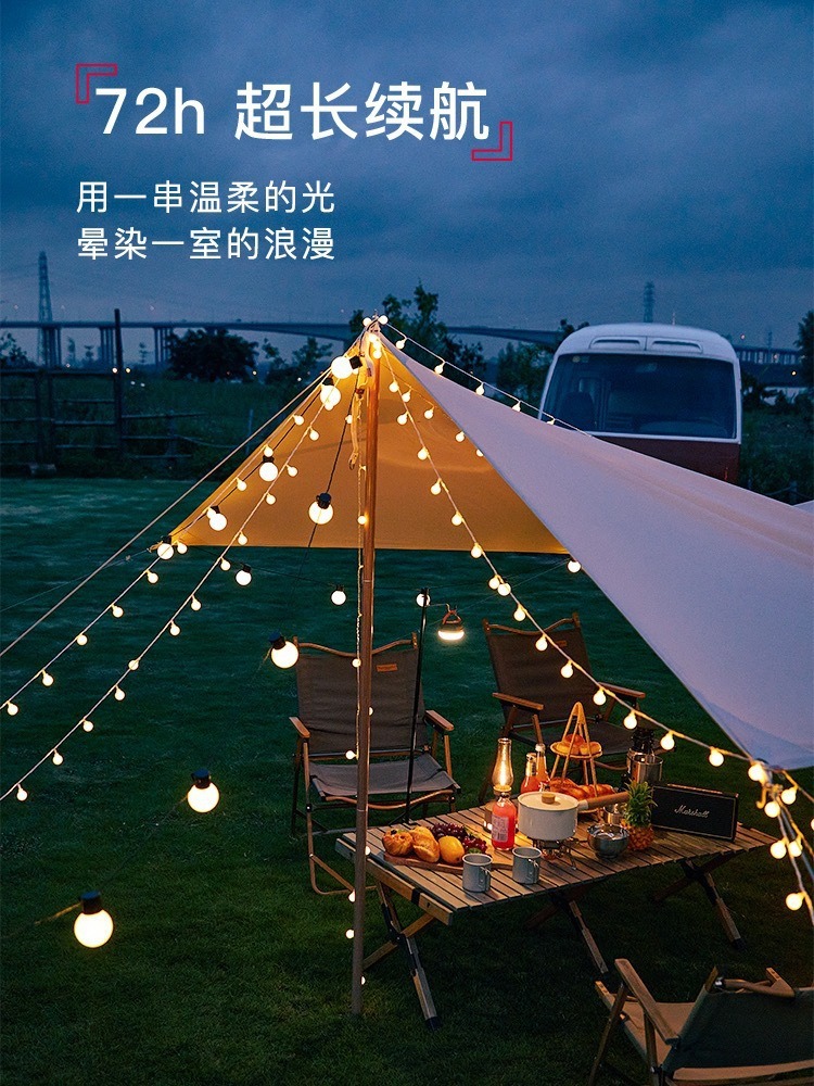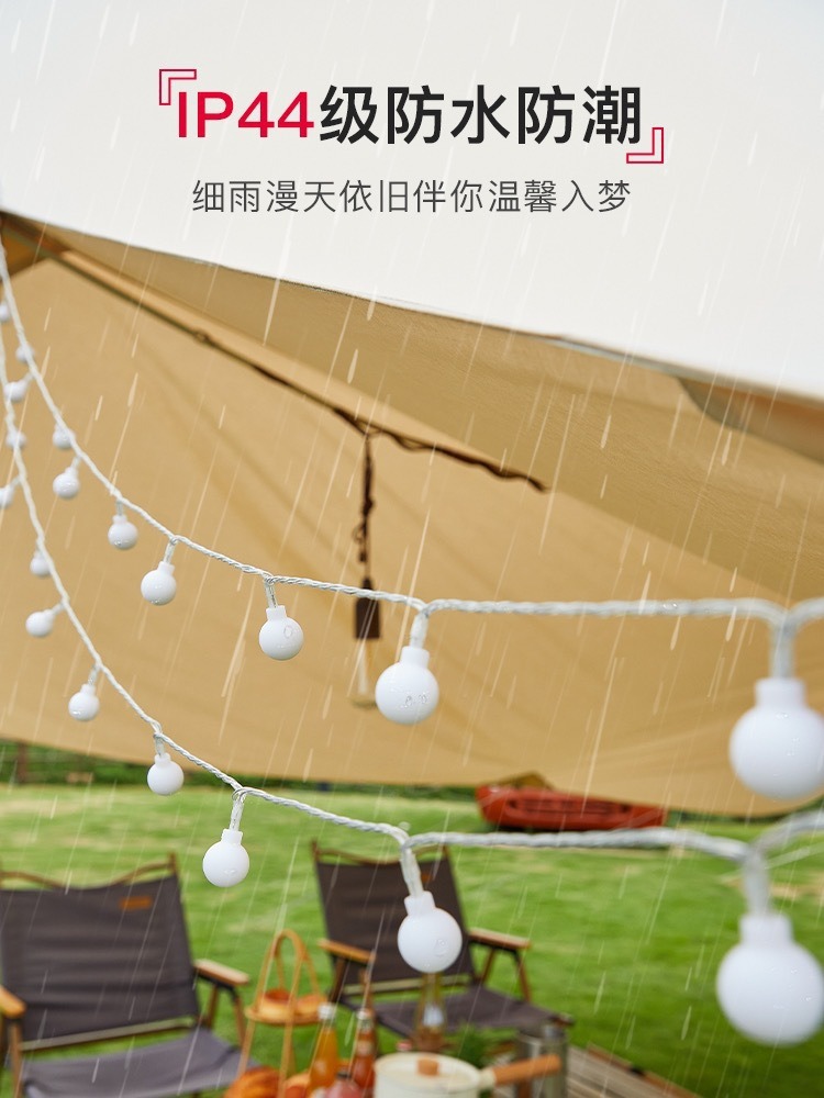 캠핑 장식 10m 반짝이 분위기 조명 배열 야외 방수 달 램프 캠핑 LED 작은 흰색 공 문자열 조명