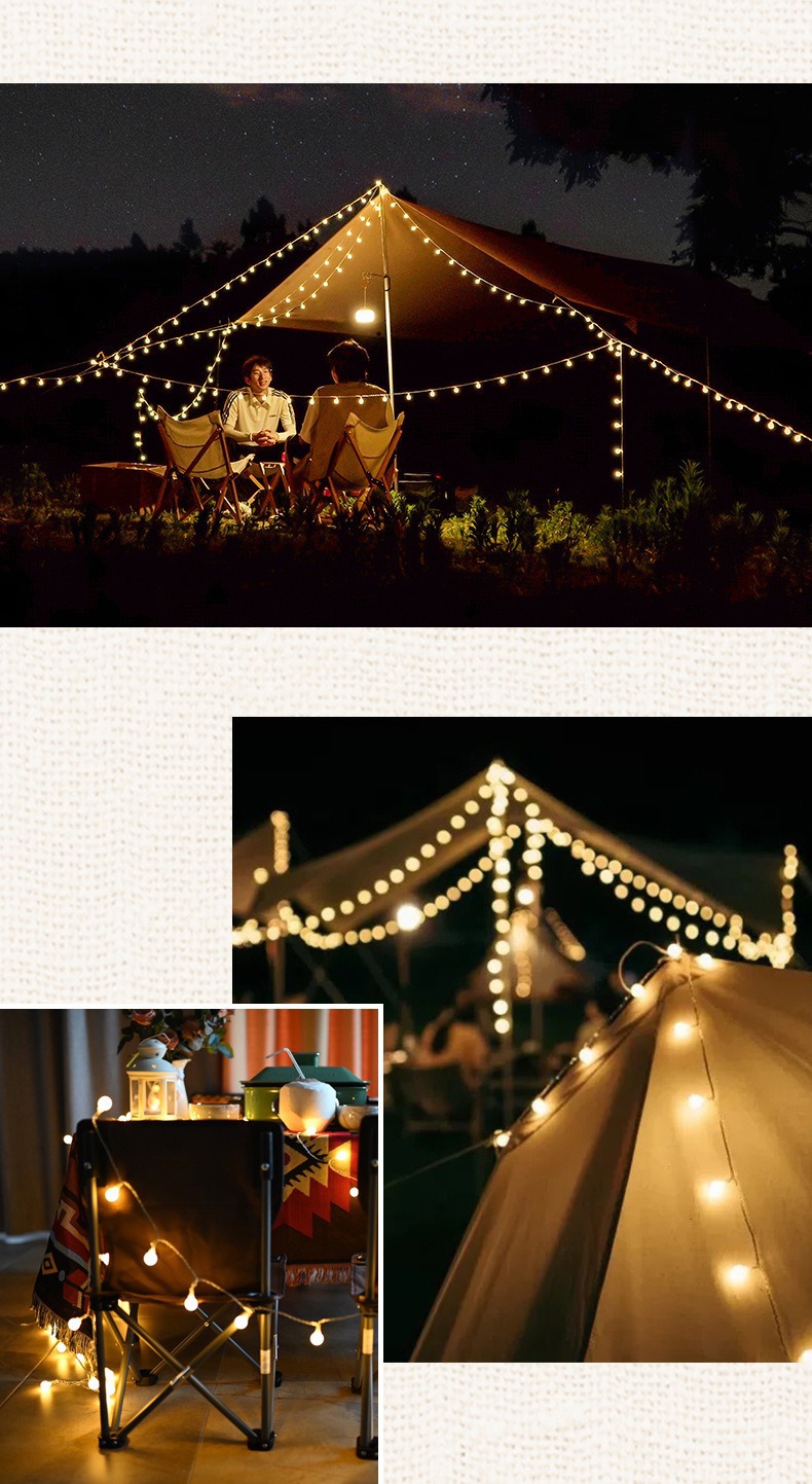캠핑 장식 10m 반짝이 분위기 조명 배열 야외 방수 달 램프 캠핑 LED 작은 흰색 공 문자열 조명스토어 가기