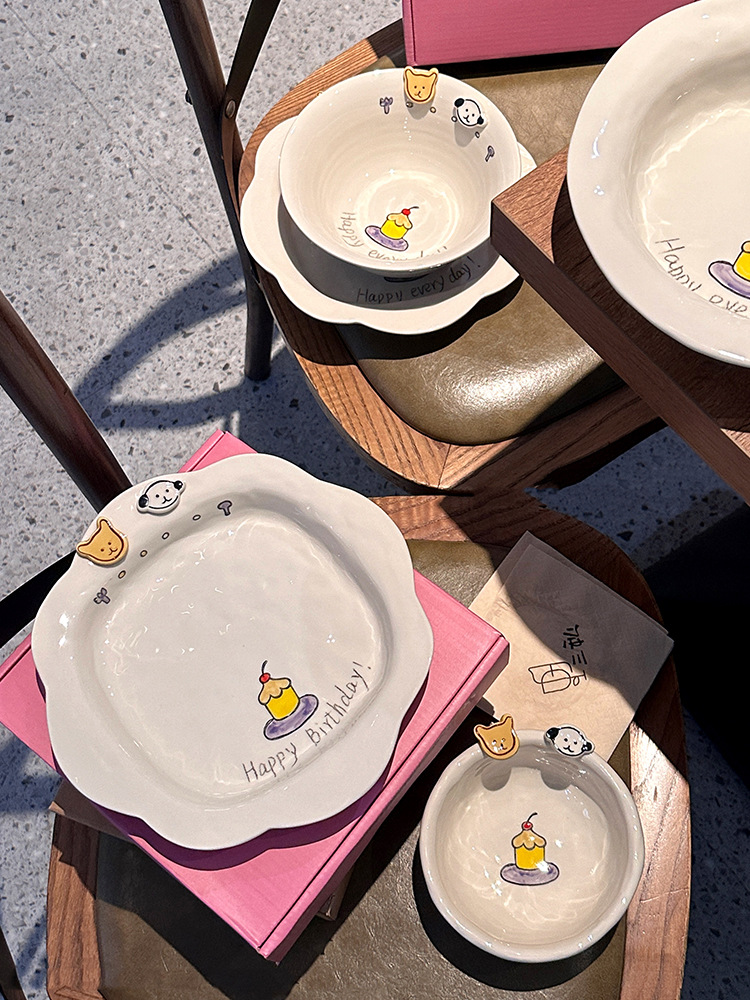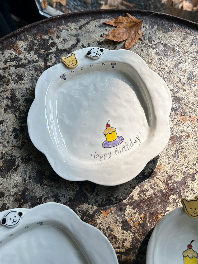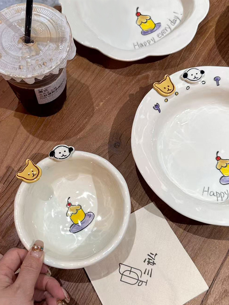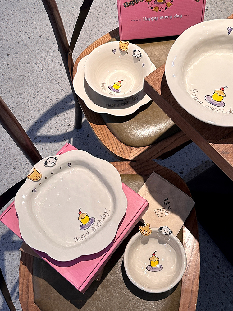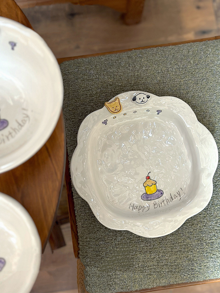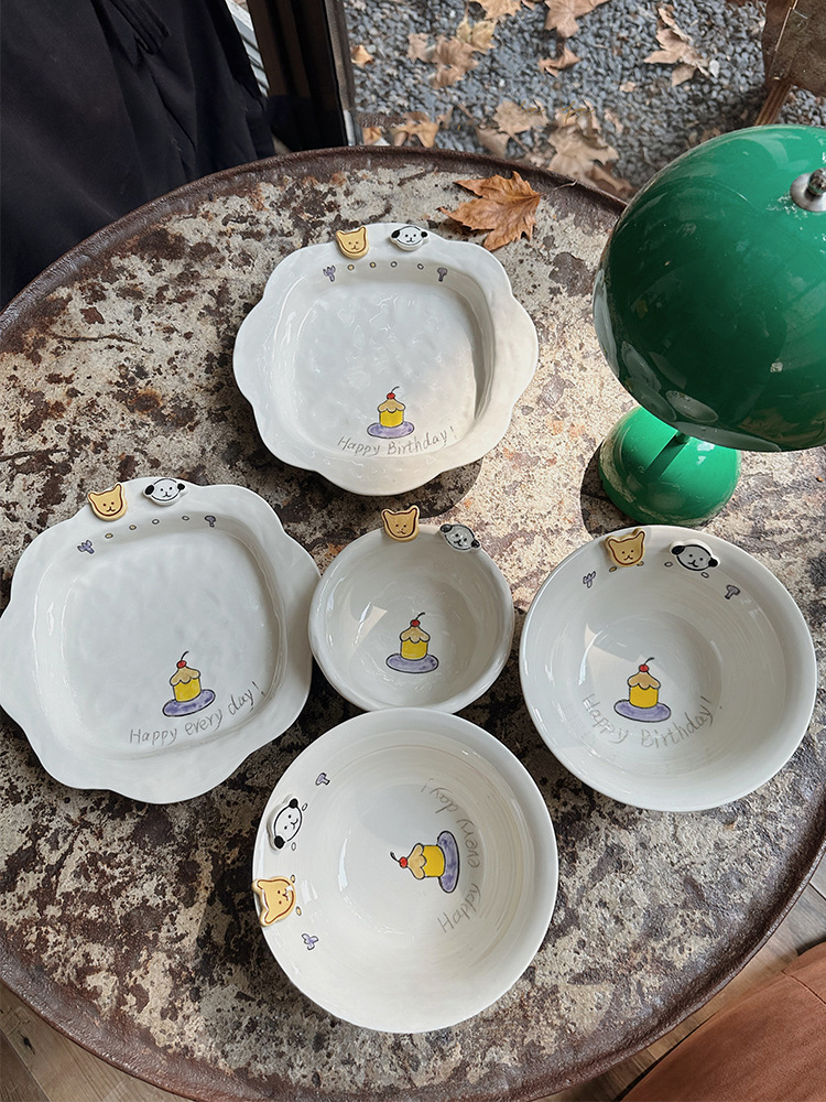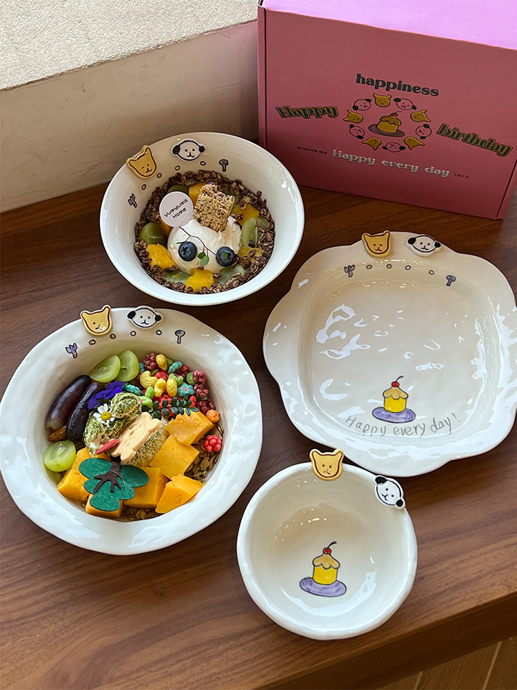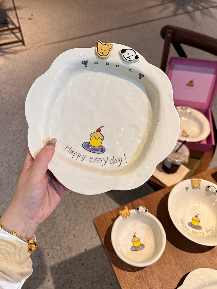 해피 매일 새로운 스타일 세라믹 플레이트 창조적 인 가정용 접시 어린이 접시 깊은 접시 수프 플레이트 아침 식사 플레이트