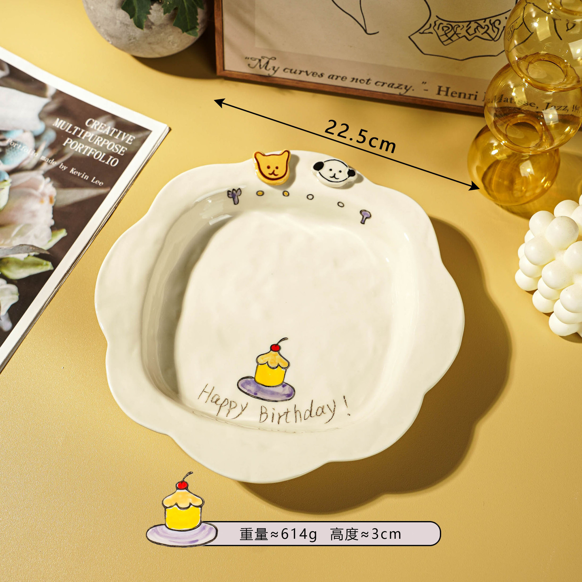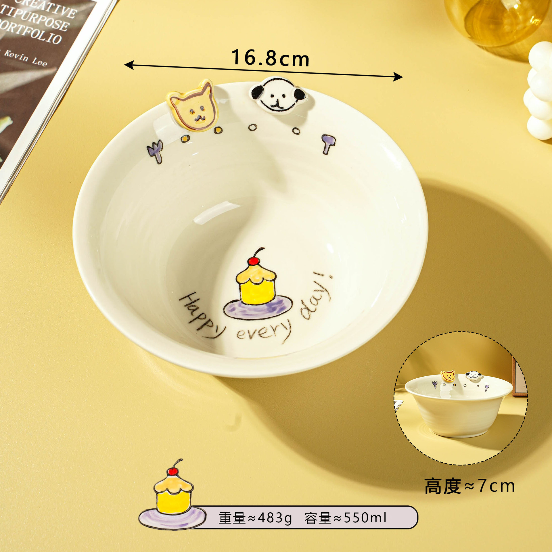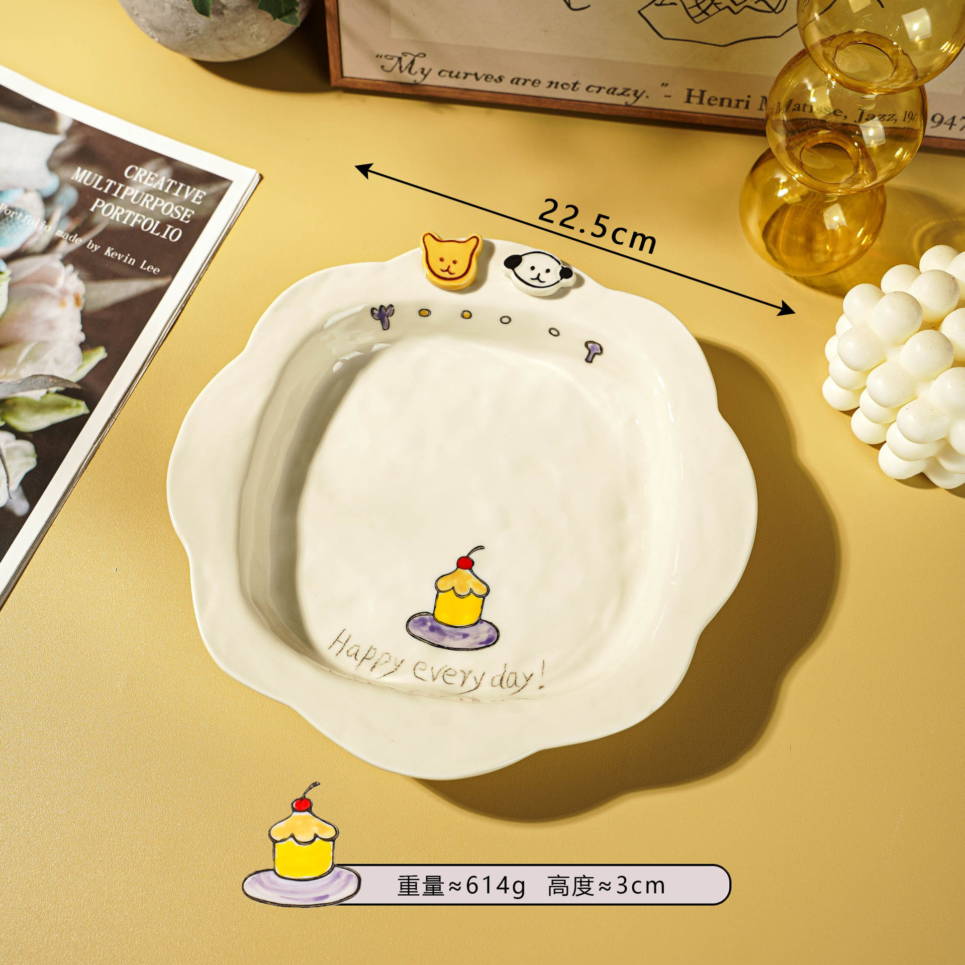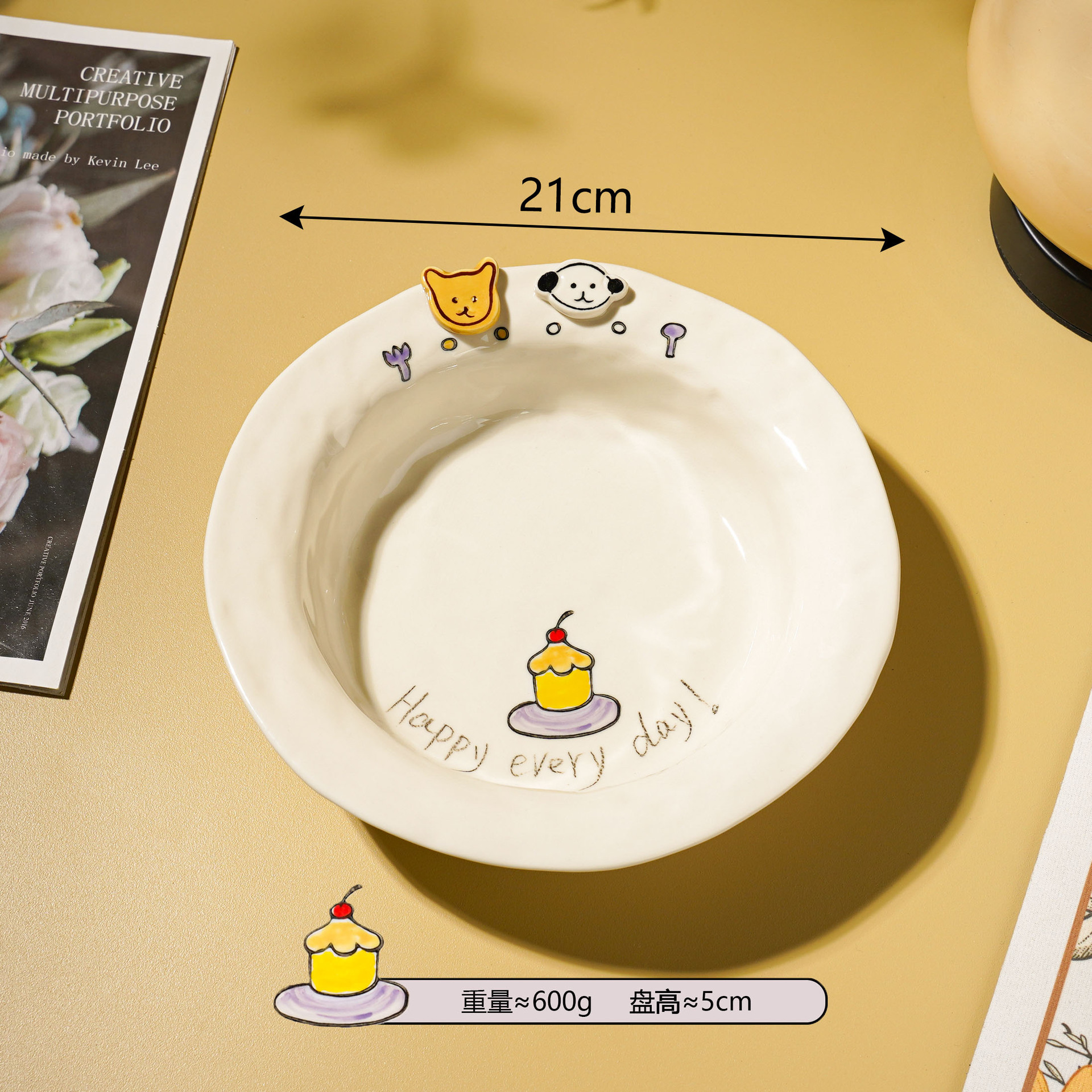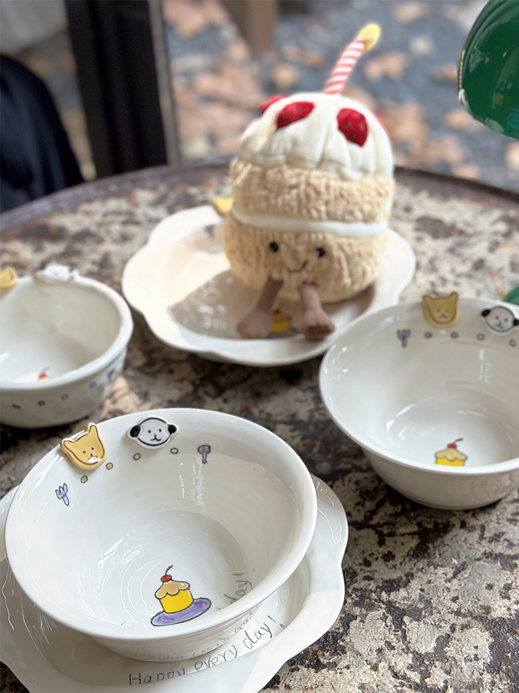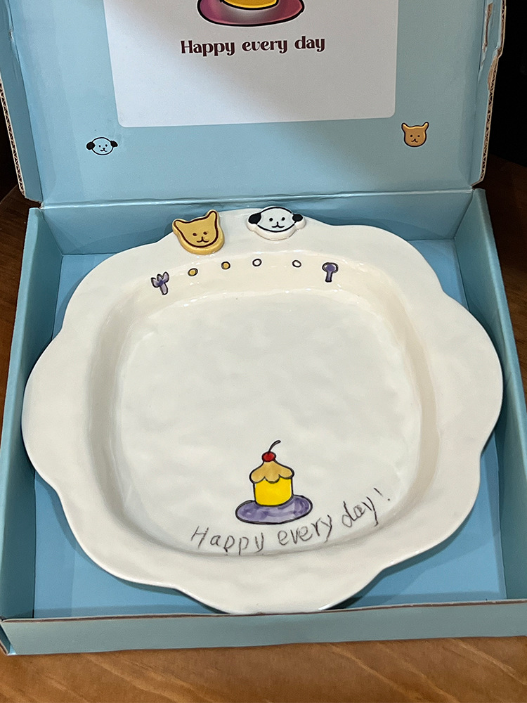 해피 매일 새로운 스타일 세라믹 플레이트 창조적 인 가정용 접시 어린이 접시 깊은 접시 수프 플레이트 아침 식사 플레이트