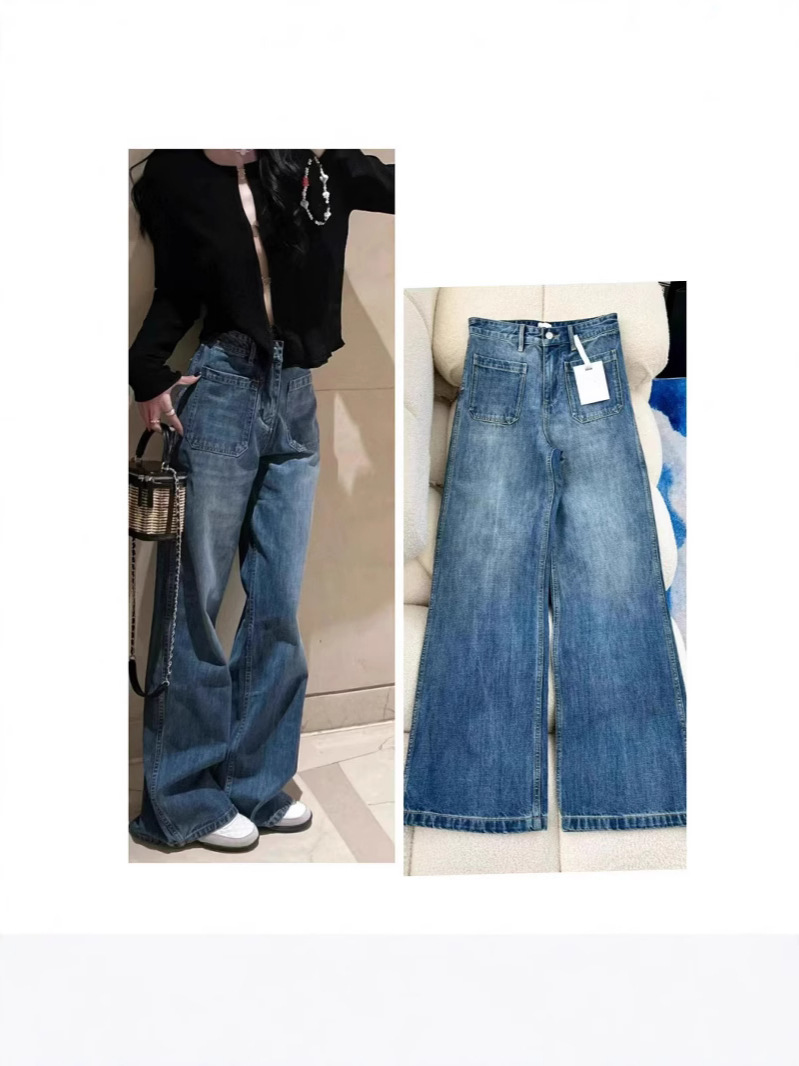 Nanyou 하이 엔드 여성 의류 D 홈 레트로 블루 워시 워터 2024 가을 새로운 하이 허리 슬림 스트레이트 튜브 조커 청바지