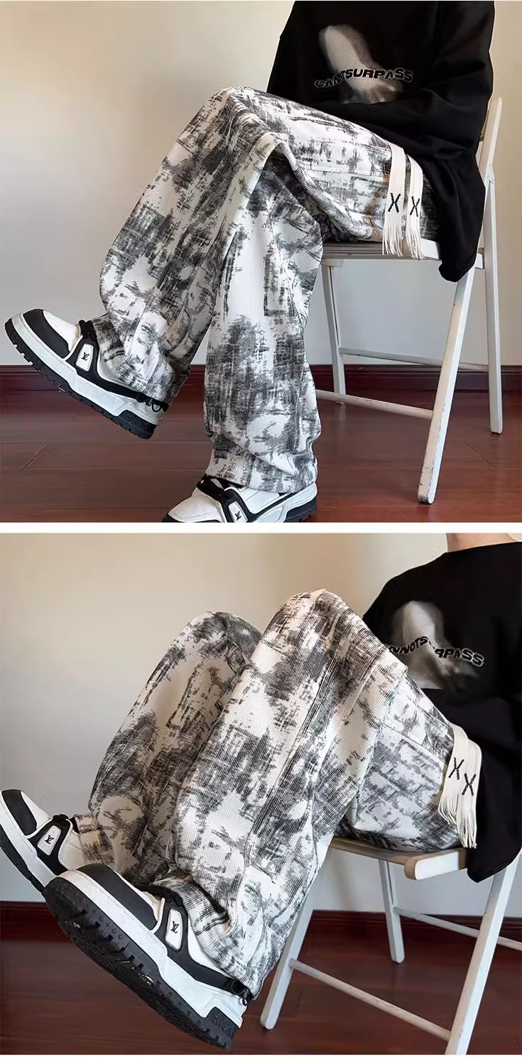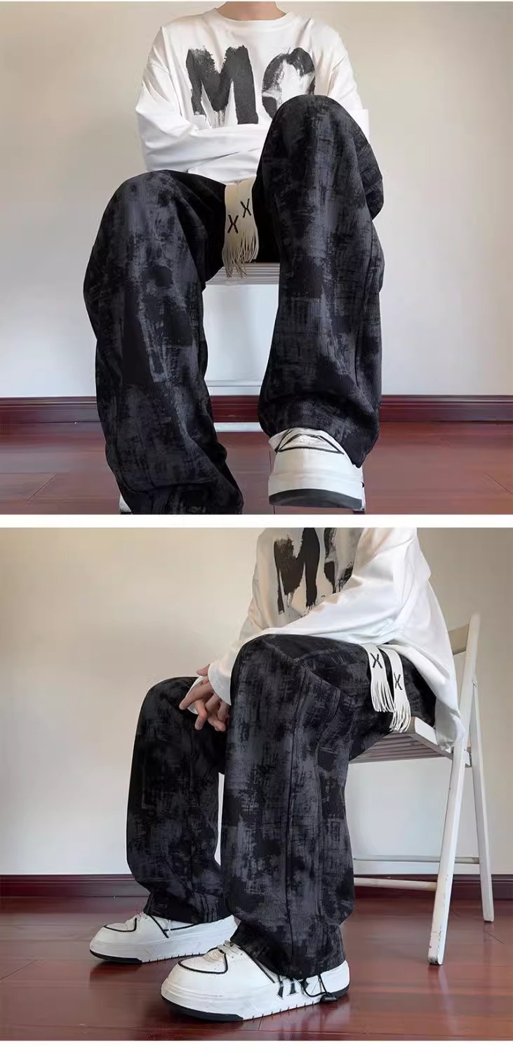 넥타이 염색 바지 남자의 가을과 겨울 미국 느슨한 유행 브랜드 캐주얼 바지 소년 레트로 하이 스트리트 스트레이트 스포츠 바지