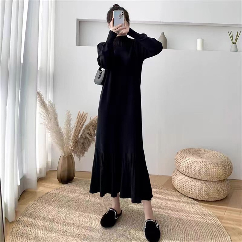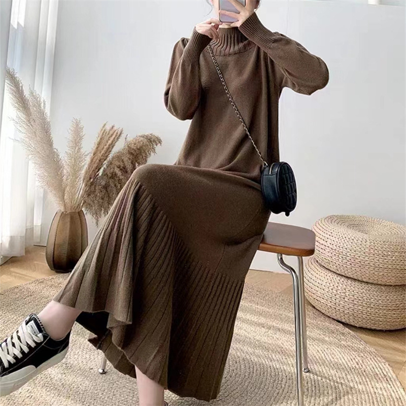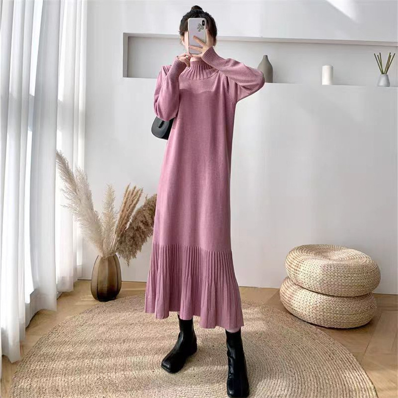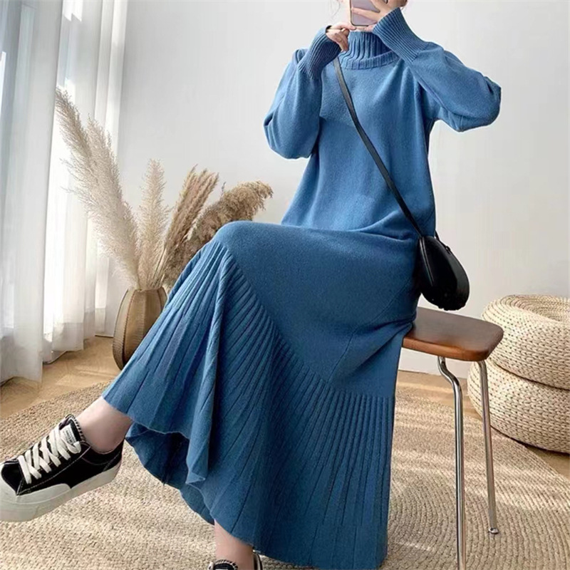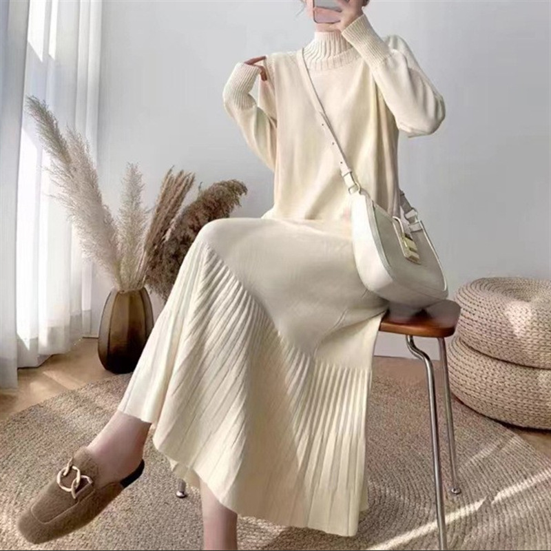 2025년 가을 신상 여성용 외국 무역 니트 스커트, 루즈핏 코트와 함께 입는 하이넥 니트 롱 스커트스토어 가기
