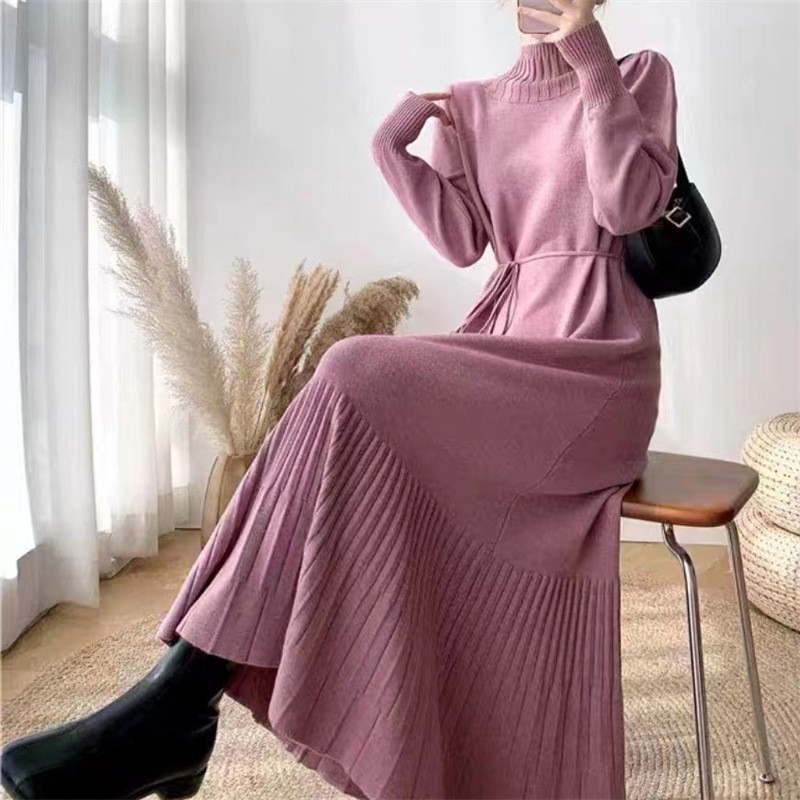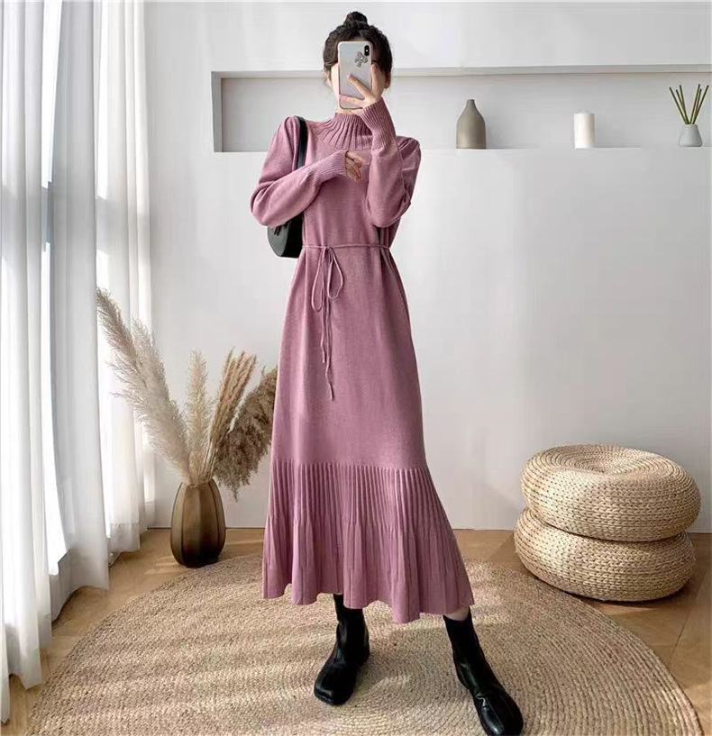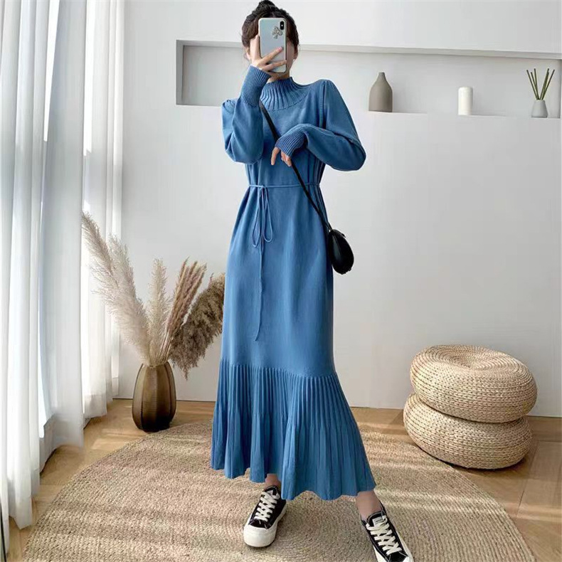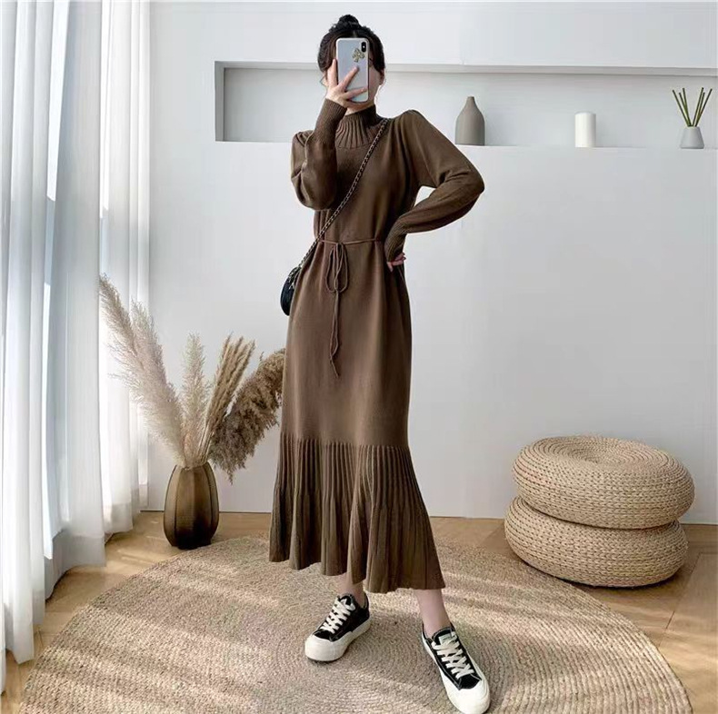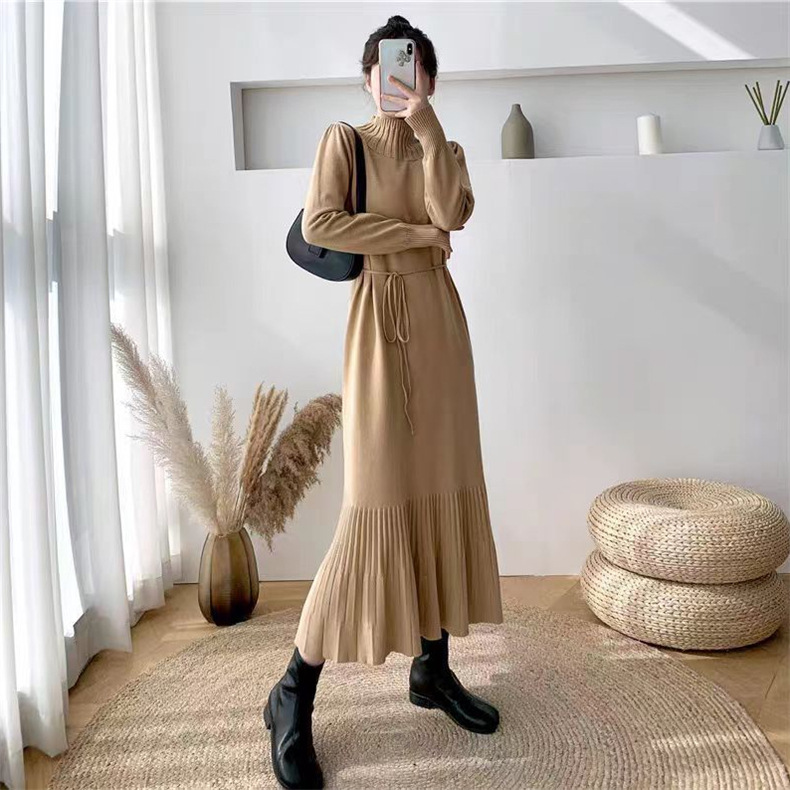 2025년 가을 신상 여성용 외국 무역 니트 스커트, 루즈핏 코트와 함께 입는 하이넥 니트 롱 스커트스토어 가기