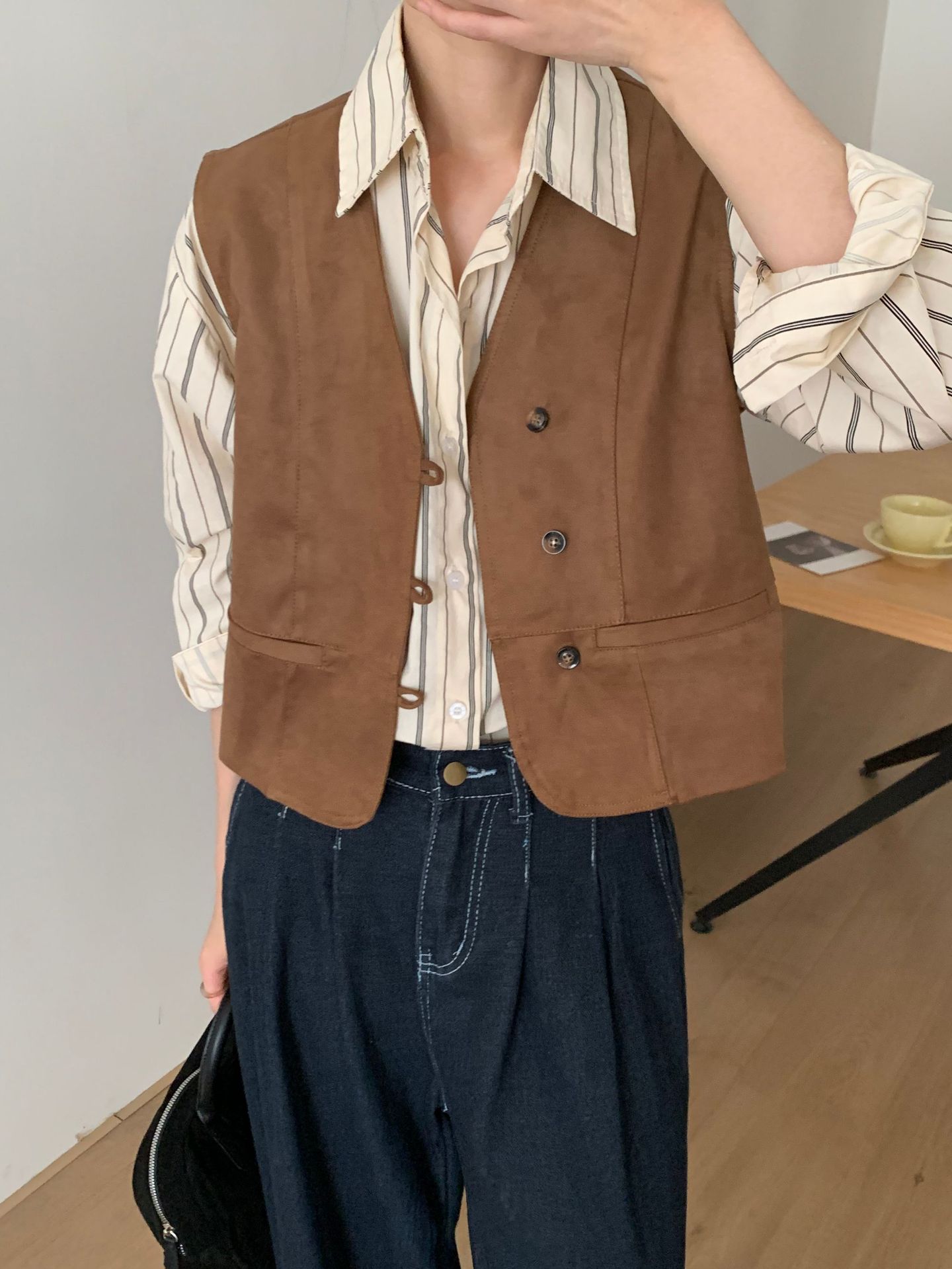 고급스러운 느낌의 가디건과 스타일리시한 레이어드 조끼, 2026년 초봄 신상, 심플하고 활용도 높은 얇은 단색 여성 조끼스토어 가기