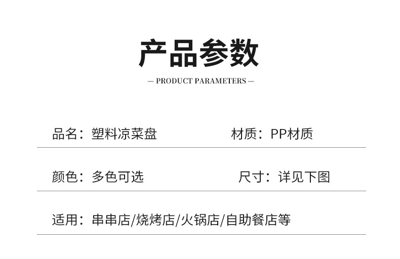 플라스틱 두꺼운 냉채 접시, 조림 요리, 즉석 요리, 냉채, 매운 요리, 꼬치 요리, 채소 선택 및 배치용 냉장 진열 접시
