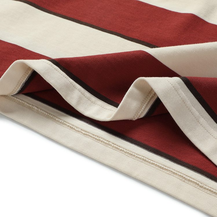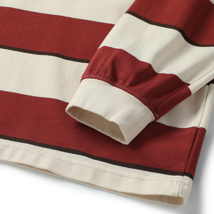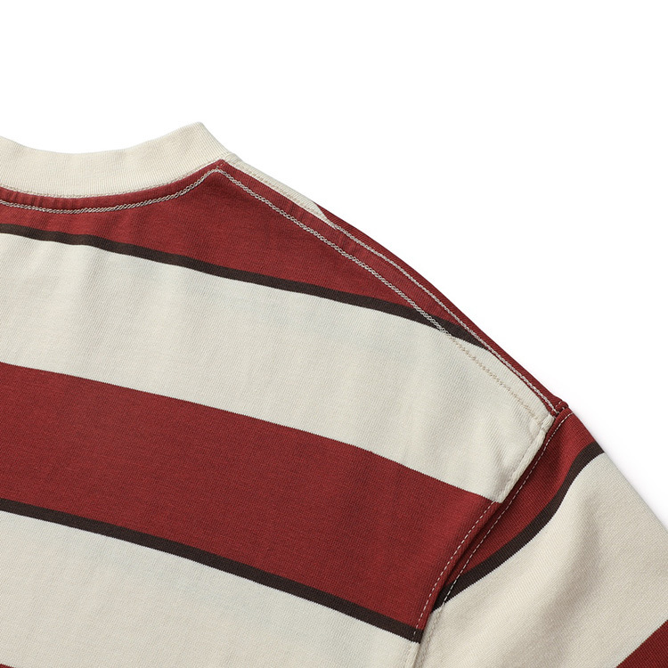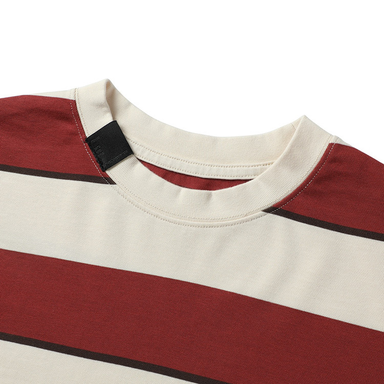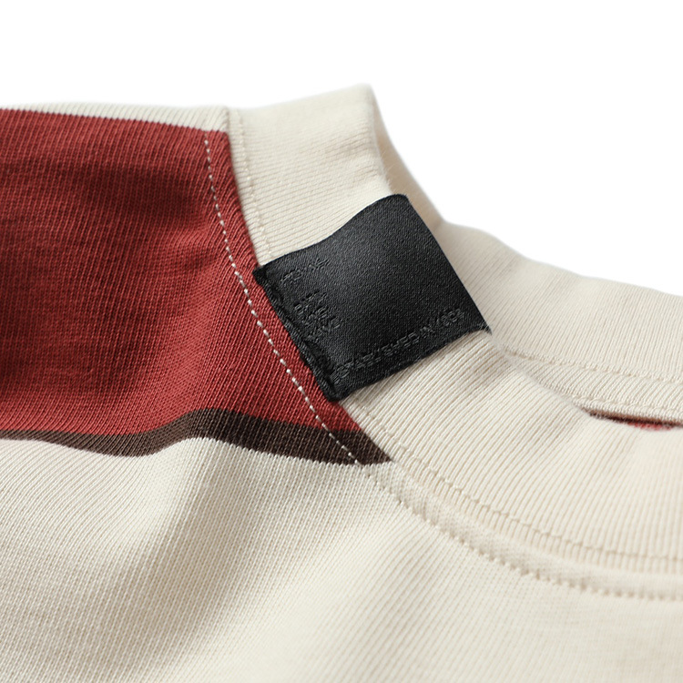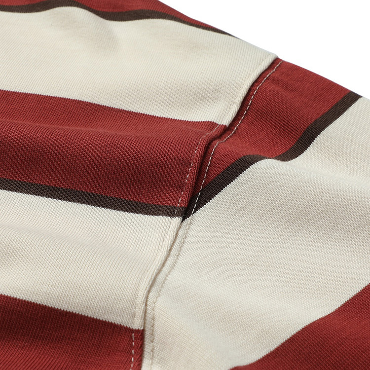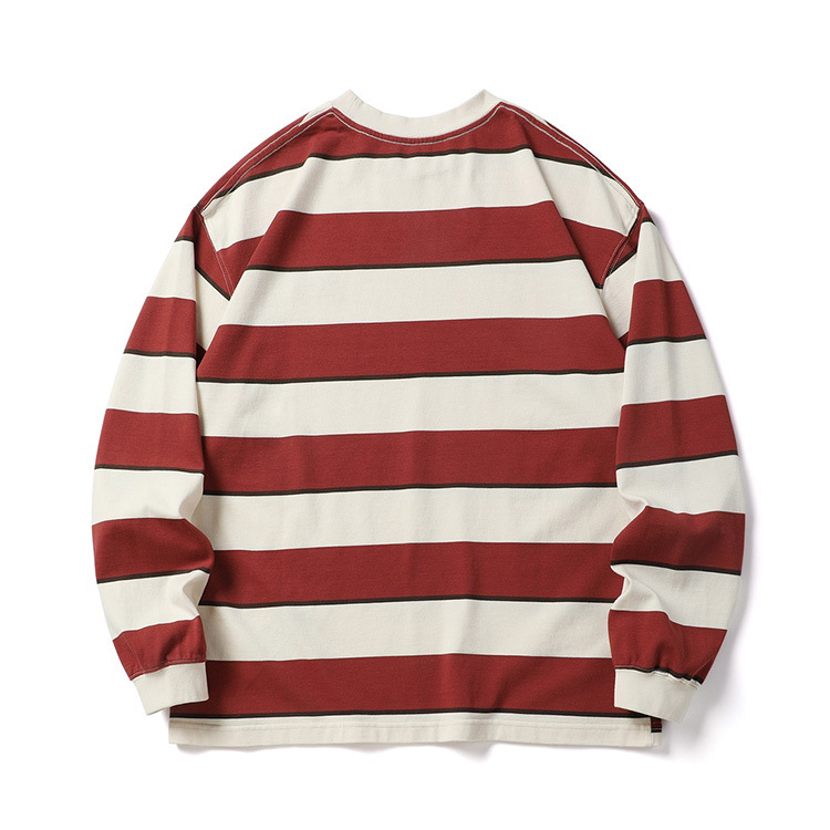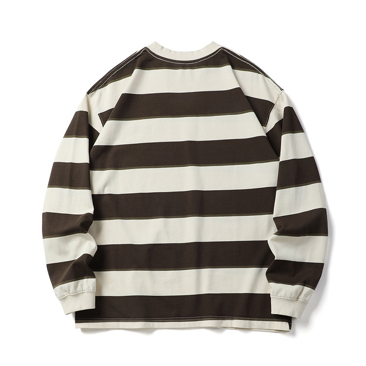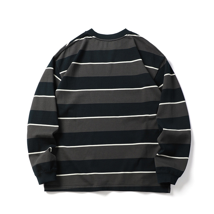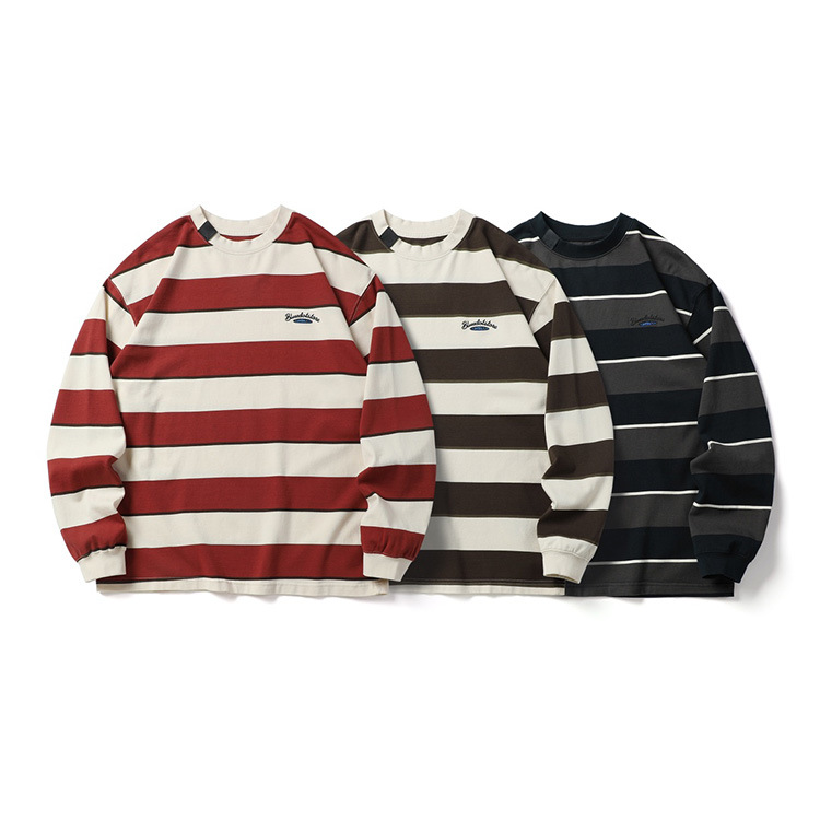 두꺼운 줄무늬 작은 자수 350G 무거운 긴팔 티셔츠 남성용 느슨한 어깨 소매 둥근 목 재킷 가을면 긴팔
