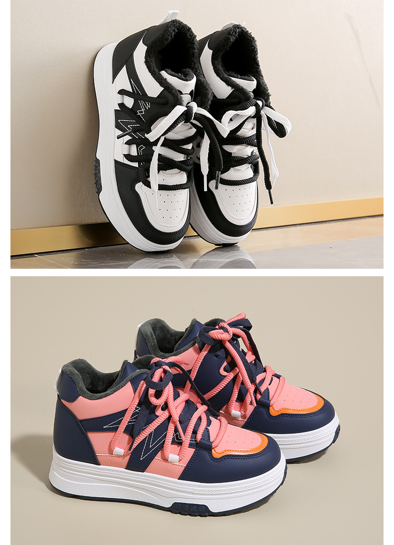 겨울 기모 어린이와 학생을위한 하이탑 화이트 슈즈, 한국식 올매치 두꺼운 따뜻한 코튼 슈즈 트렌디 스포츠 스니커즈