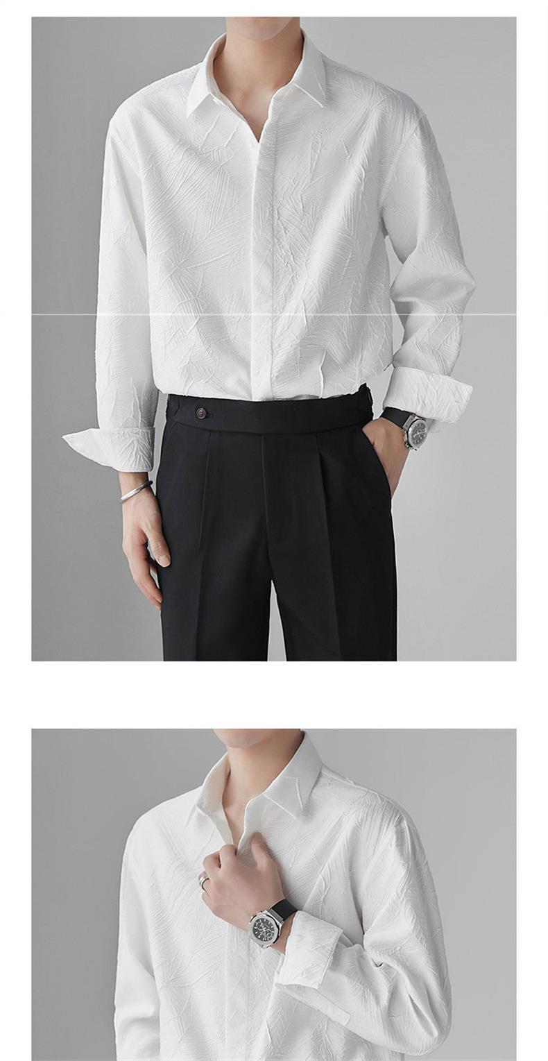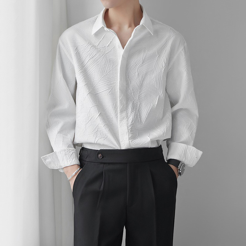 고급 프랑스 틈새 셔츠 남자의 느슨한 캐주얼 자카드 셔츠 젊은 Yuppie 잘 생긴 한국 스타일 아우터 탑