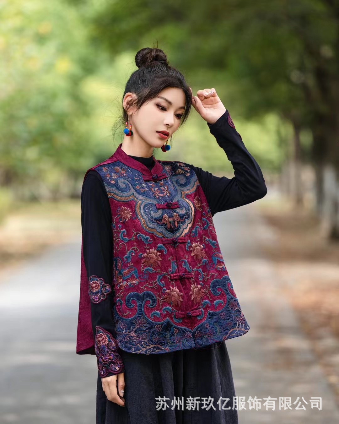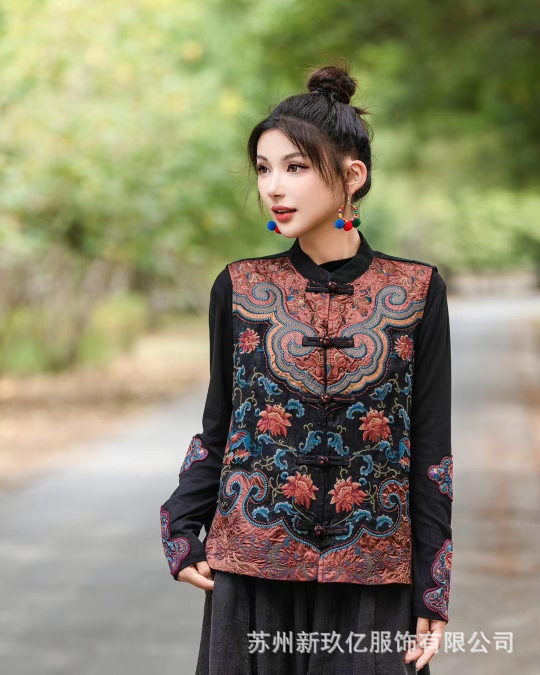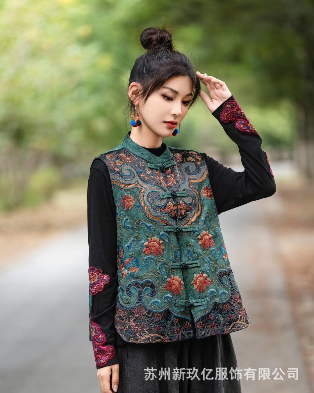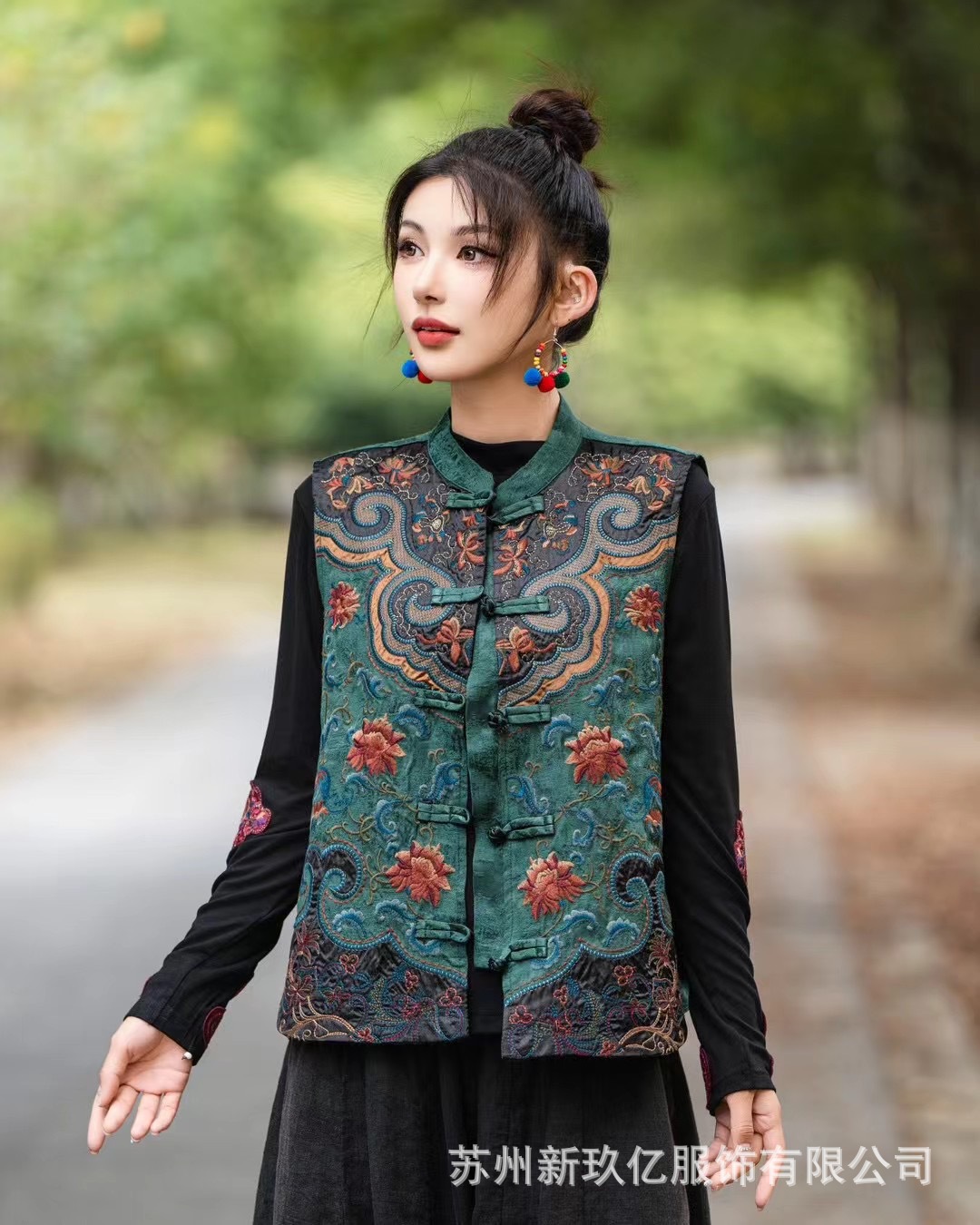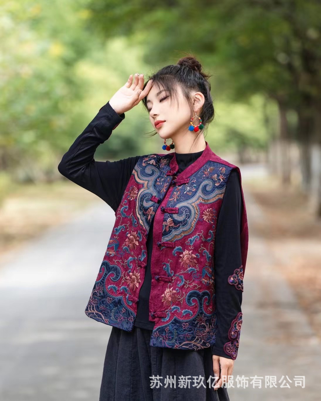 2024 가을과 겨울 새로운 민족 스타일 빈티지 칼라 버클 조끼 여성 예술 패션 수놓은 코튼 리넨 느슨한 조끼스토어 가기
