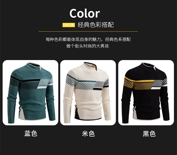 국경 간 대외 무역 새로운 남성 스웨터 한국 스타일 청소년 패션 캐주얼 단순 줄무늬 컬러 블록 스웨터스토어 가기