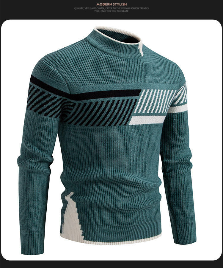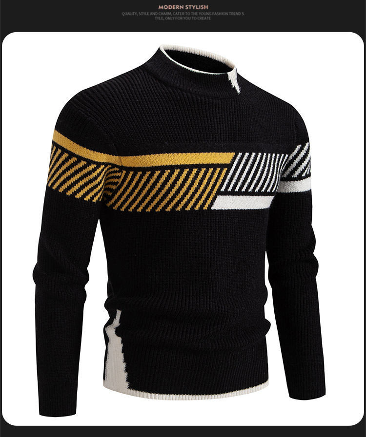 국경 간 대외 무역 새로운 남성 스웨터 한국 스타일 청소년 패션 캐주얼 단순 줄무늬 컬러 블록 스웨터