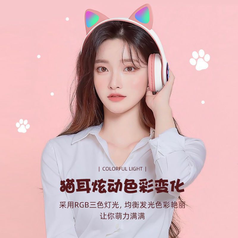 STN-28 국경 간 고양이 귀 발광 무선 블루투스 헤드셋 헤드셋 휴대 전화 앵커 게임 헤드셋 범용