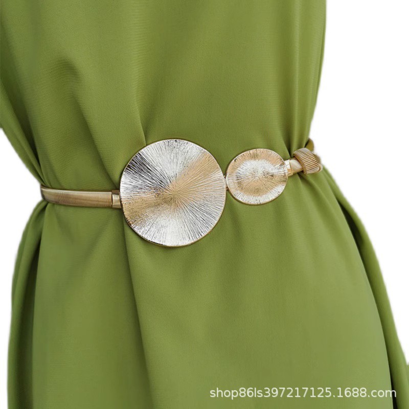 유럽과 미국의 성격 과장된 링 벨트 탄성 탄성 금속 장식 치마 여성을위한 원피스 허리 체인스토어 가기