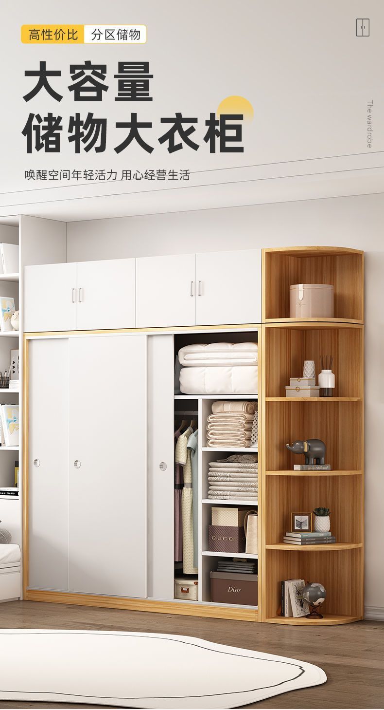 Aoyimai 옷장 홈 침실 현대 간단한 슬라이딩 도어 기숙사 임대실 성인과 어린이를위한 경제적 인 옷장
