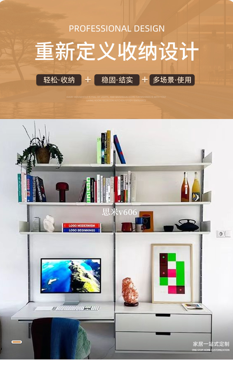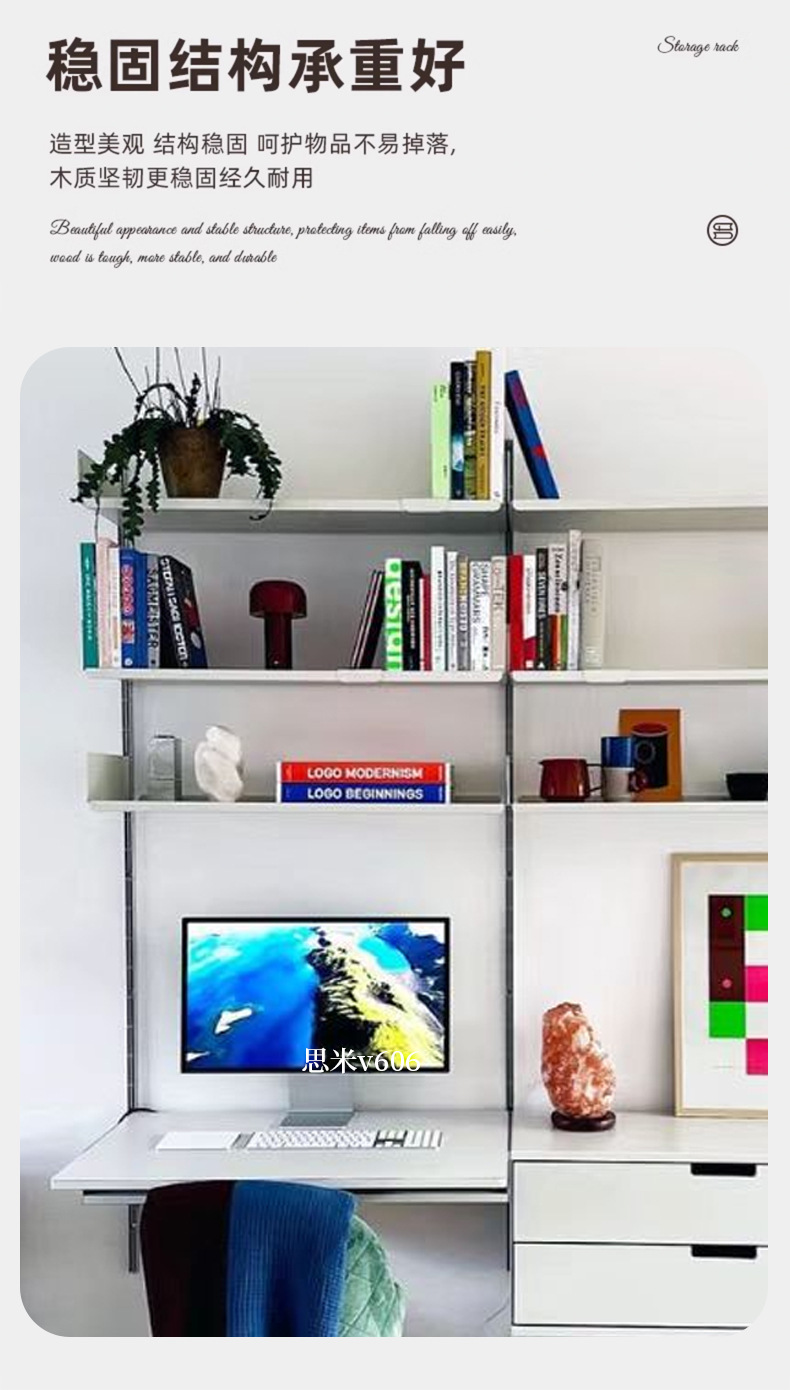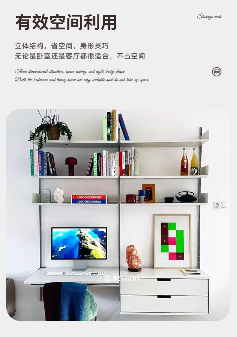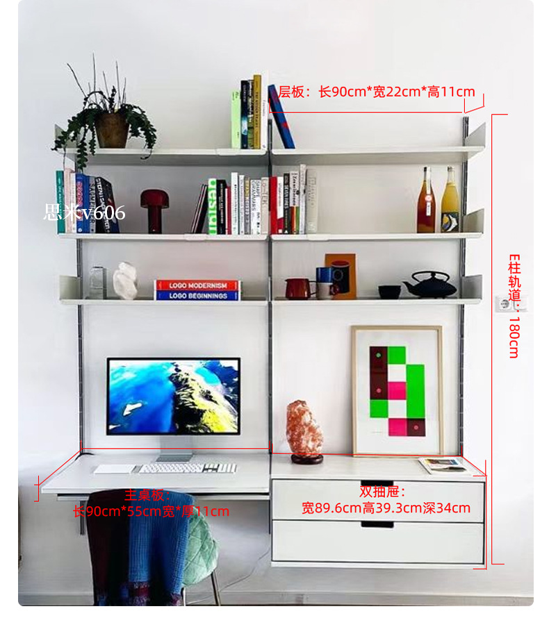 서랍이 있는 트랙 책장, 벽걸이형 책장, 침실 벽걸이 책장, 일체형 컴퓨터 책상 캐비닛