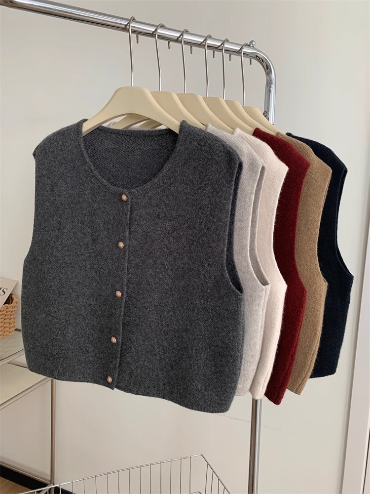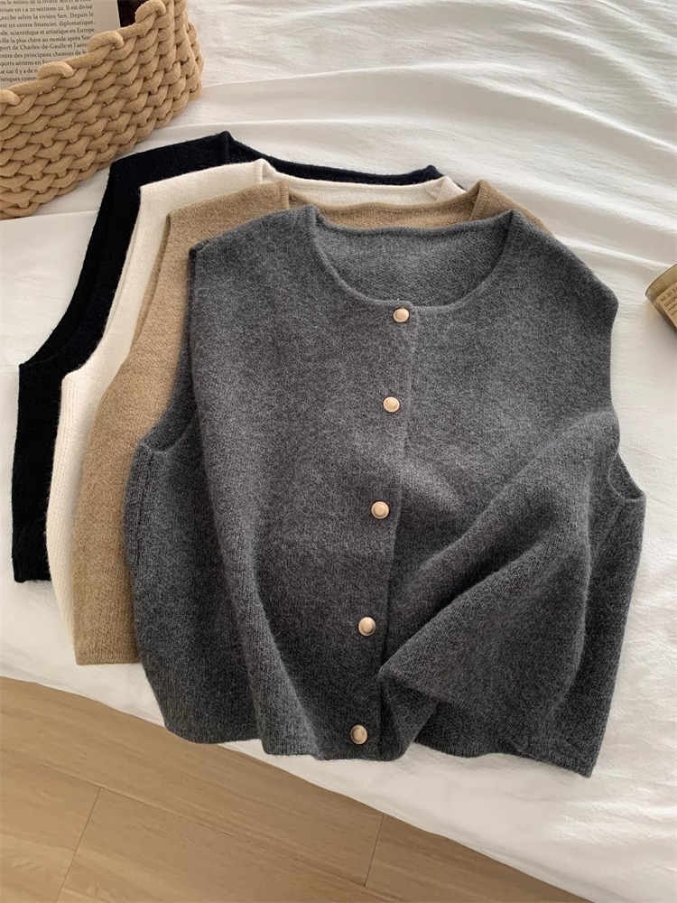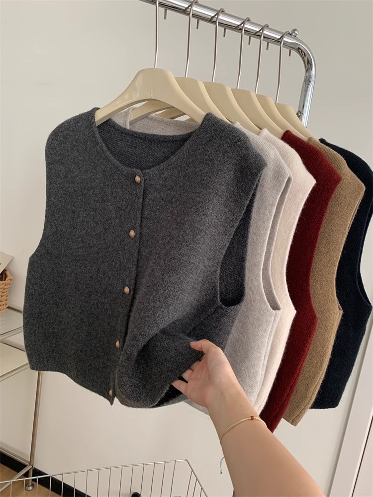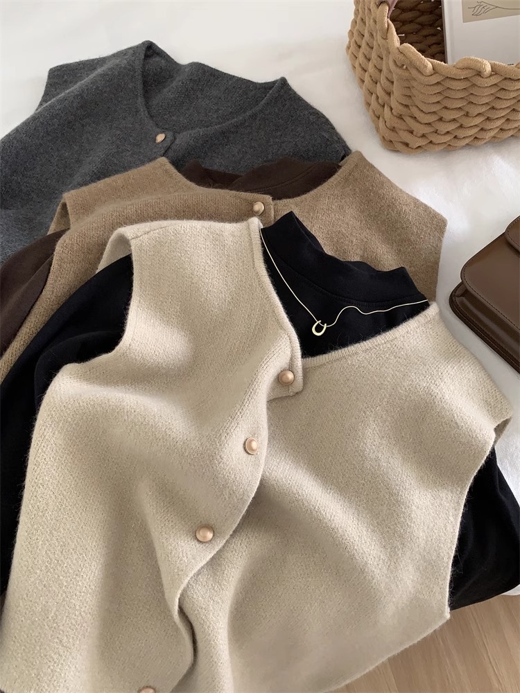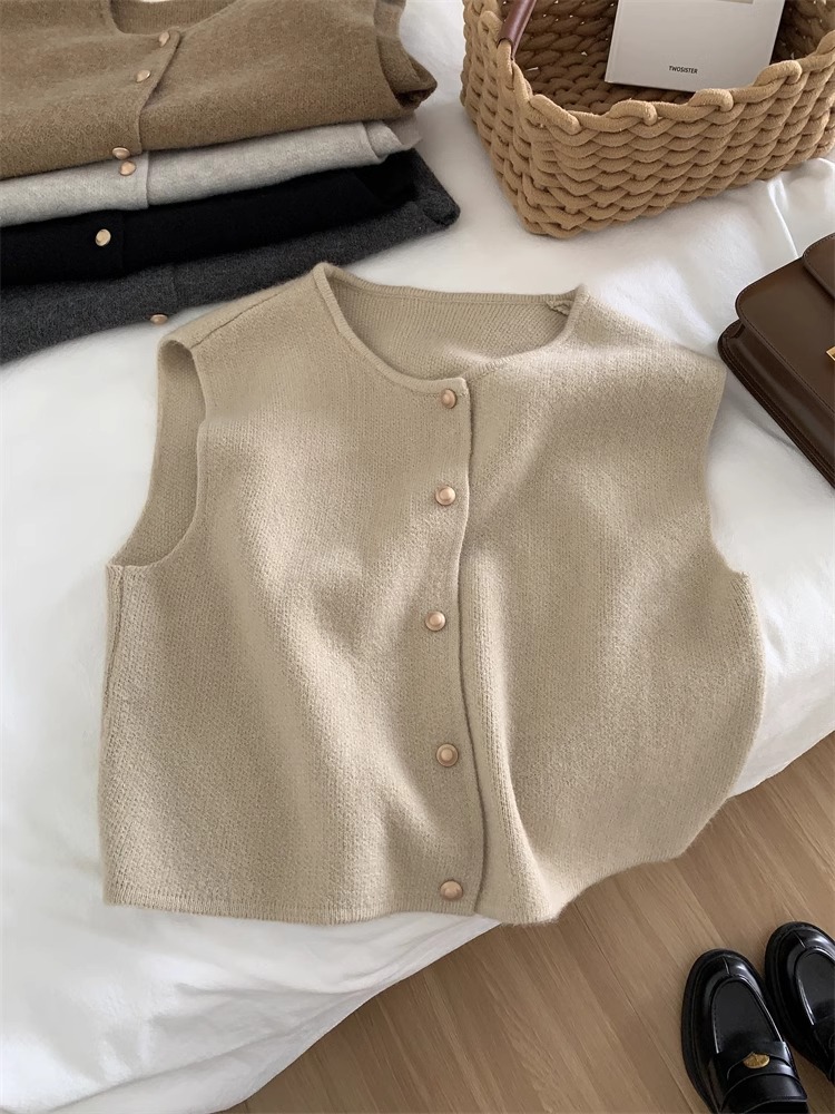소프트 와시 싱글 브레스트 니트 조끼 카디건 2025 봄 한국 캐주얼 올매치 민소매 최고 여성 허리 코트스토어 가기