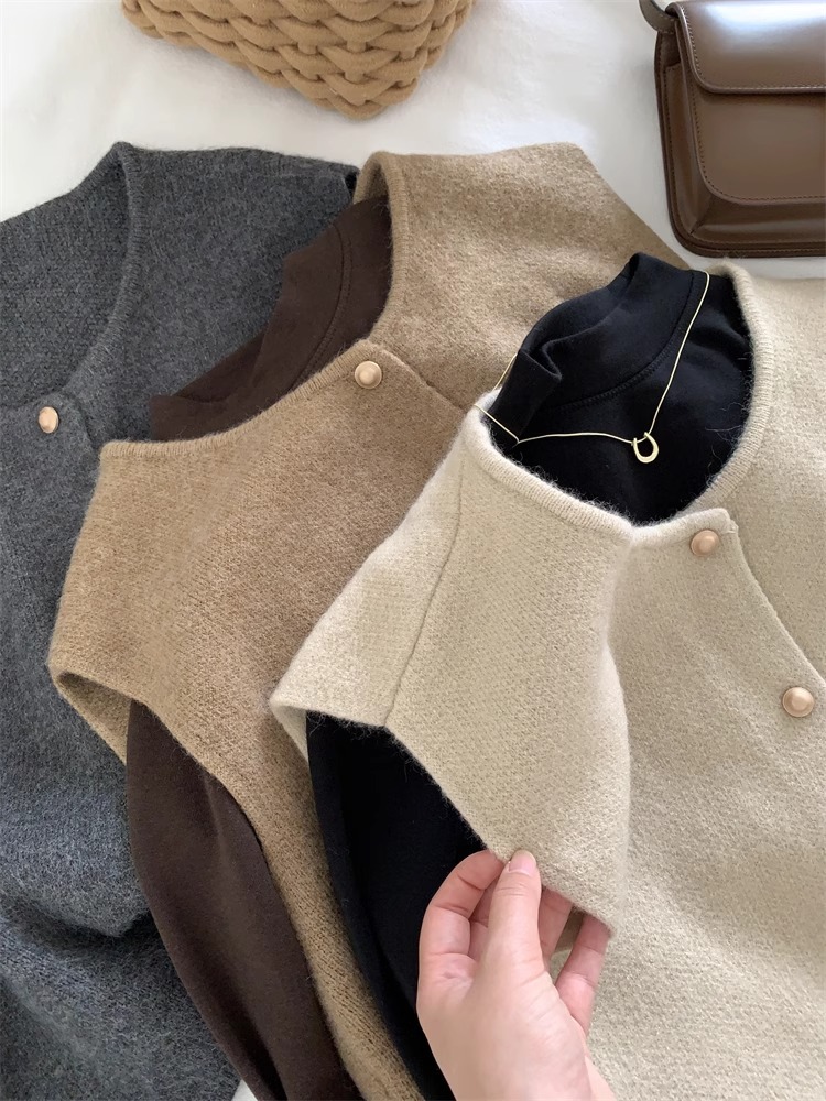 소프트 와시 싱글 브레스트 니트 조끼 카디건 2025 봄 한국 캐주얼 올매치 민소매 최고 여성 허리 코트
