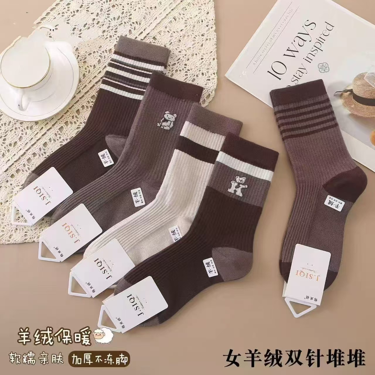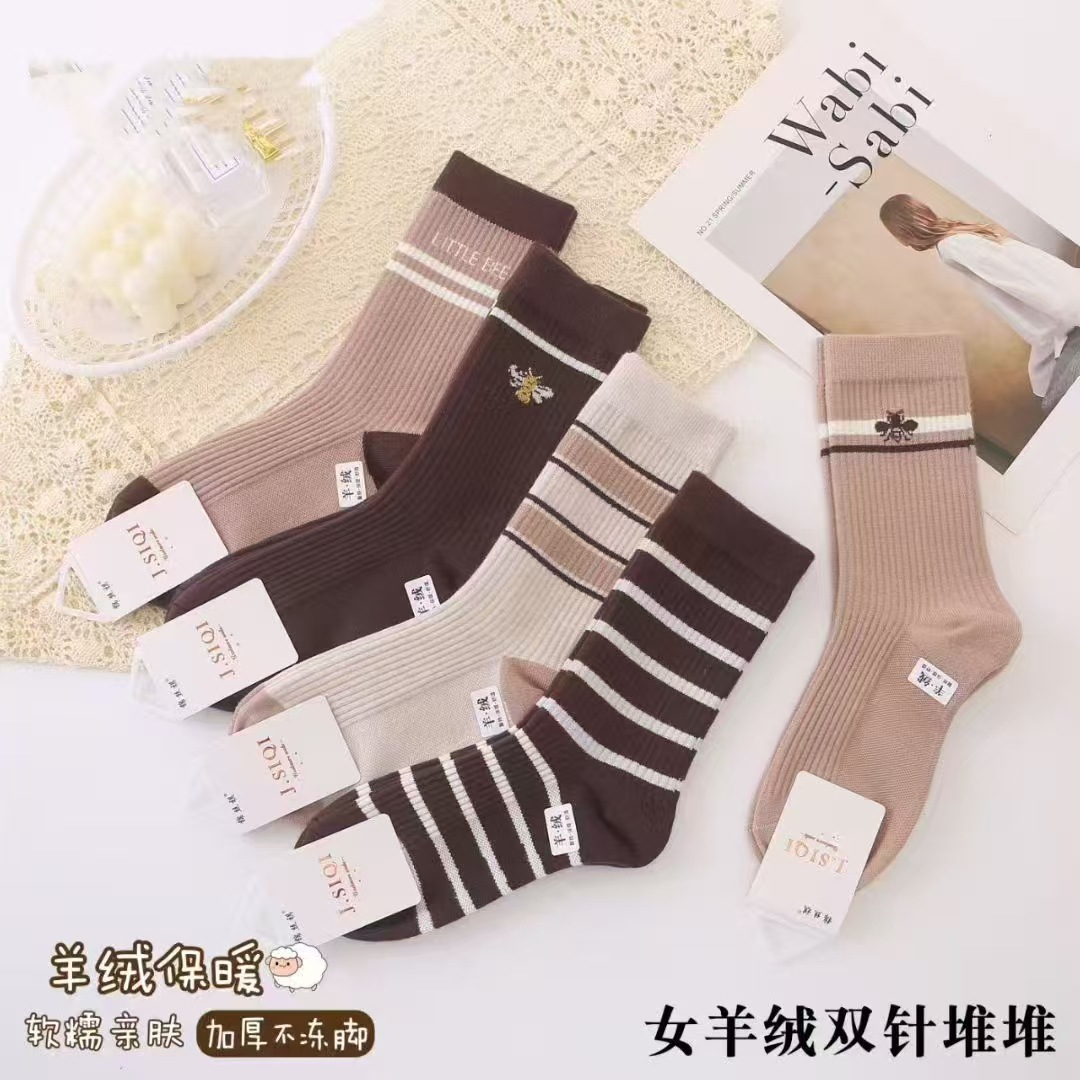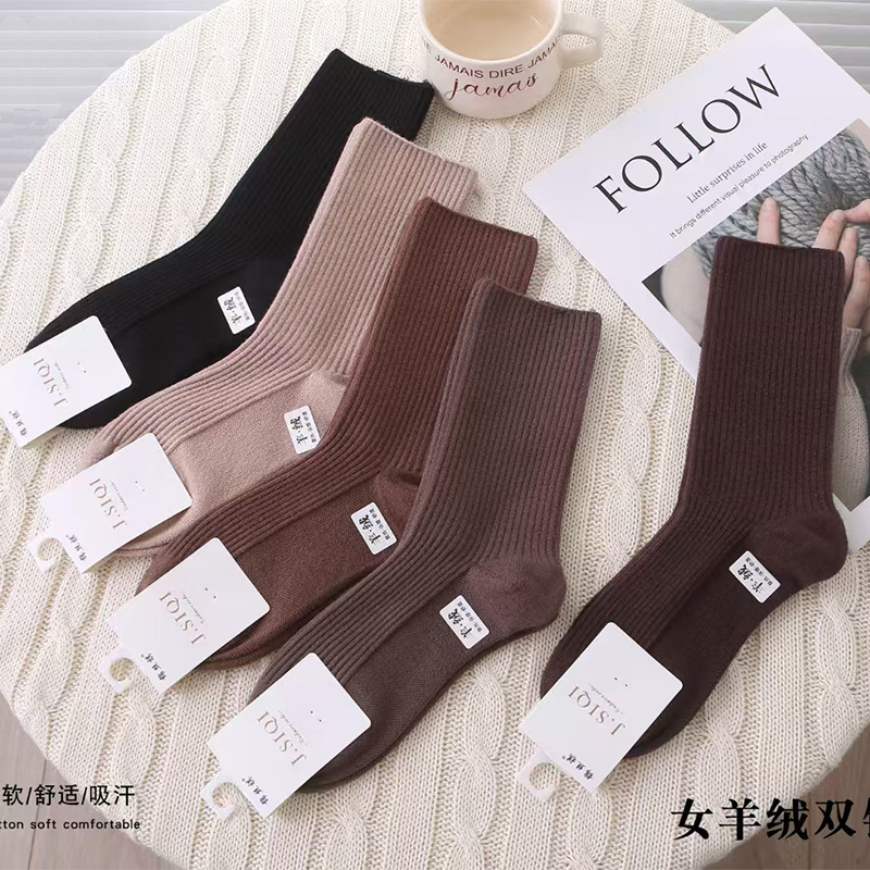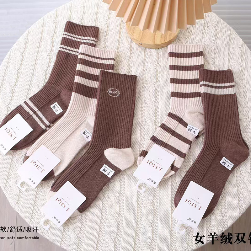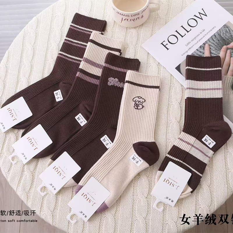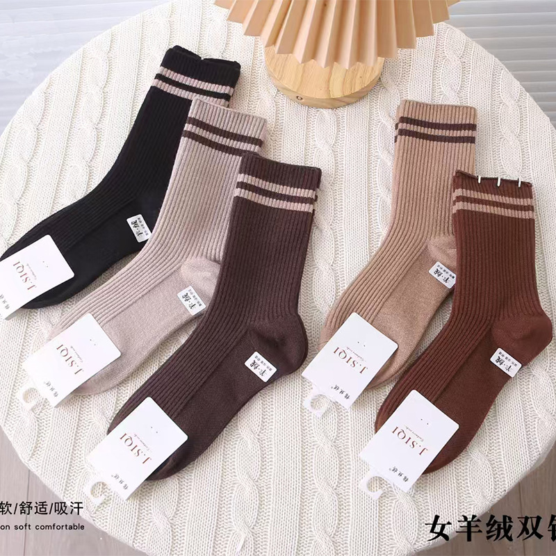 가을 겨울 신상 여성용 이중 바늘 모양 하이삭스, 다용도 캐시미어 양말, 겨울용 두꺼운 커피색 중목 양말, 다용도 레터링스토어 가기