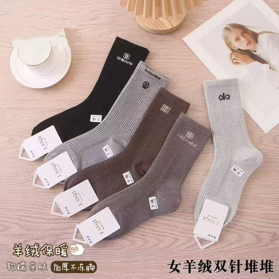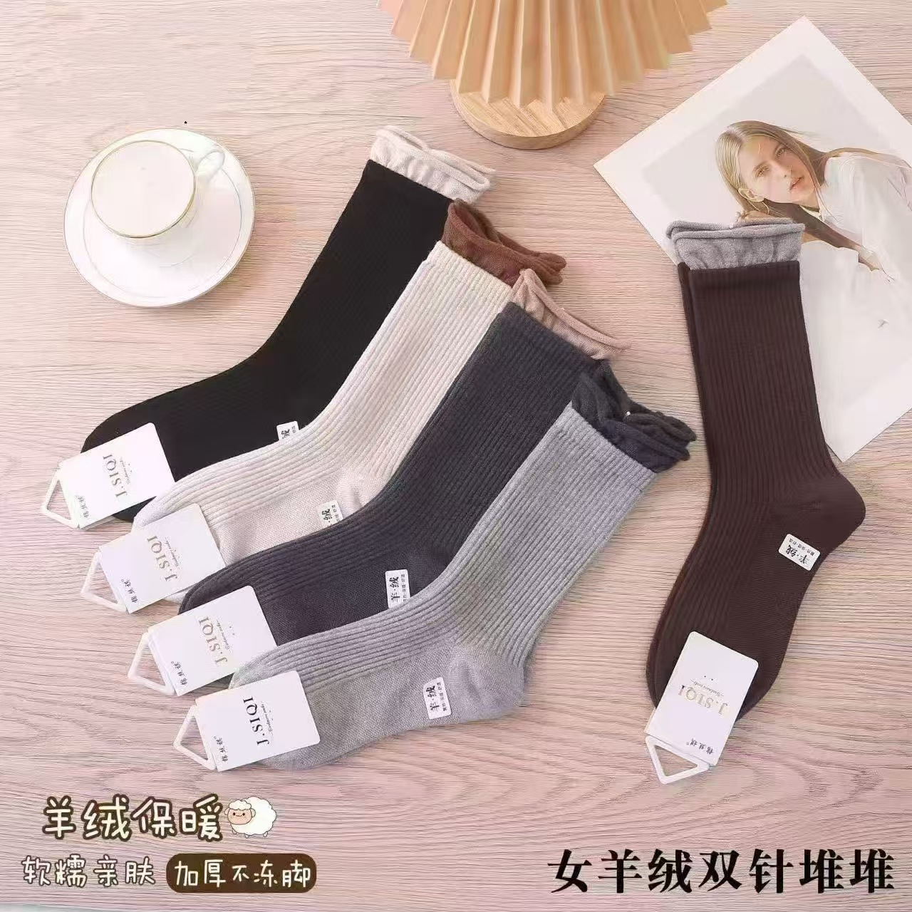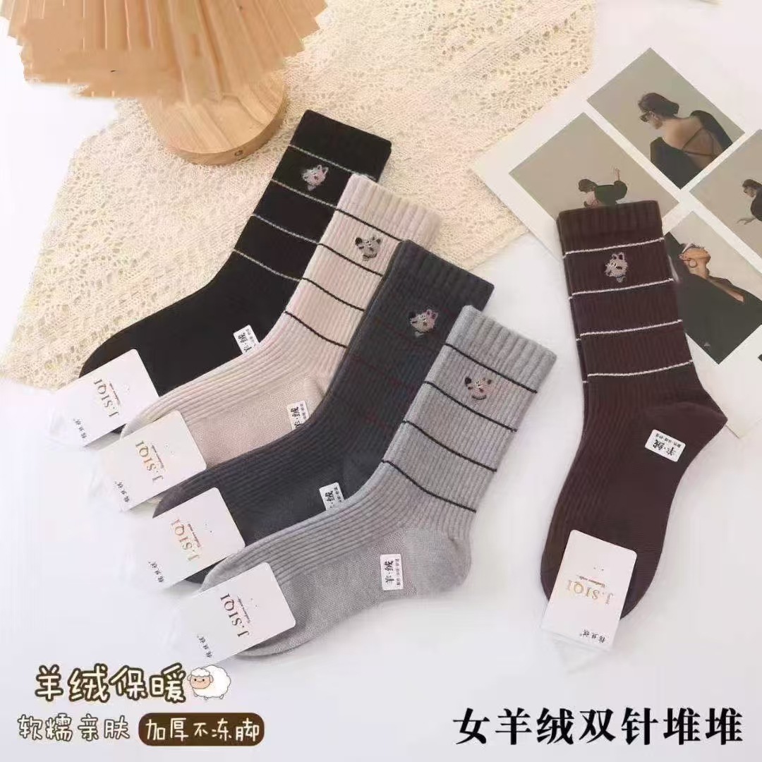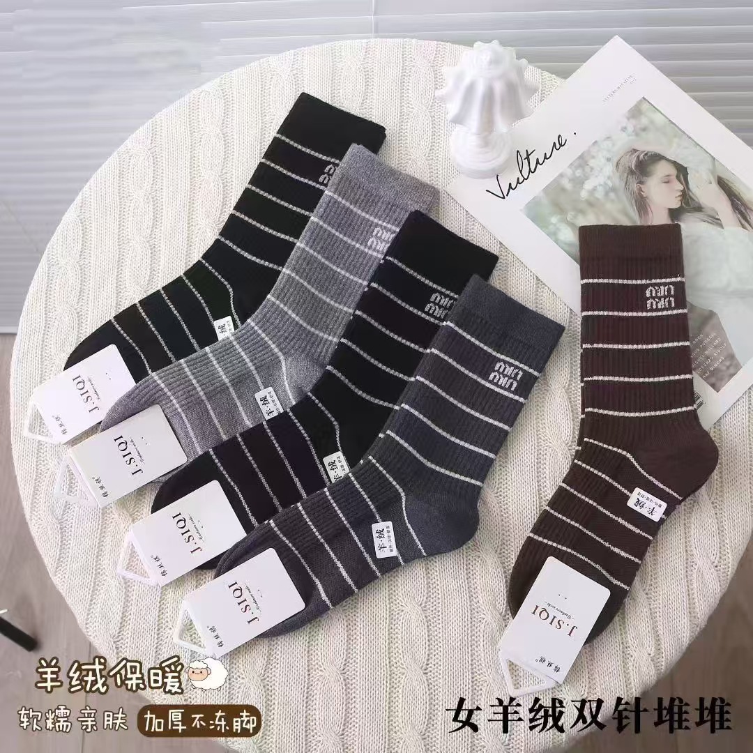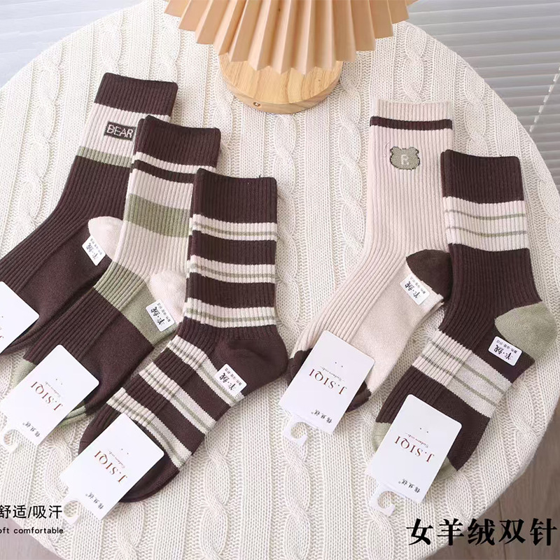 가을 겨울 신상 여성용 이중 바늘 모양 하이삭스, 다용도 캐시미어 양말, 겨울용 두꺼운 커피색 중목 양말, 다용도 레터링스토어 가기