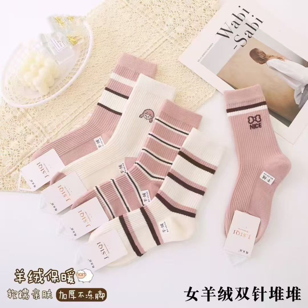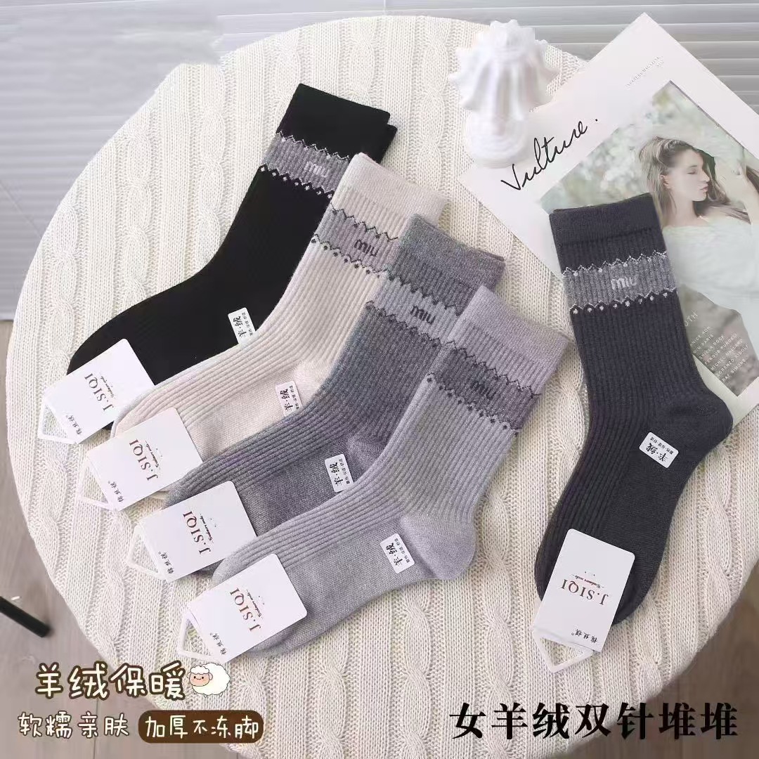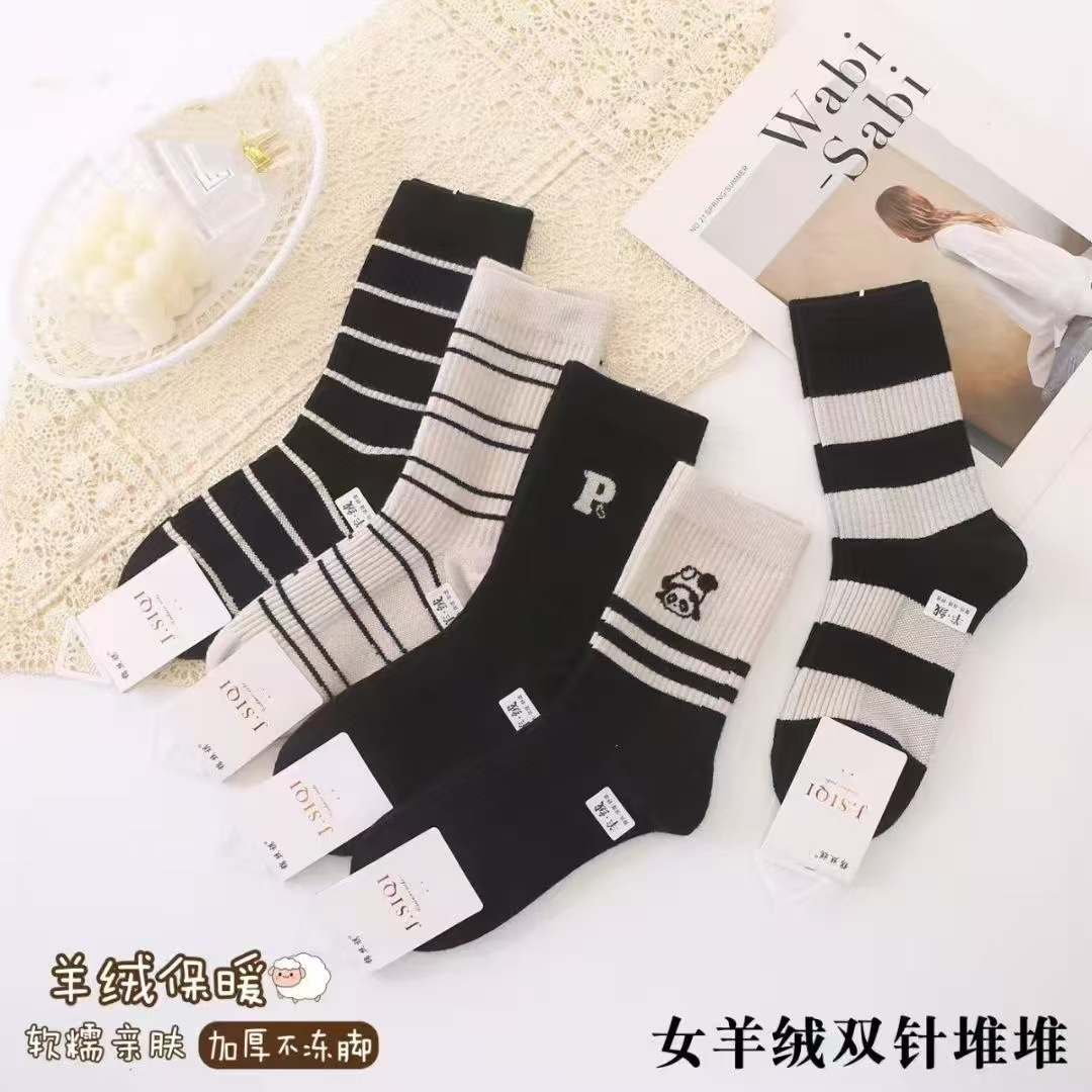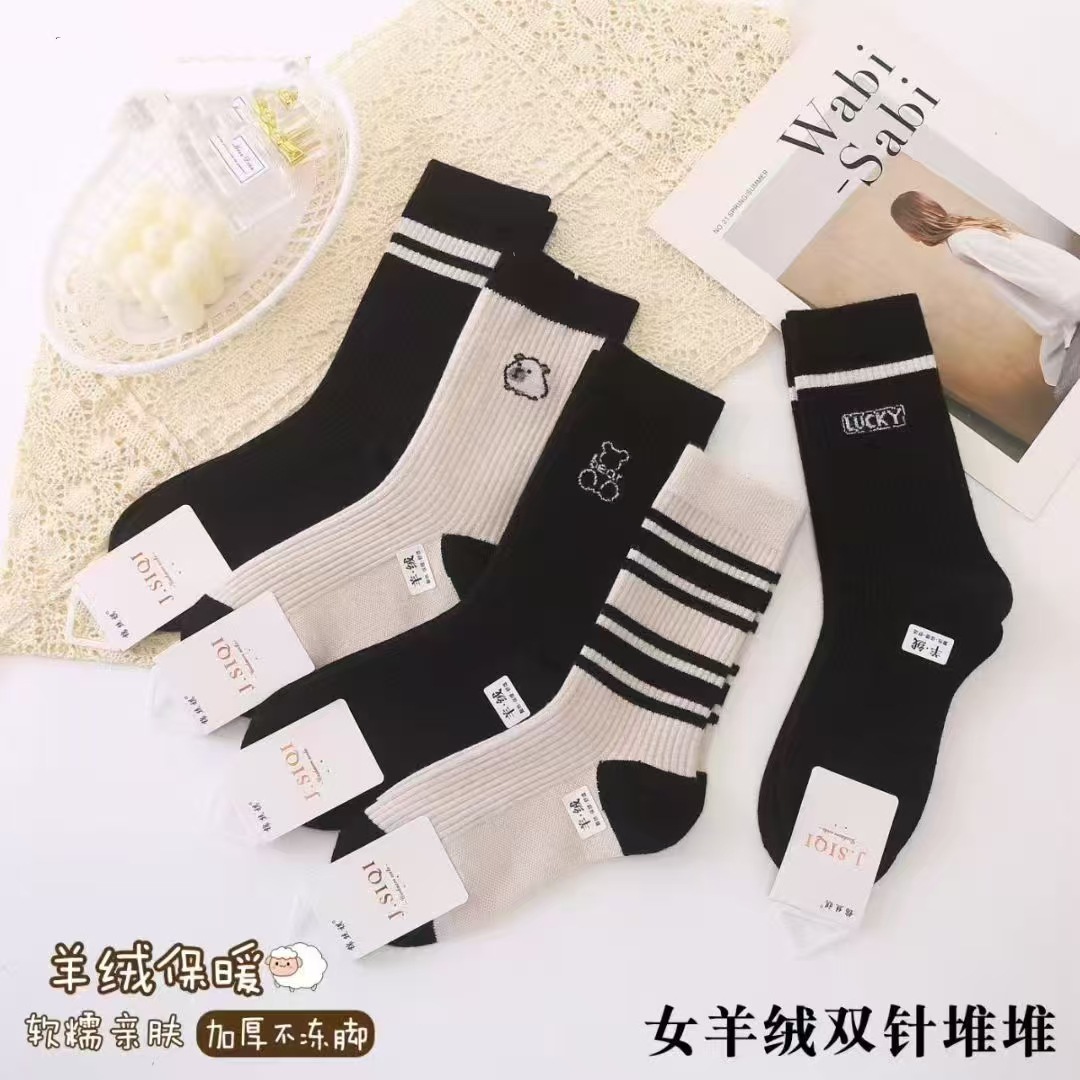 가을 겨울 신상 여성용 이중 바늘 모양 하이삭스, 다용도 캐시미어 양말, 겨울용 두꺼운 커피색 중목 양말, 다용도 레터링스토어 가기