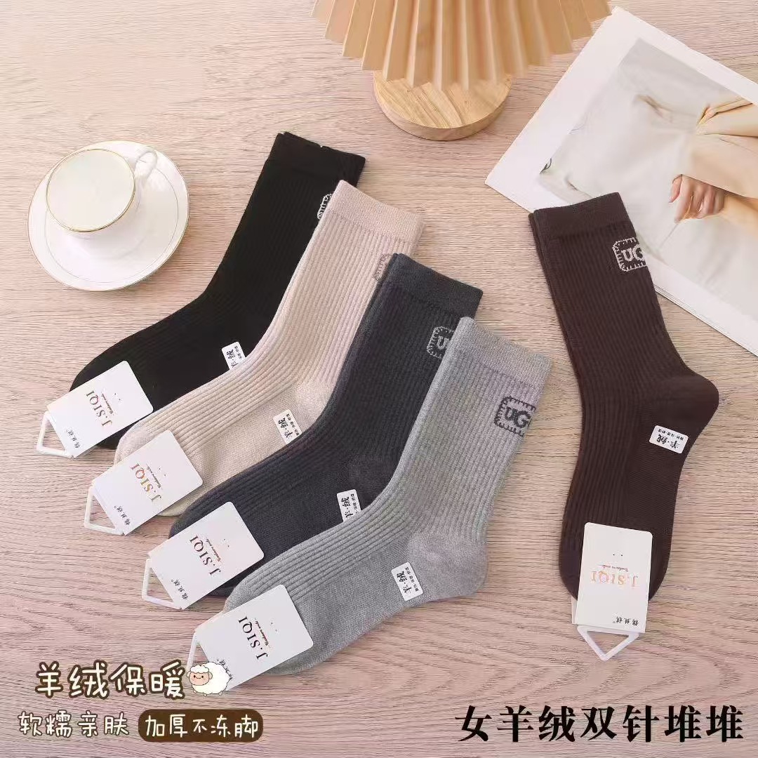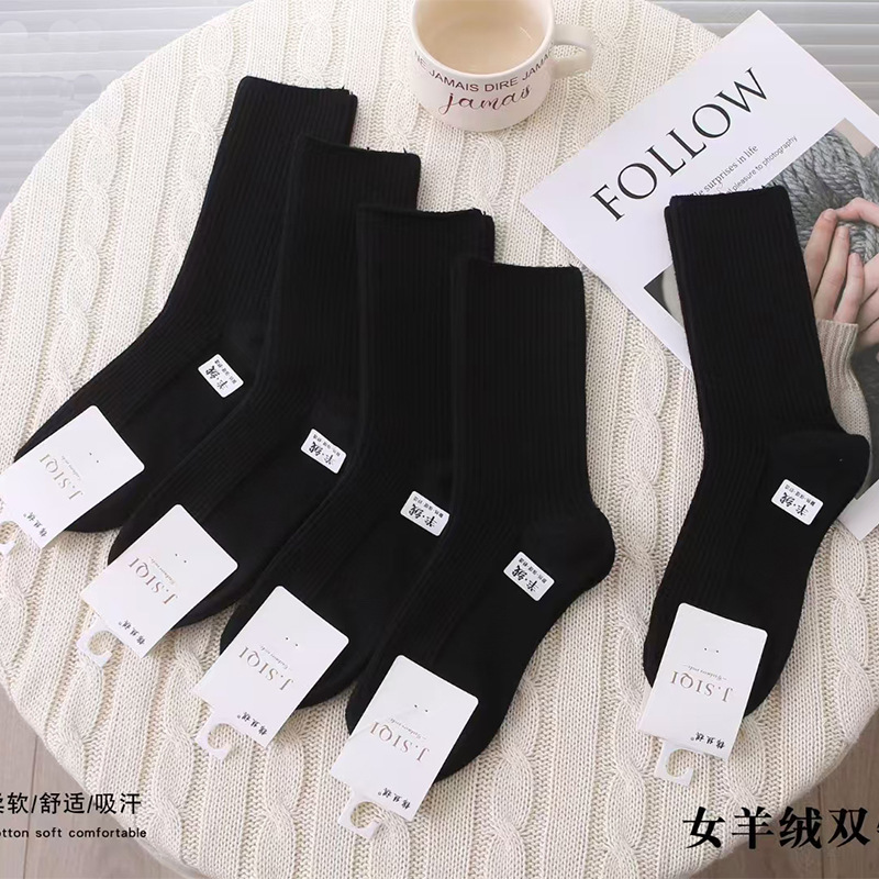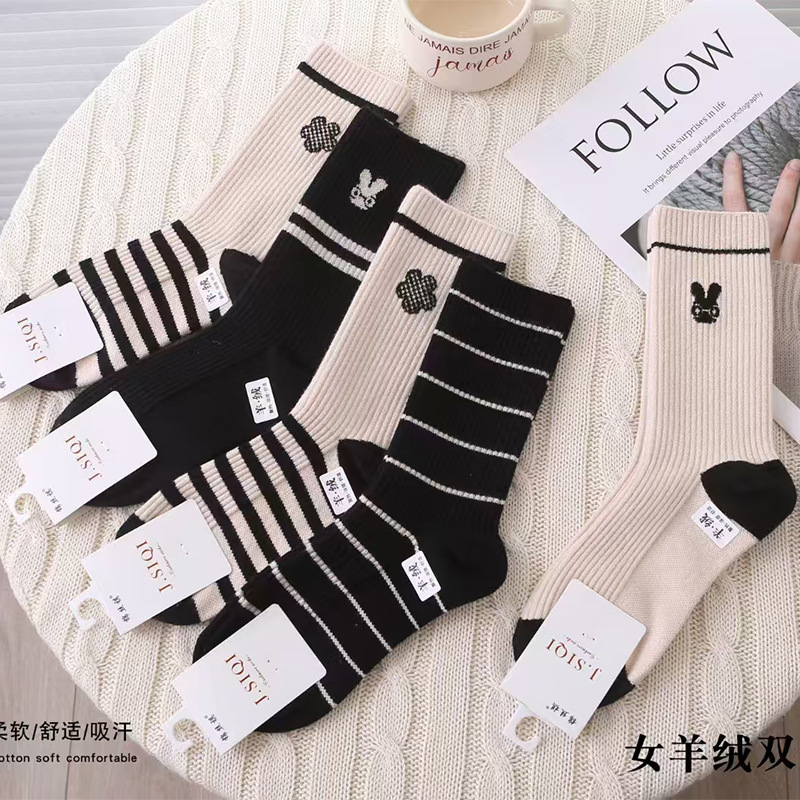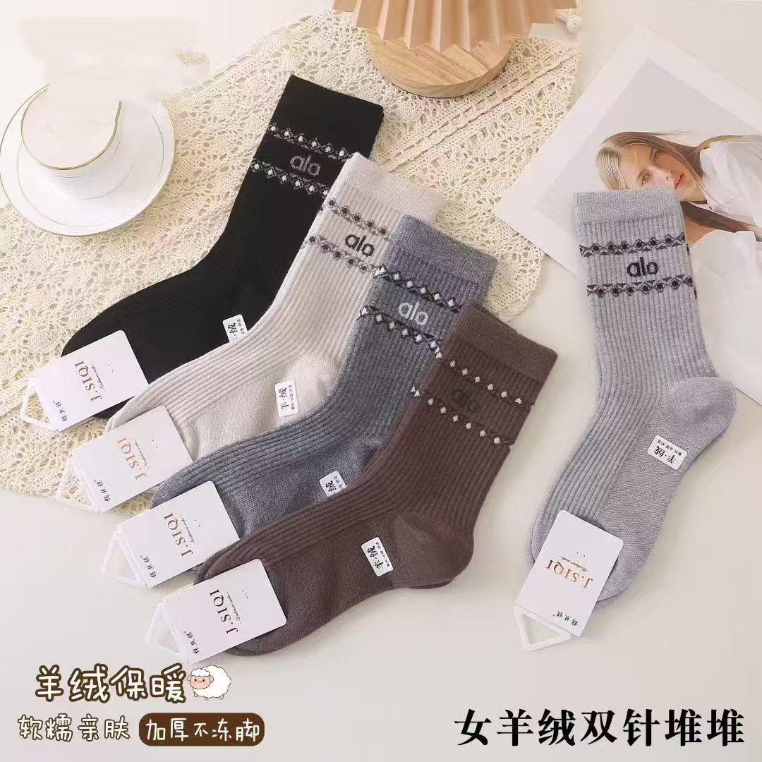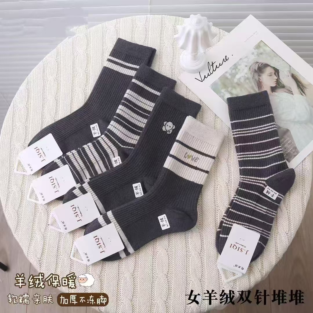 가을 겨울 신상 여성용 이중 바늘 모양 하이삭스, 다용도 캐시미어 양말, 겨울용 두꺼운 커피색 중목 양말, 다용도 레터링스토어 가기
