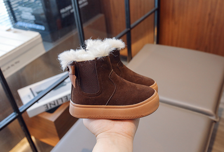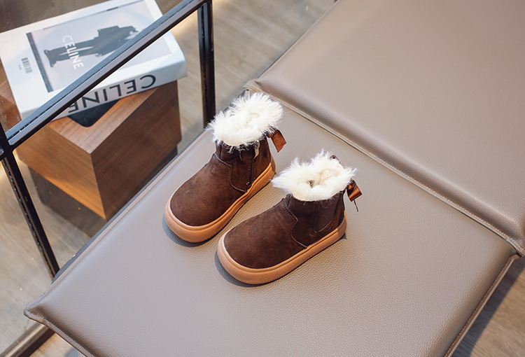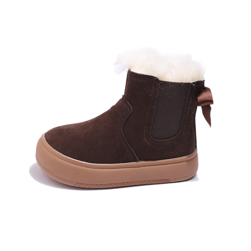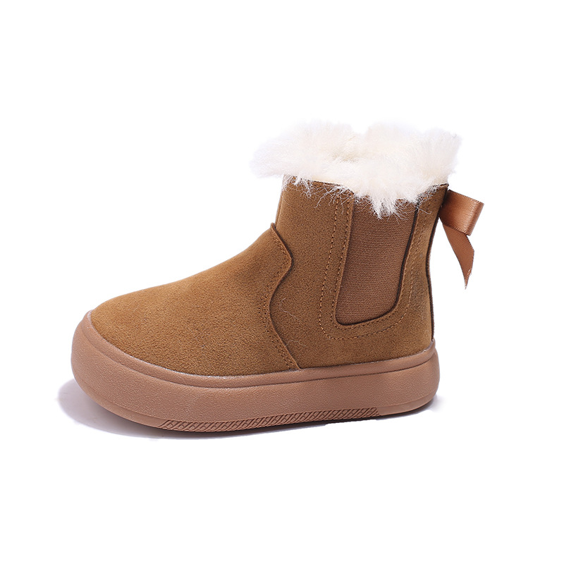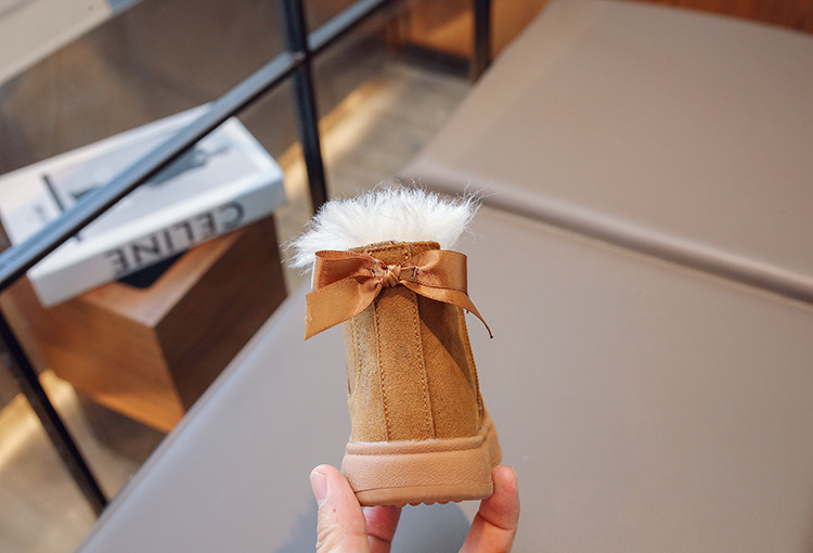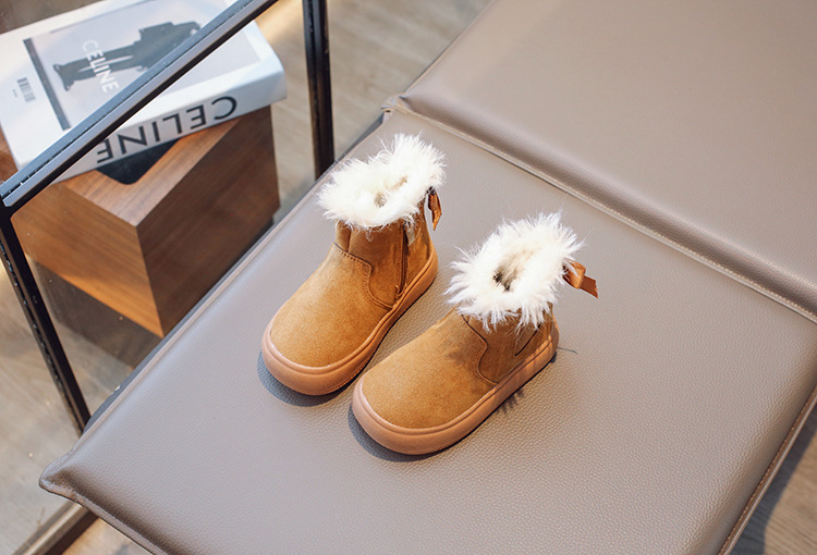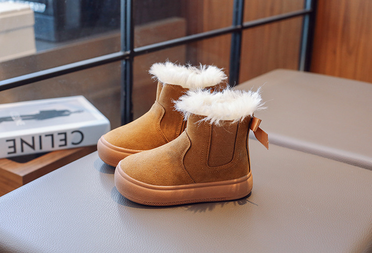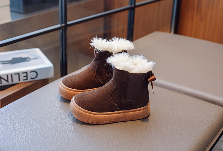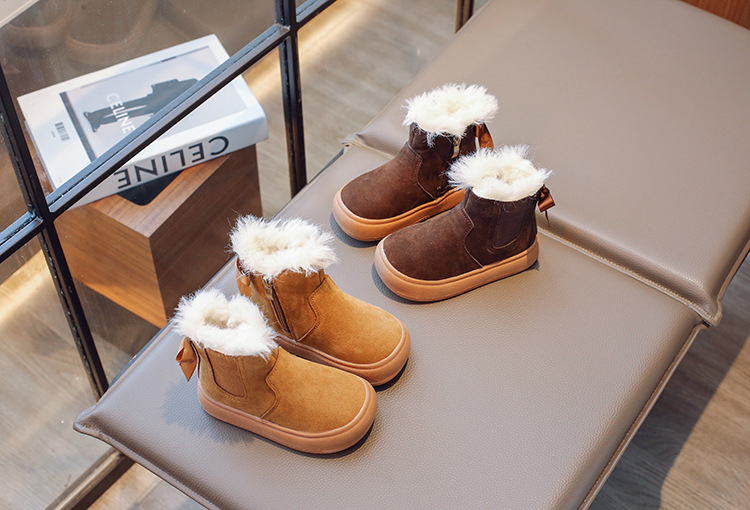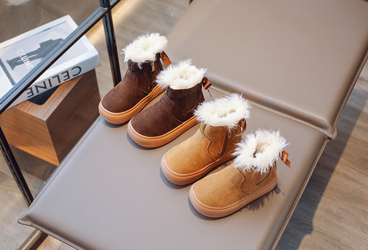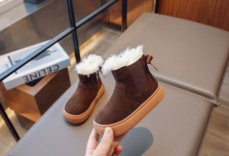겨울 아기 신발 소녀 둥근 발가락 스노우 부츠 2024 패션 신세대 헤어 도매 부드러운 가죽 어린이 기모 부츠스토어 가기