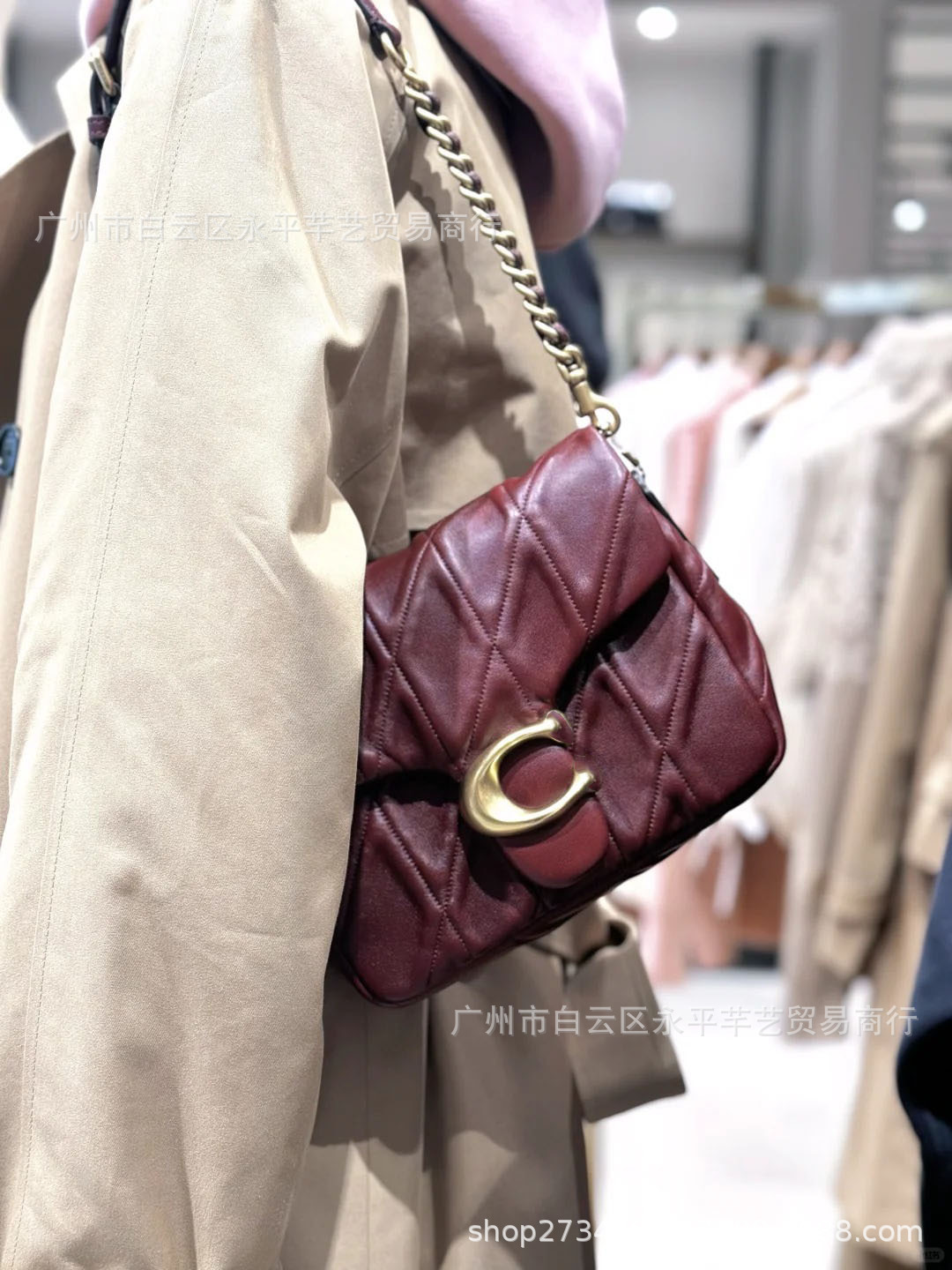 Koujia 2024 새로운 스타일 스퀘어 태비 체인 다이아몬드 스트립 레트로 원 숄더 대각선 휴대용 겨드랑이 작은 사각형 가방 여성용스토어 가기