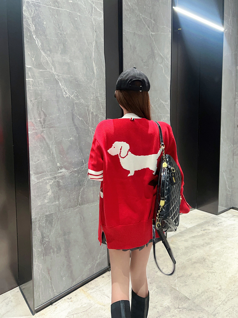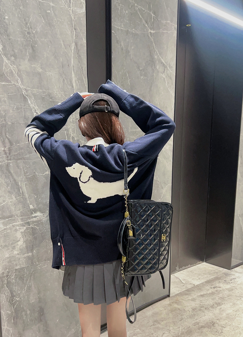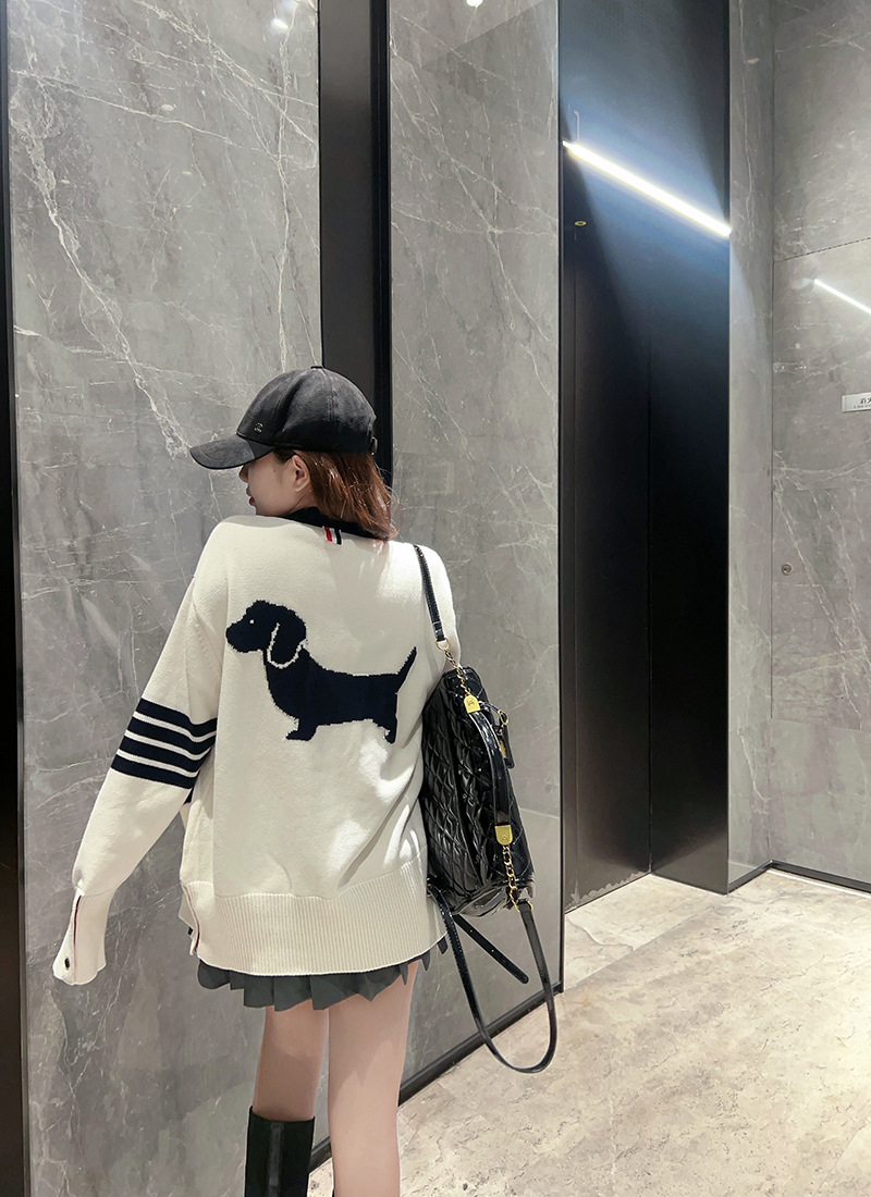 디자인 센스 스트라이프 TB 대학 스타일 대비 컬러 V 넥 스웨터 코트 느슨한 게으른 니트 강아지 카디건 가을과 겨울 24