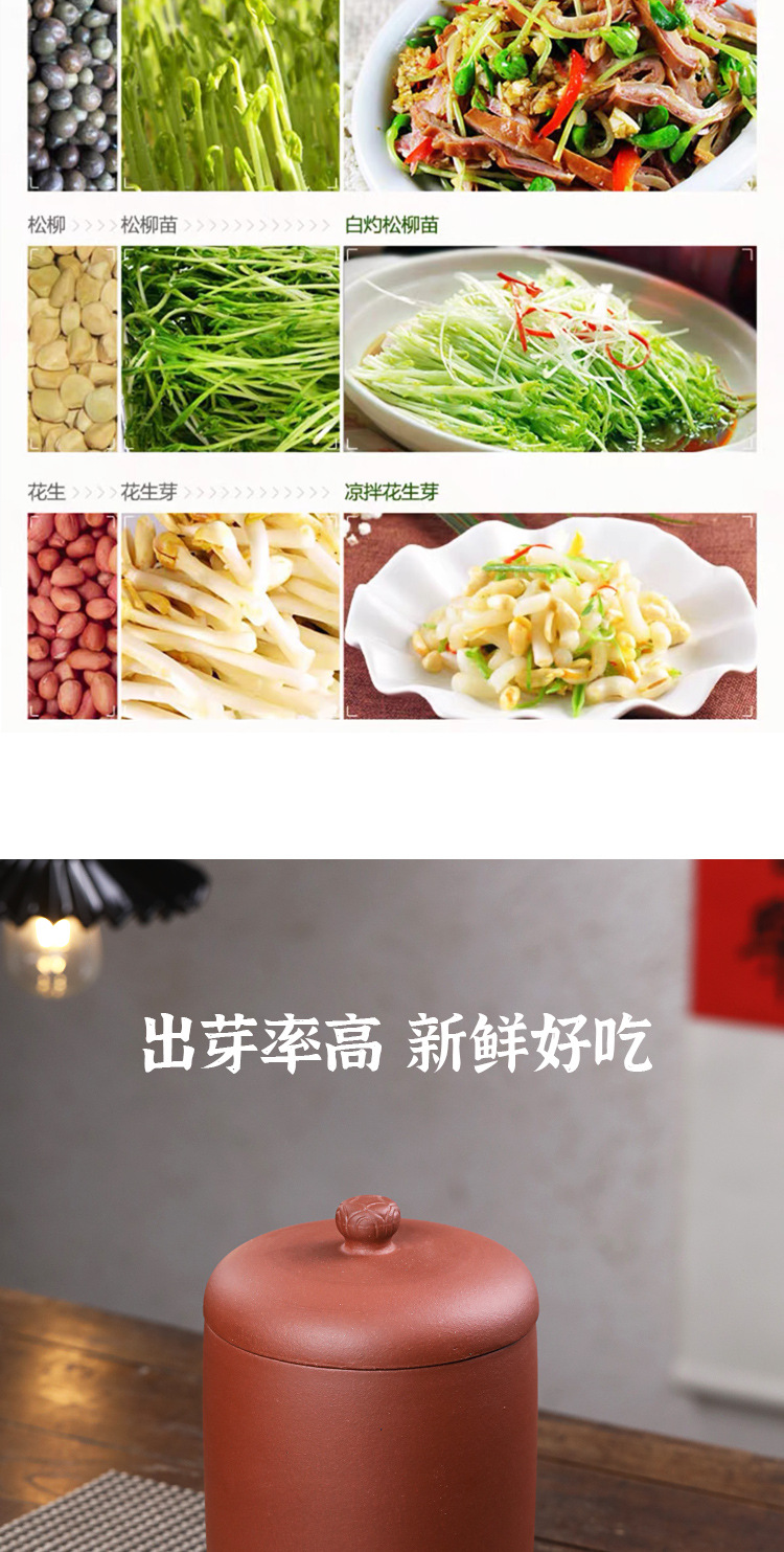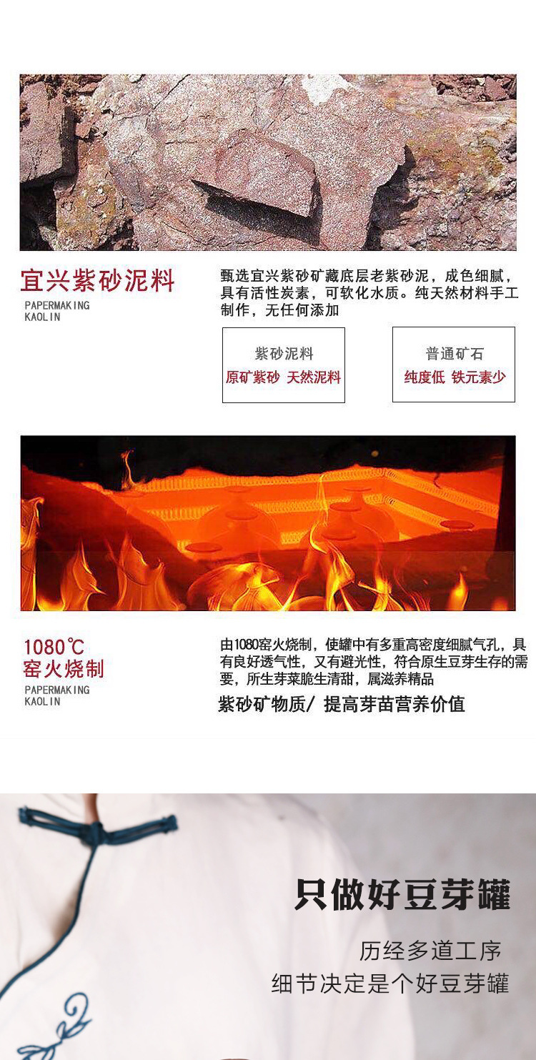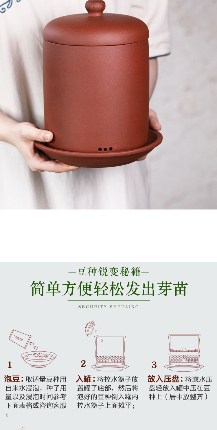생 콩나물 기계, 가정용 완전 자동 Yixing 원광 보라색 모래 콩나물 항아리, 콩나물 발효 도구, 구식 수제 콩나물 냄비스토어 가기