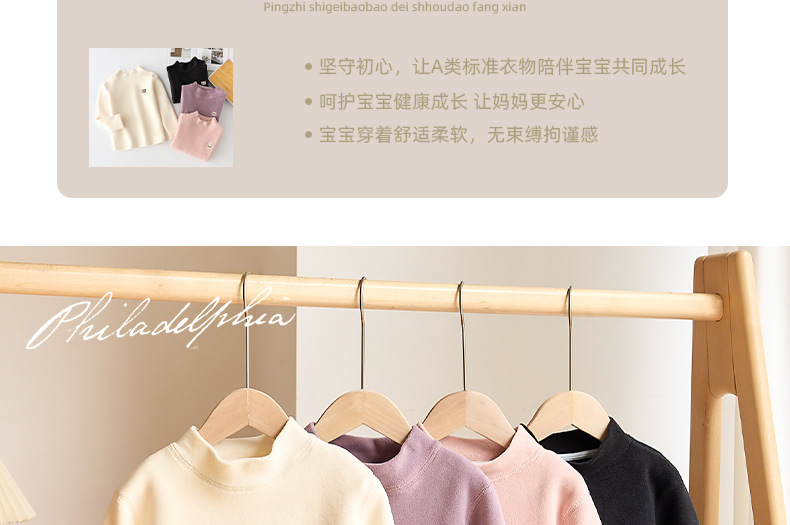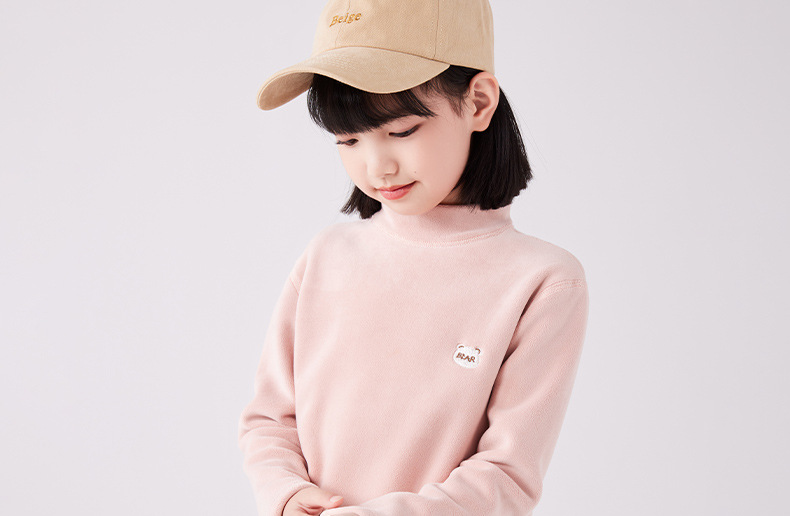 소년 소녀를위한 어린이 Aoli 양털베이스 셔츠 큰 어린이를위한 가을 및 겨울 반 높이 칼라 탑 두꺼운 따뜻한베이스 셔츠