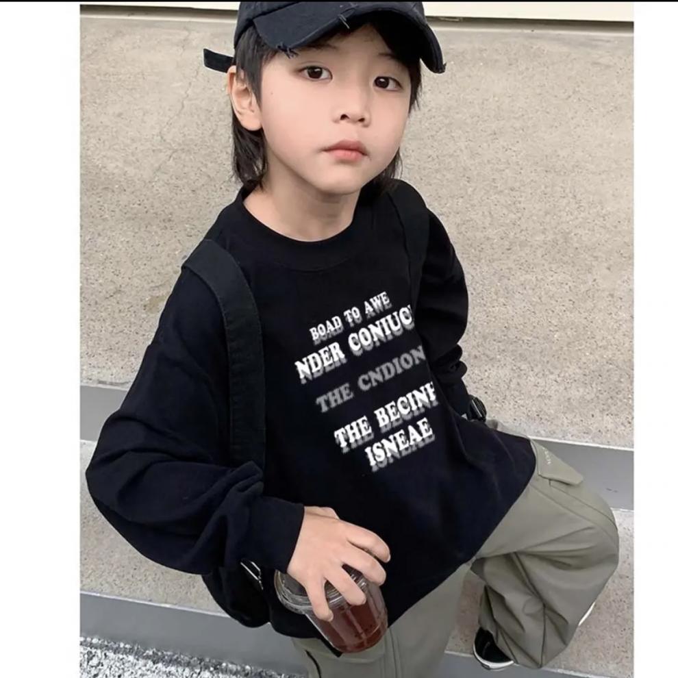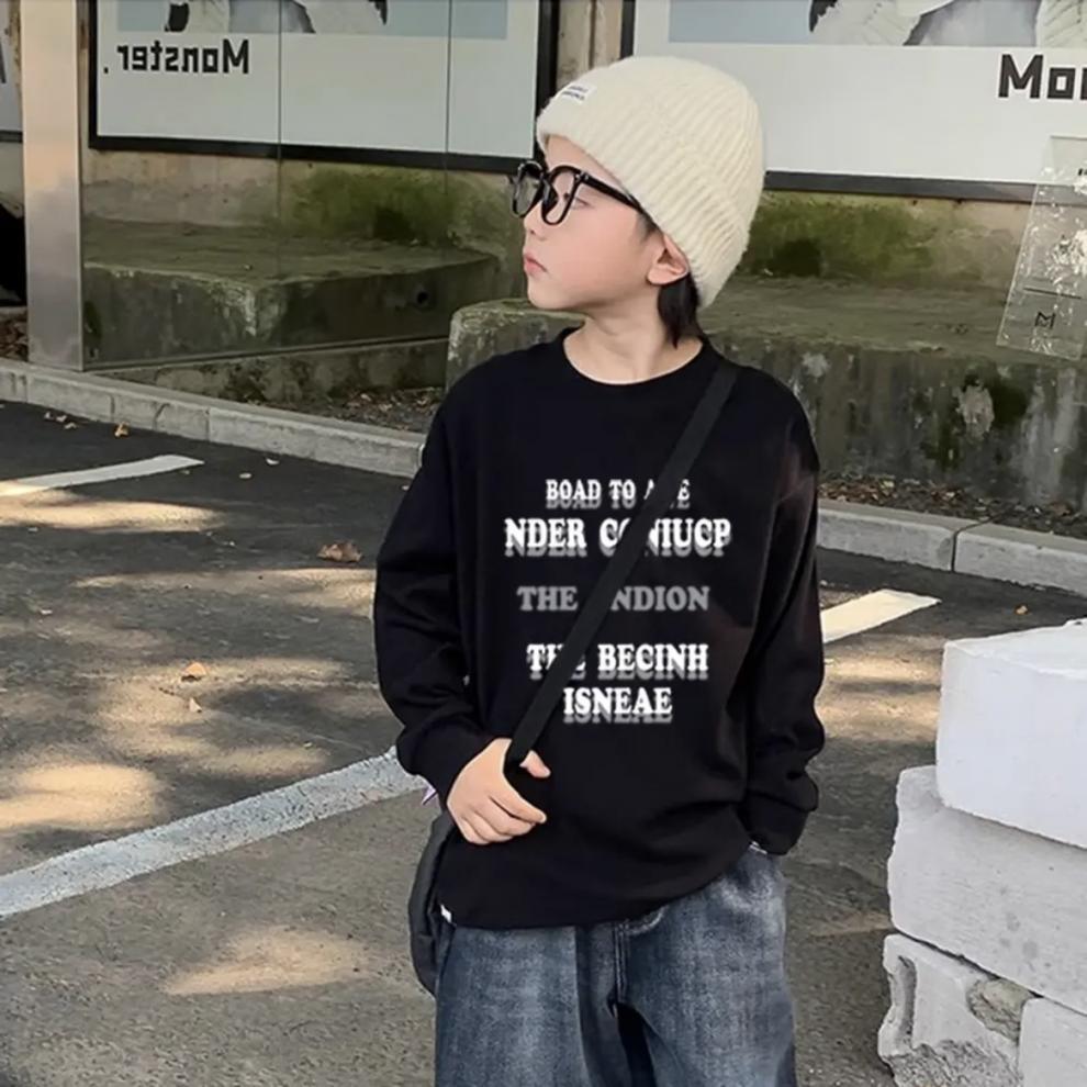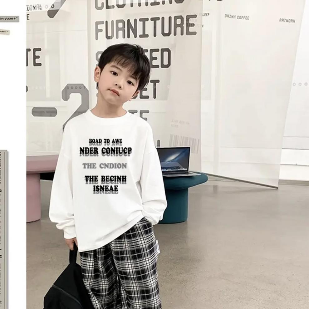 소년의 가을 긴팔 티셔츠 2024 새로운 어린이 가을 느슨한 화이트 탑 큰 어린이 봄과 가을 옷스토어 가기