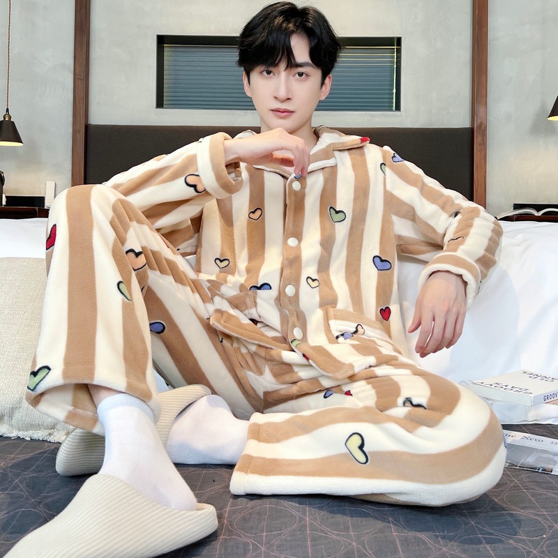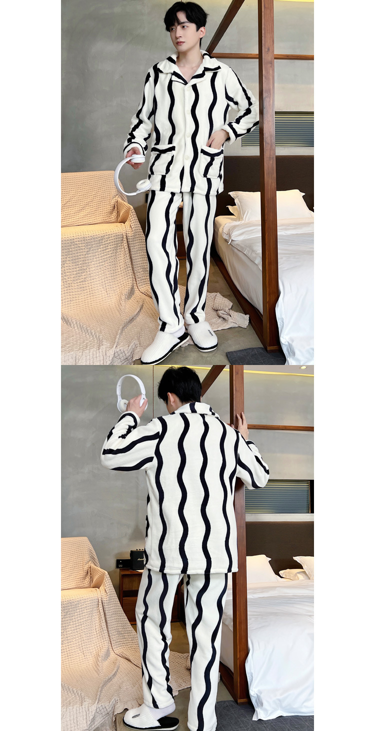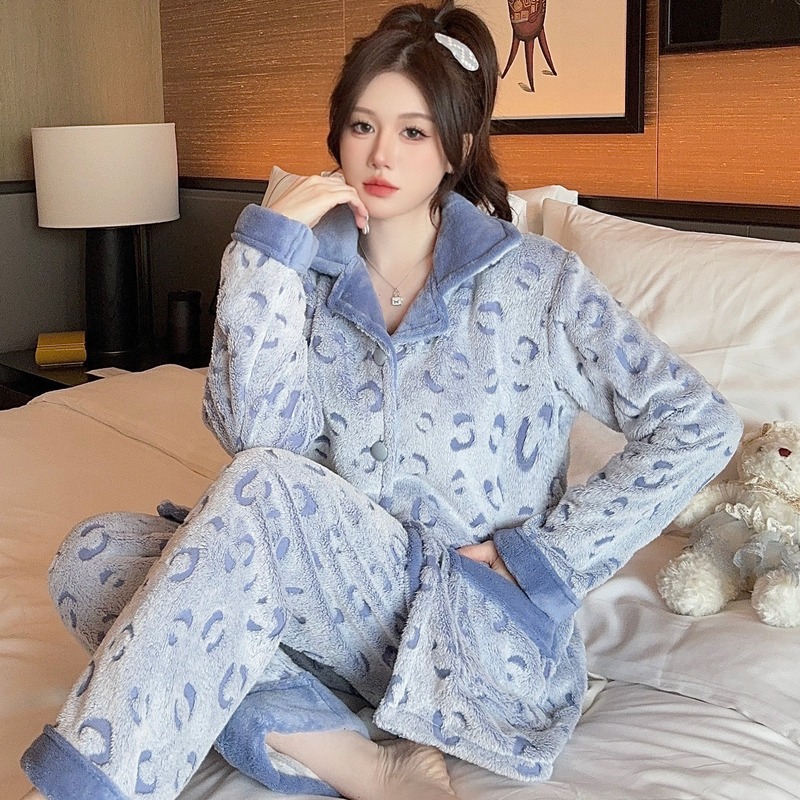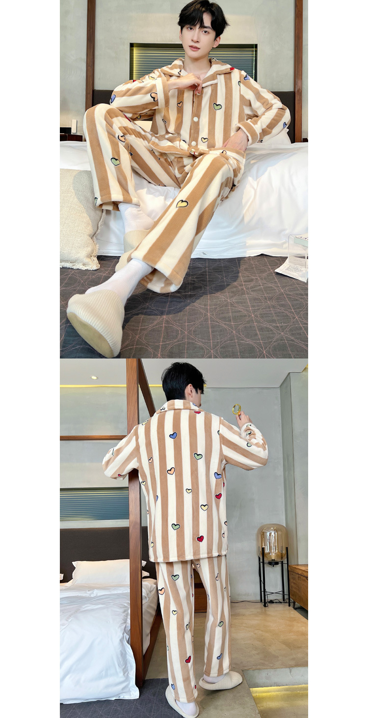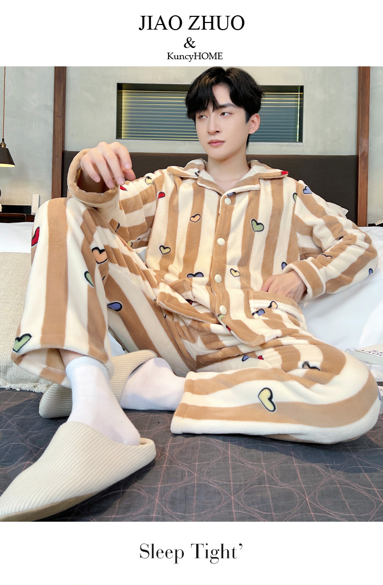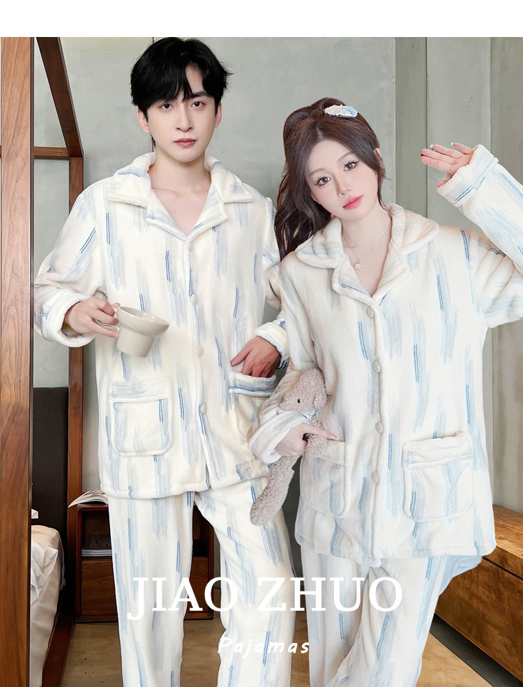 커플 잠옷 여성의 가을과 겨울 산호 양털 기모 두꺼운 겨울 남자 플란넬 홈 옷 세트 외복스토어 가기