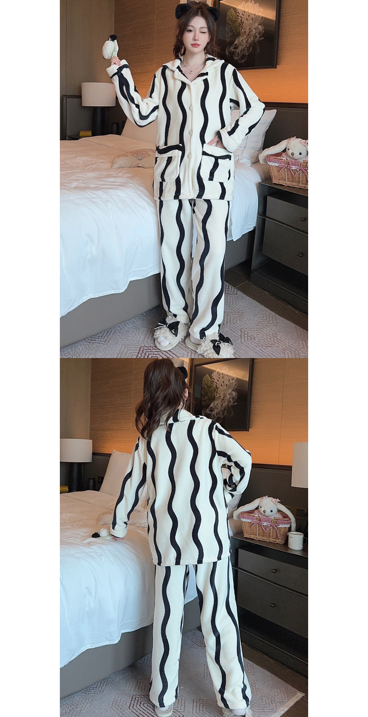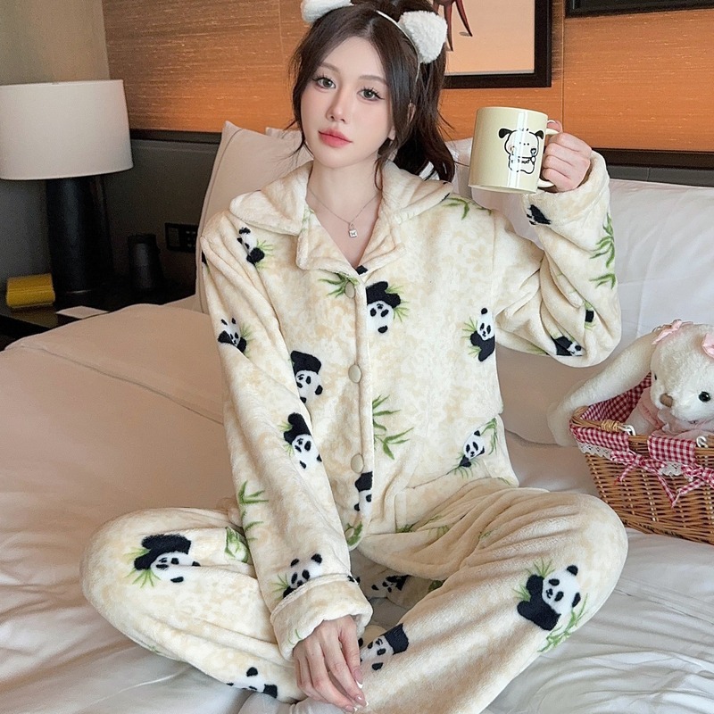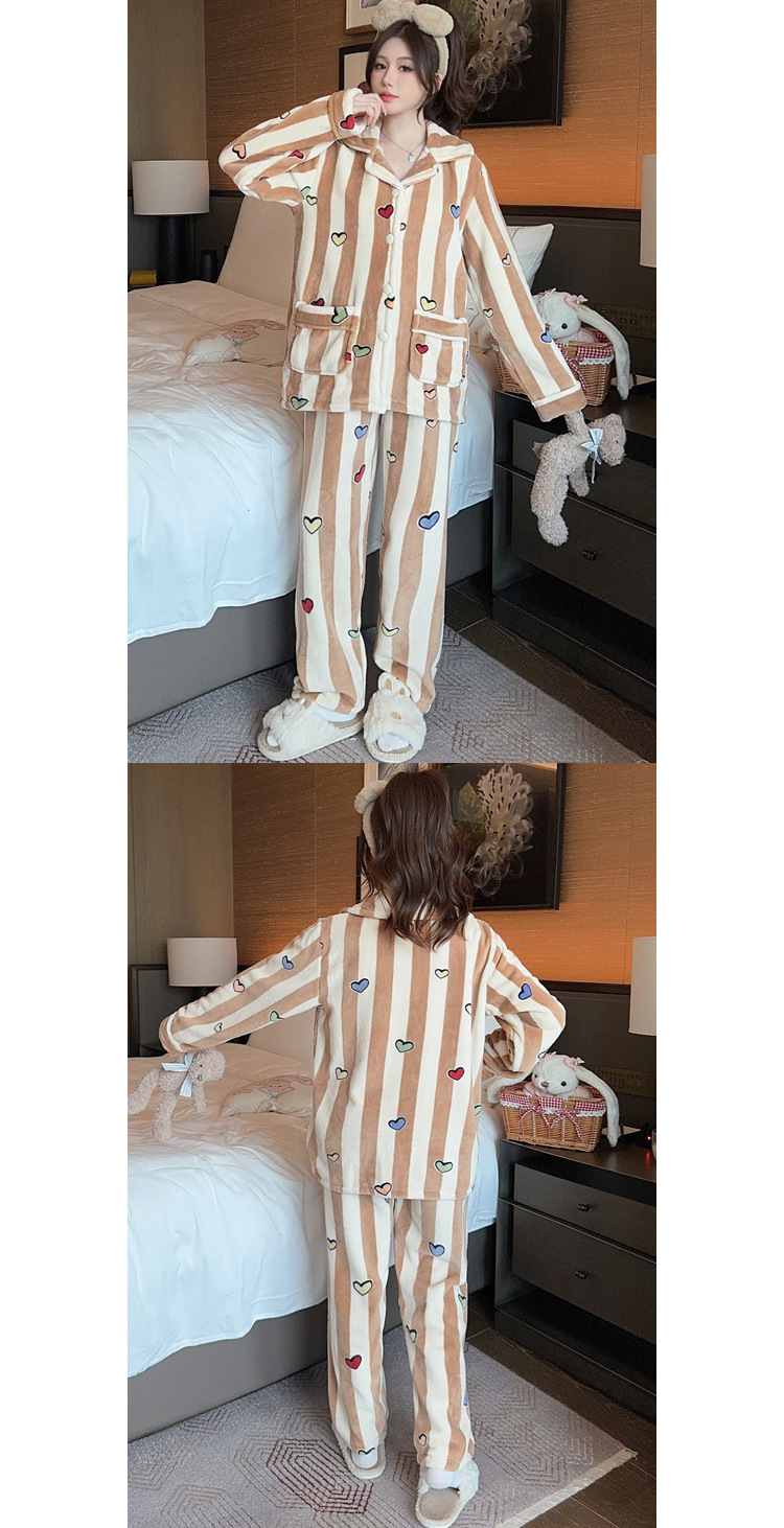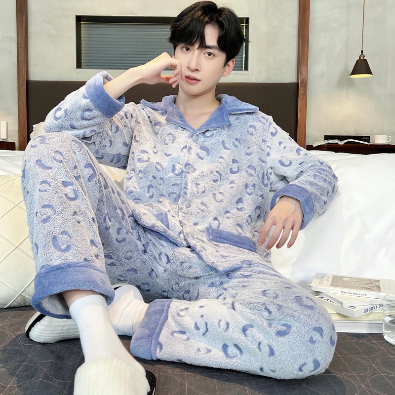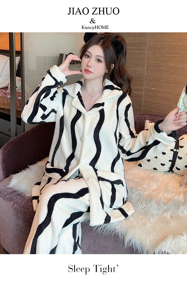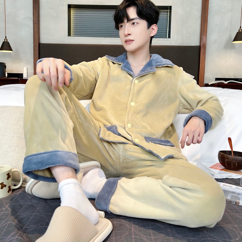 커플 잠옷 여성의 가을과 겨울 산호 양털 기모 두꺼운 겨울 남자 플란넬 홈 옷 세트 외복스토어 가기