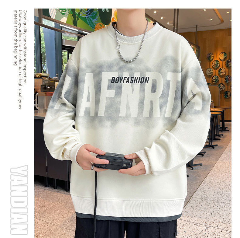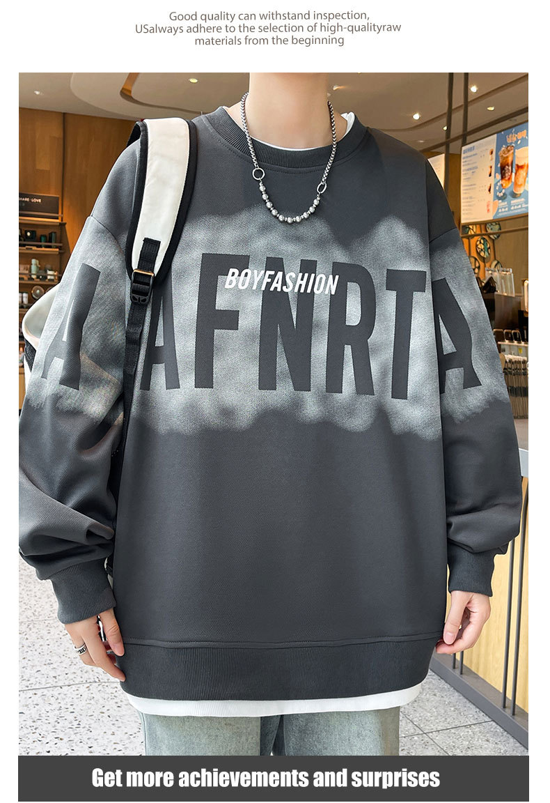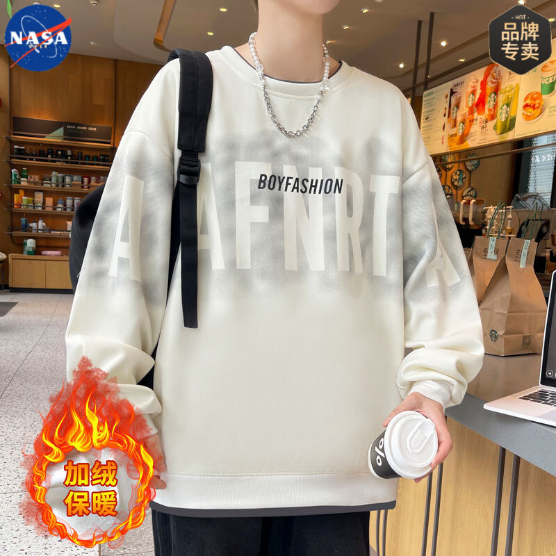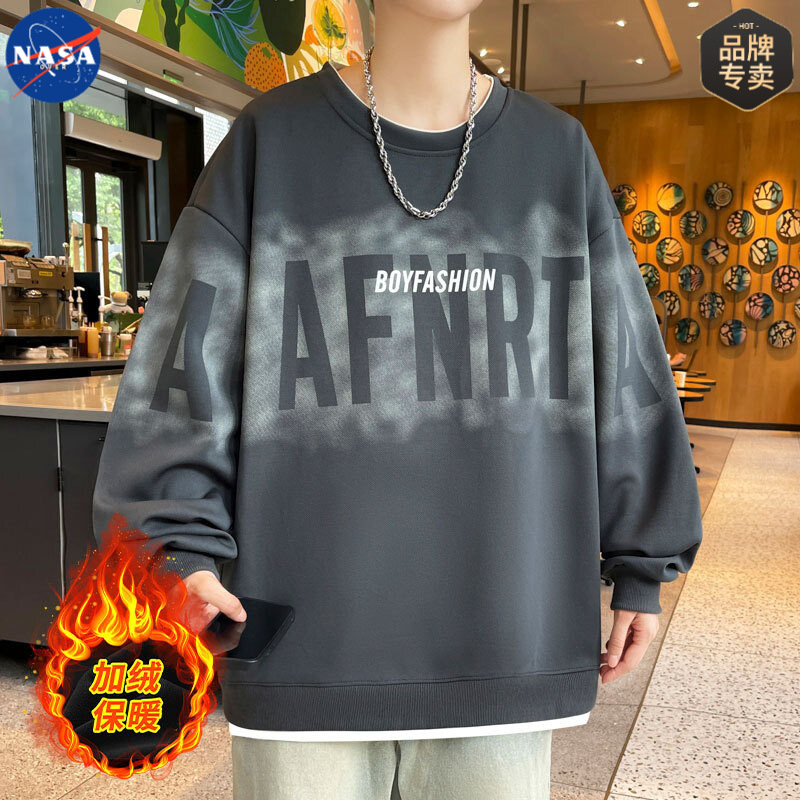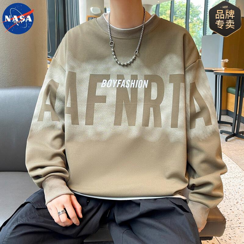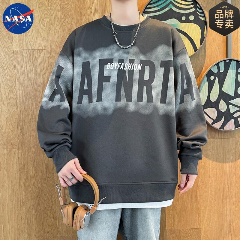 NASA 브랜드 땀 남자의 봄과 가을 새로운 긴 소매 학생 청소년 인쇄 라운드 넥 유행 브랜드 베이스 탑 옷스토어 가기